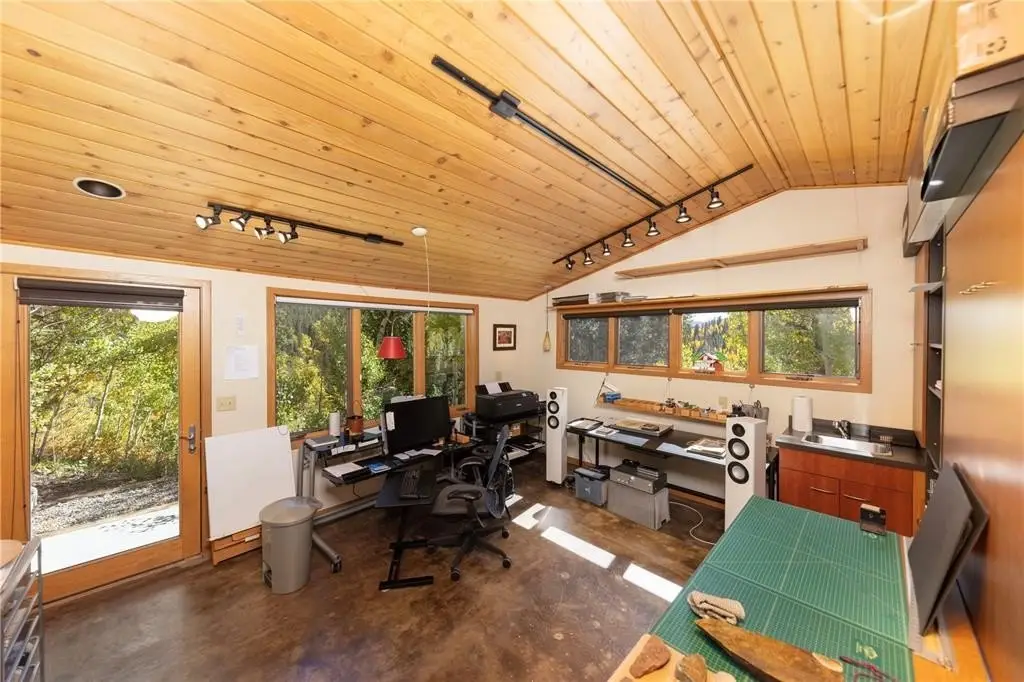 Nestled in a serene forest of aspens and evergreens, this 4-bedroom, plus office, contemporary mountain retreat in Breckenridge captures the essence of Colorado living. Bathed in passive solar light, the home offers breathtaking views of ten iconic peaks, including Quandary, Peak 10, Baldy, Red, and Hoosier Ridge. Set on 1.2 acres, the property has been thoughtfully updated with newer carpet, fresh exterior paint, a newer roof, expanded driveway, and newer front entry stairs, decks and exterior staircases. Inside, the heart of the home is a fully remodeled chef’s kitchen featuring William Ohs custom cabinetry, a Subzero refrigerator, gas cooktop and double oven, and old-growth Hickory floors that flow into the dining area. Step out onto the adjacent deck for grilling with a BBQ directly connected to the gas line, perfect for entertaining under the stars. A Danish soapstone wood-burning stove anchors the main living room, and adjacent you will find a private office including a cozy reading nook and inspiring views of Baldy, while a secondary family room on the lower level opens to a sun-drenched deck ideal for morning coffee or afternoon lounging. The spacious attached garage includes storage cabinetry and a dedicated workshop. With panoramic views and a quick walk to the bus stop, this property offers it all. Whether you're seeking solitude, adventure, or a place to gather, this home provides a rare blend of craftsmanship, comfort, and alpine beauty.