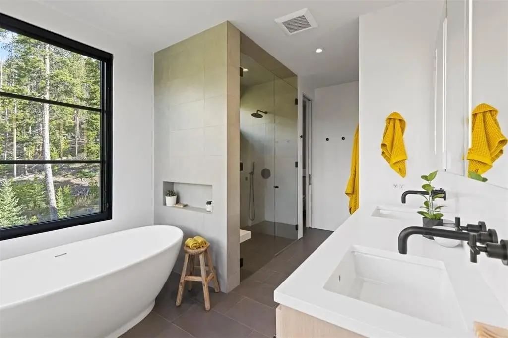 This unique mountain contemporary home on 2.42 private acres in the coveted Highlands neighborhood, bordered by National Forest, offers unmatched serenity and seclusion. Enjoy panoramic continental divide views from both upper and lower decks and three cozy fireplaces, ideal for year-round entertaining. With interiors by Studio B of Aspen, the home embodies restrained yet elevated design, from the dramatic Shou Sugi Ban black-burnt wood entry to breathtaking vistas that extend fluidly throughout each space. Floor-to-ceiling windows bathe the spaces in natural daylight, reinforcing a seamless connection between inside and out. A calm palette of white walls and bespoke English white oak floors sets a luminous, elegant and inviting tone. Museum-quality walls offer the perfect canvas for showcasing a collector's art, while fine architectural details reflect a dedication to craftsmanship. Anchoring the kitchen is a sculptural, black island topped with honed quartzite--bold and moody. This singular design element echoes the exterior and draws the eye as a natural gathering point. An integrated appliance package makes the space as functional as it is beautiful, including a crisp, white built-in Miele coffee system. Thoughtful lighting from Nordic-inspired pendants to integrated wall and millwork illumination evokes both drama and softness. Affectionately nicknamed the "Scandie Modern Snow Globe" by the owners, this mountain haven offers tranquil wildlife views from nearly every room--an idyllic nature retreat. An exquisitely detailed staircase connects the levels, exemplifying the custom construction that elevates this property far beyond conventional. The great room features vaulted ceilings, and a metal-clad fireplace, engineered for both gas and wood burning. A hot tub, positioned for stargazing, and original 1800s mining cabin on the lower lot offer a true Breckenridge experience. This architectural gem is more than a home--it's a curated alpine modern experience.