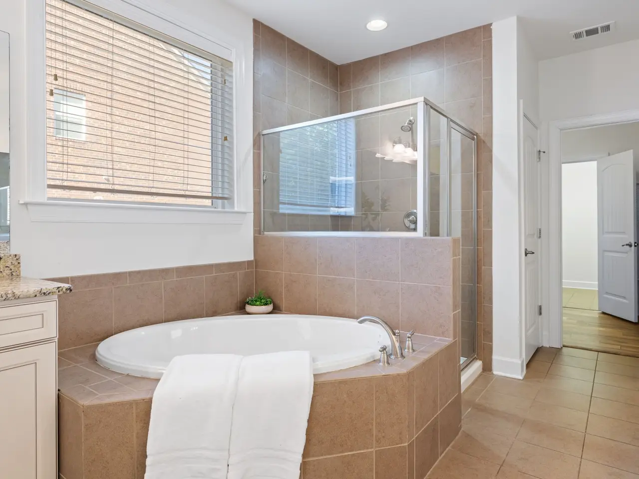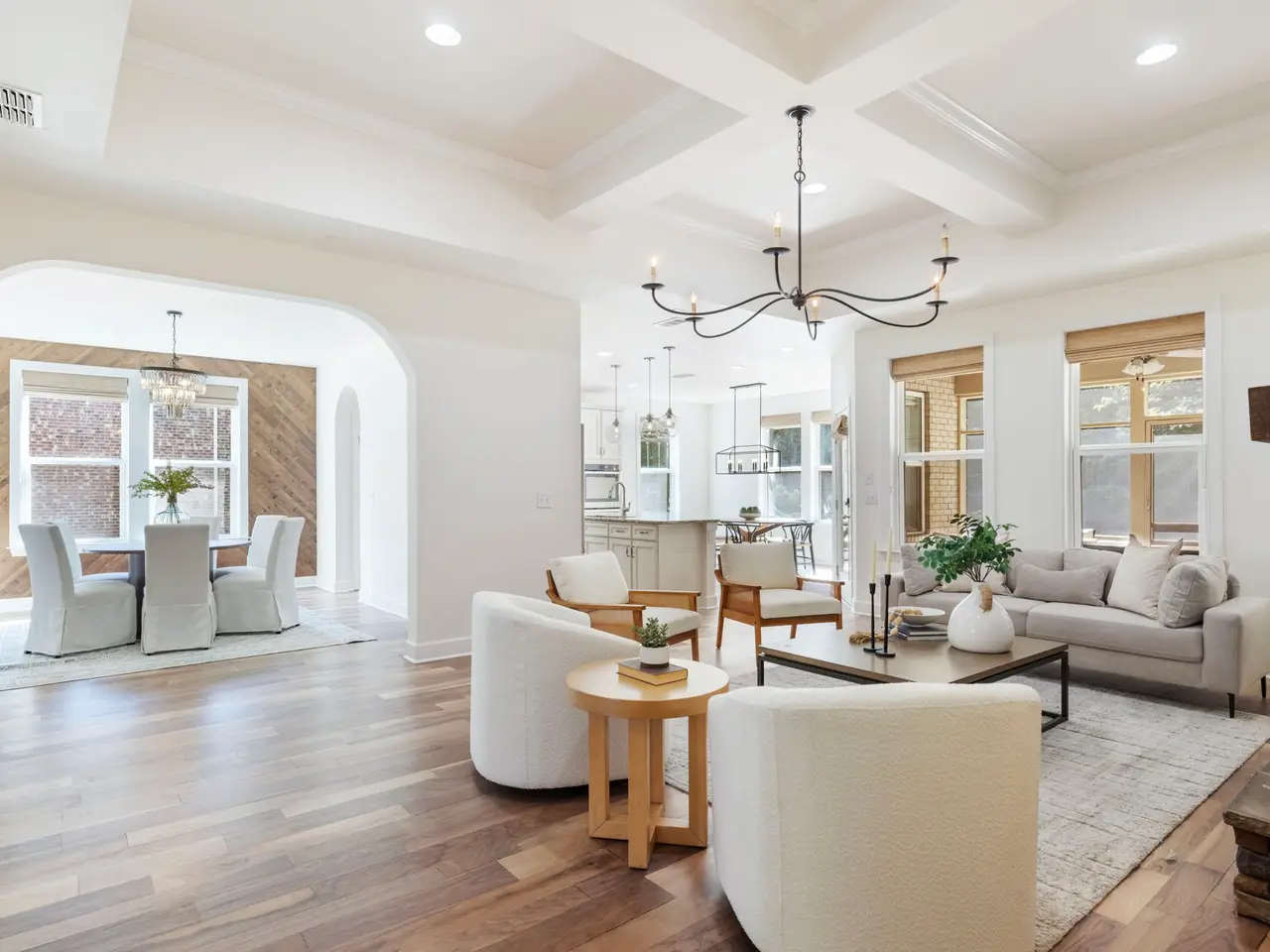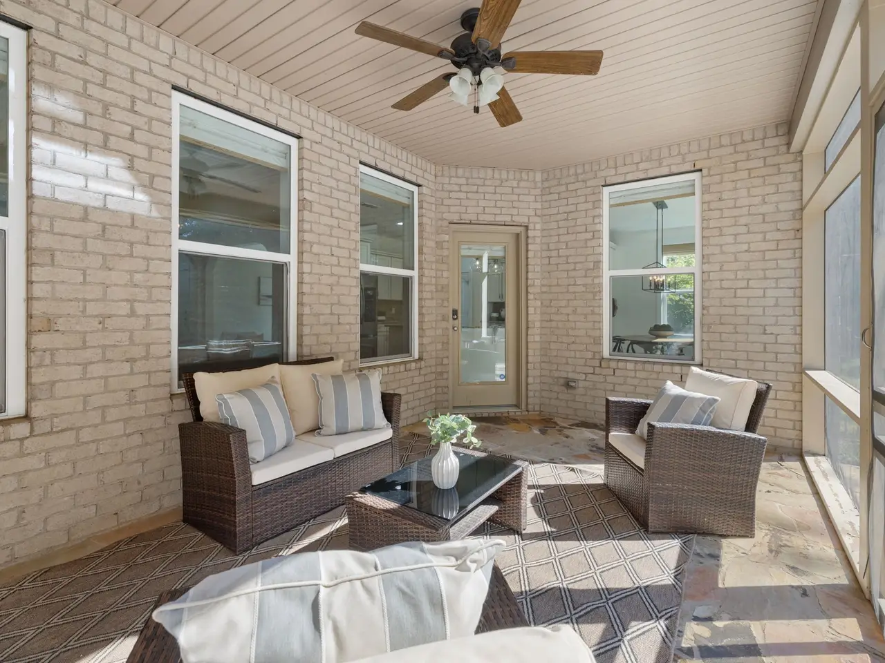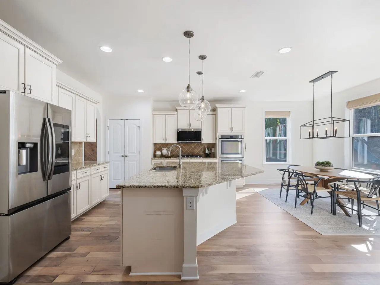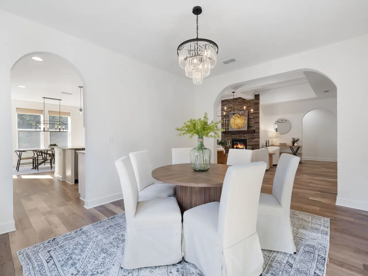 Welcome home to this stunning property with a layout that truly has it all! The gourmet kitchen is the heart of the home, featuring a large island and breakfast area that open to the great room with its cozy stone gas fireplace and beautiful coffered ceiling. Just off the foyer, the formal dining room shines with arched doorways and a wood accent wall that adds warmth and charm. The main level offers a relaxing primary suite with double closets plus a private guest ensuite--perfect for visitors. Upstairs, you'll find plenty of space with an oversized bonus room, a media room for movie nights, and two additional bedrooms, along with extra storage. Fresh white paint throughout makes every room feel bright and welcoming. Enjoy the outdoors year-round with a screened flagstone porch, a patio for grilling, and a level fenced backyard with irrigation--ideal for play, pets, and entertaining. A 3-car garage tops it all off.