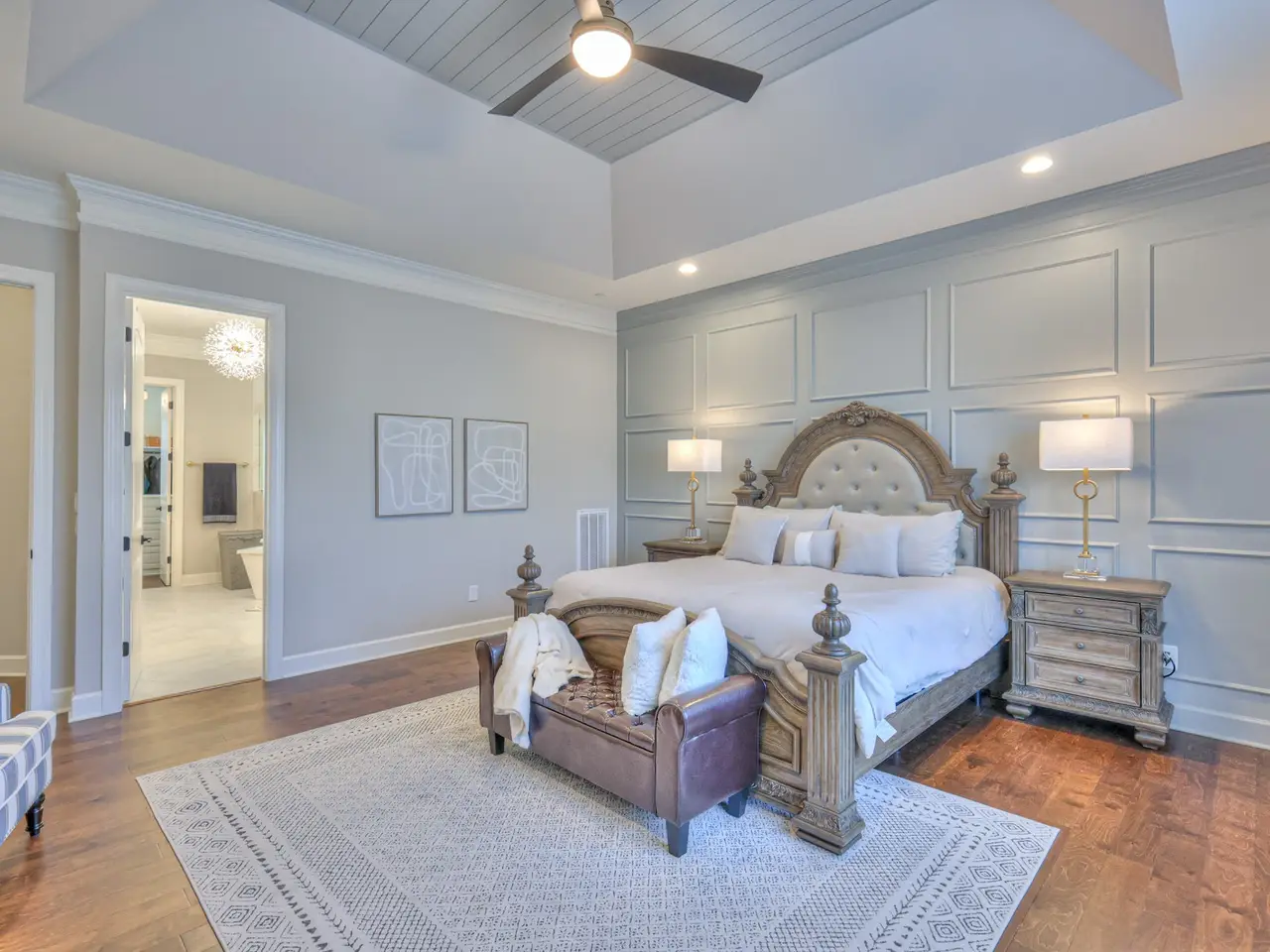 Seller is making available a $20,000 Buyer Mortgage Incentive! Several options to choose from, 7/6 ARM with $20K Buy Down 5.5% or 30 Year Fixed Rate 6.0% with an acceptable offer. Other options for the buyer to use the $20K incentive towards closing costs or as a landscaping incentive with an acceptable offer. This custom-built Devonshire II estate home is move-in ready! Situated on a prime, half-acre level homesite, perfect for a backyard pool, As you step through the grand foyer, you'll be greeted by beautiful lighting and elegant wood paneling along the side wall. Passing by the formal dining room with stunning floor-to-ceiling wood design. Retreat to the primary suite, which features a stylish wood-design wall and tray ceiling with a fan light. The spa-like primary bath includes a walk-in glass-tiled shower, and a soaking tub. The walk-in closet even boasts its own island for added convenience. The open living room features a coffered ceiling, a fireplace with a Wescott mantle, chevron trim detail, and built-in shelves. Step into the impressive chef's kitchen, where ceiling-high cabinetry, a custom hood, a 6-burner gas cooktop with a brushed gold pot-filler, and stainless steel double ovens come together to create a dream space for cooking and entertaining. The island, complete with a Blanco farm sink, quartz countertops, a dishwasher and two gold pendants. There is a large eat-in nook. The guest bedroom also features a wood-design wall, and there is a private office conveniently located on the first floor. Second floor has 3 Bedrooms and 2 full bath; a Jack n Jill, and an ensuite. Also, an additional half bath has been added to the home plan for extra convenience. The theater room boasts dramatic lighting, while the game room offers versatile space for entertainment. Step outside to relax on the covered back patio with stamped concrete, overlooking the expansive backyard with ample room for a pool!