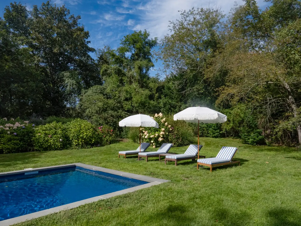 Rental Reg # RP201221. Down a long drive, this charming Hamptons classic house is situated on a professionally landscaped acre. Tucked away in a quiet community and only a stone's throw to both Bridgehampton and Sag Harbor villages. This stylish professionally decorated home is fully equipped with four bedrooms and 2.5 bathrooms. The first floor boasts a sun-drenched great room with designer furniture and lighting, wide plank floors and a brick fireplace. Additionally, there is a master bedroom with an en suite bathroom. The kitchen is beautifully appointed with a top-of-the-line Lacanche oven, there is also a powder-room, large pantry, laundry and mudroom with access to the pool and back garden. The second floor has three additional guest bedrooms with beautiful views of the grounds, one of the bedrooms has a walk-in closet and on the second floor there is an oversized shared bathroom. Ideal for summer entertaining the back and front gardens offers complete privacy with an expansive wrap around deck, a heated pool, outdoor shower, and a generous fenced in yard. A true gem not to be missed!