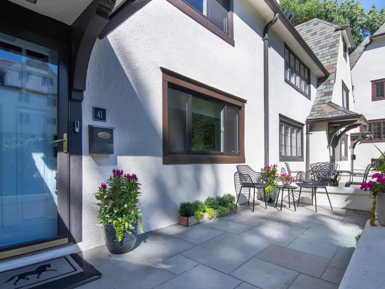 Welcome to 41 Sagamore Roadan architecturally beautiful four bedroom, three bathroom townhouse designed by renowned architect William Bates, just steps from Bronxville’s shops, dining, school, and Metro-North. This sun-filled home features a spacious open layout with hardwood floors, new windows, and central air. The second floor includes a primary bedroom with walk-in closet, a second oversized bedroom with plenty of storage and a chic full bathroom with a walk-in glass shower. Two more bedrooms and a full bath are found on the third floor, with access to a walk-up attic space. The finished, partially above grade lower level ideal for a gym, office, or playroom, offers soaring ceilings, another full bath, and walk-out access to the back patio area. Enjoy down time with friends on the private flagstone front porch surrounded by mature landscaping. Two dedicated parking spaces are in the back of the property for everyday convenience. Classic charm meets modern convenience at 41 Sagamore, right in the heart of the Bronxville Village!