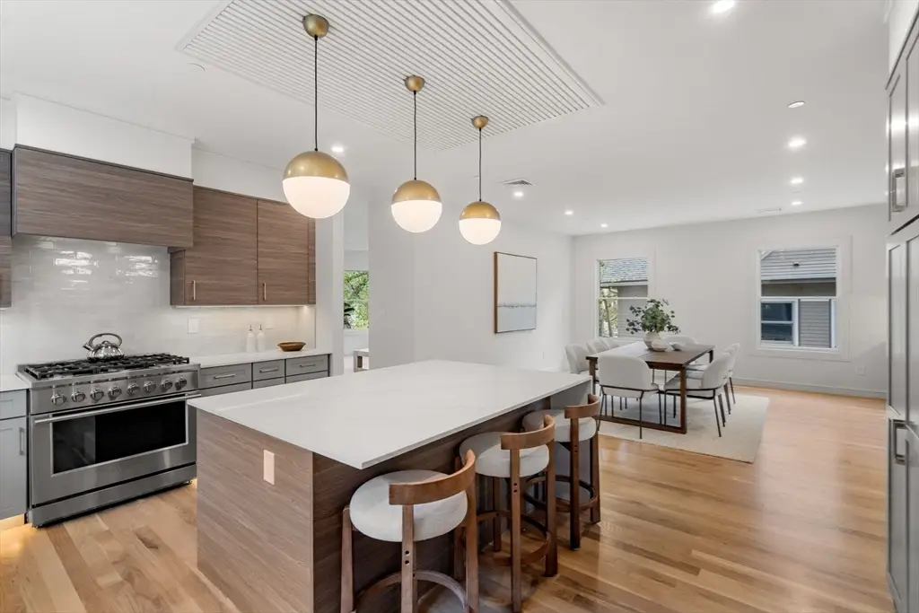 Exceptional. Refined. Yours. This luxury 5 bed, 4.5 bath tri-level residence with nearly 4,000sf, private outdoor space and 3-car parking (EV) offers the feel of a SF home - right in the heart of Washington Square. More than a renovation, a complete reimagining of a Brookline classic blending Victorian era detail with high-end construction & luxury finishes. Soaring 9-10' ceilings, a wide-open floor plan, and captivating chefÆs kitchen set a welcoming tone for entertaining and daily living. And design allows for a main-level guest suite, media room or play place. Upstairs are a luxurious primary suite offering a serene retreat with vaulted ceilings, dual walk-in closets and lovely bath plus three family ensuite BRs and a loft study. Construction is optimized for energy efficiency, quiet and light, and the land for spacious exclusive-use yard, patio and outdoor storage. Walk to the MBTA, Driscoll, shops, restaurants, Whole Foods and easy access to Longwood Medical, Boston & Cambridge.