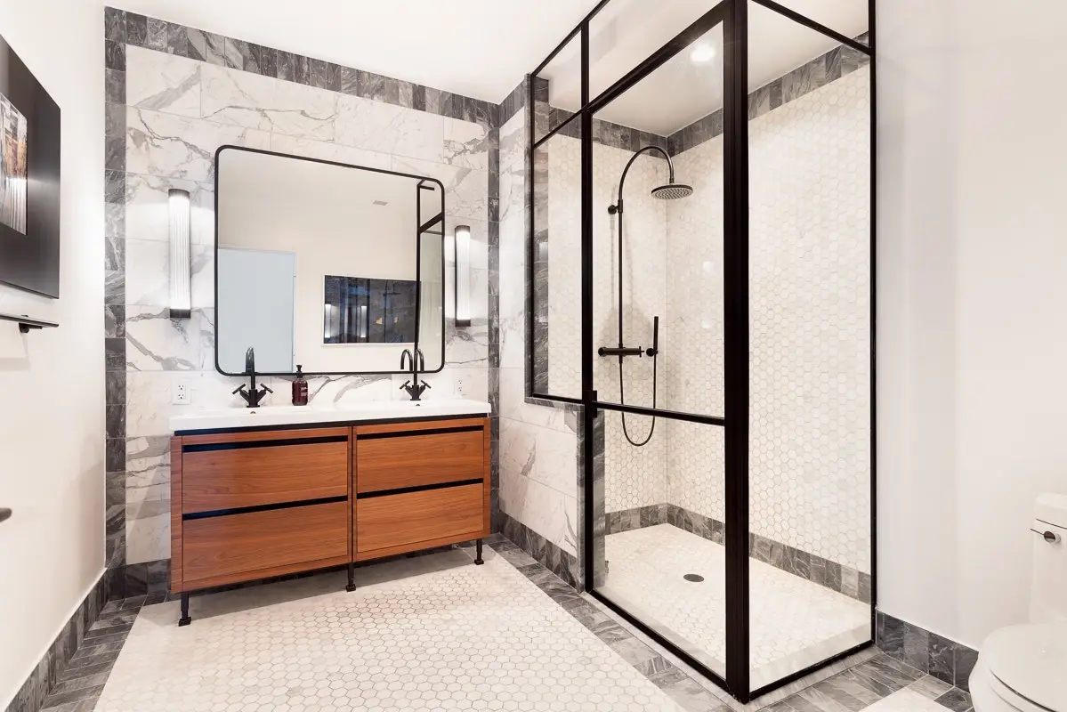 This expansive three-bedroom, 2.5-bathroom condominium residence soaks in expansive East River views from every room, including west-facing floor-to-ceiling windows in the living/dining room overlooking Manhattan and beyond. From its perch on the 34th floor of the decadent 21 India Street, residents will enjoy sweeping views of the river, skyline, and sky all year round via western and northern exposures. A formal entryway with two coat closets leads to a gallery, unfurling to reveal an open kitchen, dining and living space overlooking the East River with corner floor-to-ceiling windows. A large L-shaped kitchen provides bountiful storage and useful prep space in a unique two-tone design. Walnut cabinets are framed by a waterfall-edge countertop and herringbone Carrara tiles stretching to the ceiling. Opposite and conversational with this modern kitchen is a living and dining area stretching 32' wide. Ample space and flexibility provide for varied arrangements for separate dining and living areas, all gravitating towards captivating views. There is also a powder room located off the central hallway. Extending the living space is an approximately 90-square-foot balcony, perfect for an outdoor living or dining area. Secluded on the eastern side of the apartment is a spacious primary bedroom suite, complete with a walk-in closet, two additional closets, and a four-fixture master bathroom with double vanity and a large step-in shower with rain head. Two secondary bedrooms are located off a small gallery, each sharing a four-fixture bathroom. One of these bedrooms is a lovely corner room with floor-to-ceiling windows and more of those river views. This space could also double as a dramatic reading room, home office, or TV room. The other bedroom faces north and can accommodate a queen-sized bed with excellent closet space. Amenities abound at 21 India Street, including a 24-hour attended lobby, co-working space, fitness center with half basketball court, and outdoor spaces in the form of a sun deck and courtyard. Bike storage is available, as is third-party parking in the building. For transit, the building is located directly adjacent to the India Street Ferry Landing (ferry reportedly returning soon) and the G-train at Greenpoint Avenue (with a station entrance on India Street @ Manhattan Avenue).