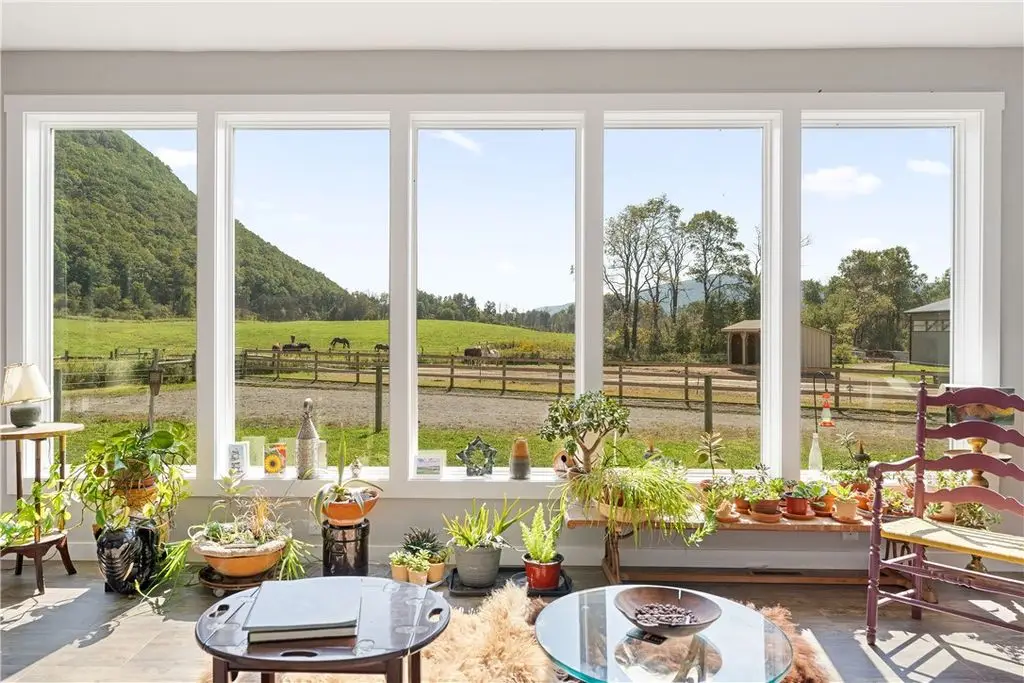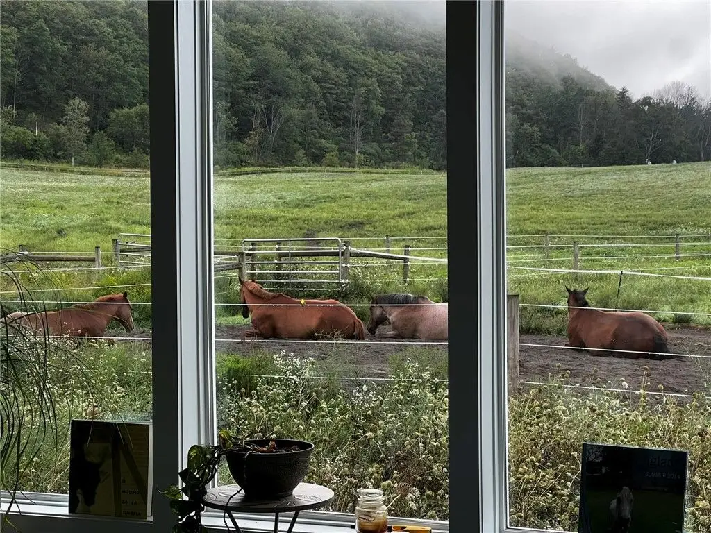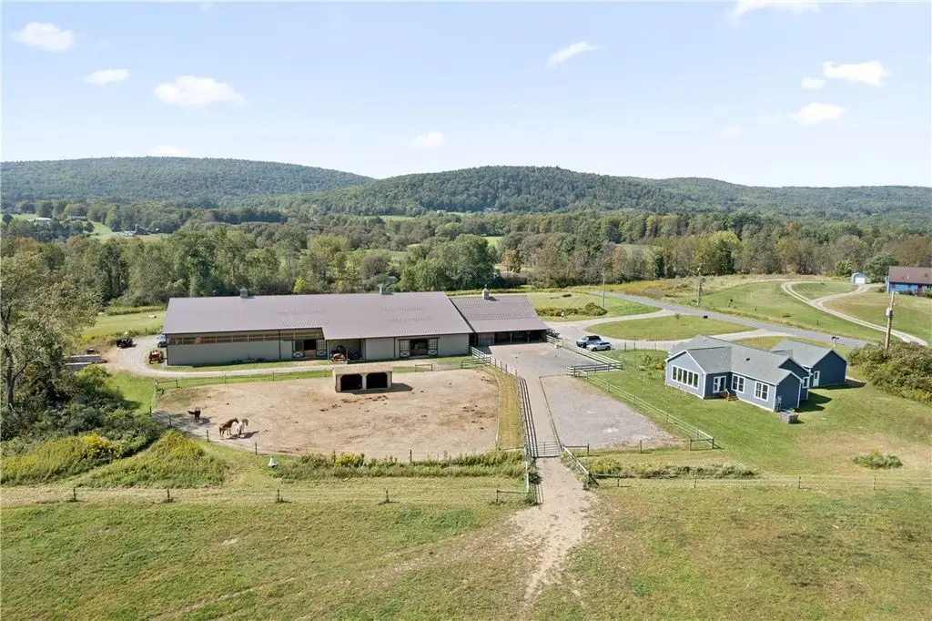 This exceptional equestrian property offers a rare combination of features. Set on 30 acres only 15 minutes from Cornell University in the Finger Lakes region, this facility's amenities are top of the line! The barn features 6 stalls, all with 12x12' mats, outlets and automatic waterers, a wash stall, heated bathroom, feed room, and heated tack room with observation area. 5 stalls have Dutch doors to the run-in shed and dry lot paddock that leads to a 20-acre pasture. The 80 x 160 indoor arena is perfect for year-round equestrian needs and the professionally built turf riding field with cross country jumps offers even more riding space. An additional paddock with run-in and large storage area off the arena round out this elite facility. Relax and watch your horses through the wall of windows in your 2020, 3-bedroom home with an open floor plan, 9-foot ceilings, lots of light, a perfect primary suite and plenty more space in the basement to expand or use for gym/rec activities. Geothermal heat for the home and solar for the house and stable result in very low utilities. Currently an income producing boutique boarding business. Continue a business or use it all for your own horses!