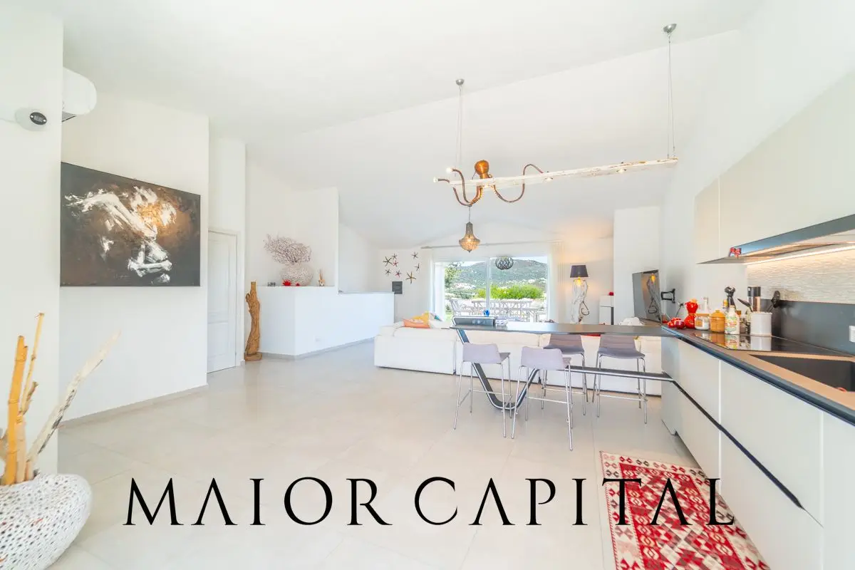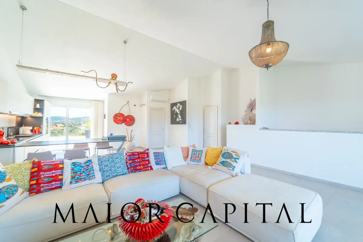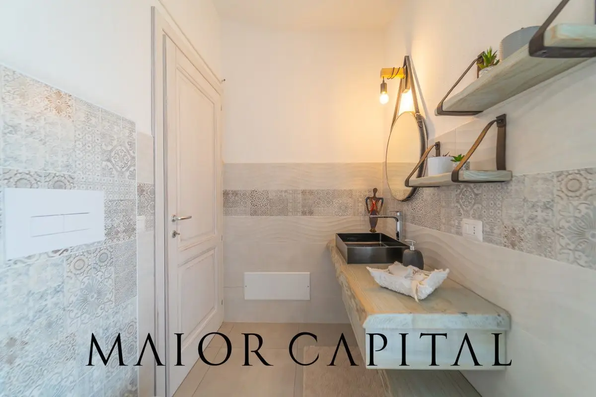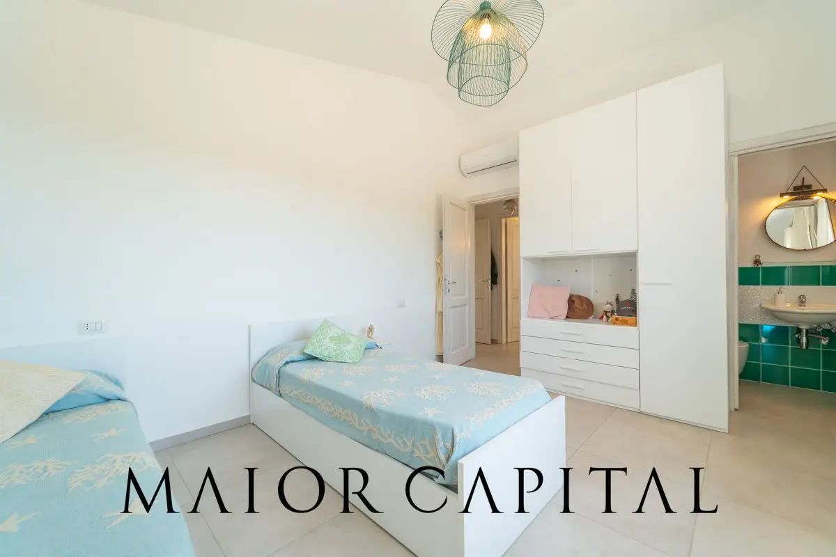 In Budoni, in an exclusive residential setting composed only of villas, we offer for sale a prestigious independent villa, immersed in tranquility and privacy. Located just 5 minutes from the main beaches and within short distance of all essential services, the property stands out for its perfect balance between architectural elegance and harmonious integration with the surrounding natural landscape.Mediterranean Garden and Sea View PoolThe exterior is an exclusive setting where every detail is designed to offer comfort, privacy, and beauty. The villa is surrounded by a lush Mediterranean garden, carefully landscaped with native and ornamental plants, and enhanced by a majestic centuries-old wild olive tree perfectly integrated into the outdoor paving. The private pool dominates the landscape, offering an open sea view and evoking pleasant emotions.Living Area: Brightness, Design, and Continuity with the OutdoorsA covered veranda welcomes guests and leads to the living area, where light tones and clean lines prevail, enhanced by natural light streaming through large windows. The visual effect is one of open, harmonious, and welcoming space. The atmosphere is enriched by vibrant decorative elements: brightly colored cushions, natural wood furnishings, and marine-themed artworks that add personality and a Mediterranean touch to the entire space.The living area is designed for maximum living comfort, with thoughtfully selected furnishings and a seamless connection between the living room and the kitchen. The latter, modern and minimalist, opens onto a second veranda, further increasing the brightness and creating a perfect synergy between indoor and outdoor spaces.Sleeping Area: Privacy, Functionality, and Direct Access to the PoolThe villa's sleeping area is designed to offer privacy, comfort, and excellent everyday livability. The spacious and bright master bedroom includes an en suite bathroom and boasts direct access to the solarium and pool, allowing for a continuous connection with the outdoors. Next to it, a second double bedroom, also with a private bathroom, ensures maximum comfort for guests or family members.A third room, currently used as a study, can easily be converted into an additional bedroom, making the layout highly flexible. Completing the floor is an extra bathroom with a large shower, a laundry corner, and direct access to the garden—perfect for daily use or returning from the pool or the beach.Elegantly Designed Lower FloorAn internal staircase leads to the basement level, characterized by a warm and authentic atmosphere. Here, we find a living area decorated with artisan elements, paintings, and marine-themed accents, all in perfect Mediterranean style. This level also includes a double bedroom and a bathroom with a spacious wall-mounted shower, finished with high-quality materials in neutral and relaxing tones.Budoni and Surroundings: Between Dream Beaches and Exclusive DestinationsThe center of Budoni, with its lively square, restaurants, boutiques, and all major services, is just a 5-minute drive away. Within less than 15 minutes are some of the most beloved destinations of the eastern coast, including San Teodoro, Porto Taverna, and Porto Ottiolu, known for their fine sandy beaches and crystal-clear waters.The city of Olbia, with its port and international airport connected to major European capitals, is easily reachable in about 30 minutes. Finally, within just one hour by car, one can reach Costa Smeralda™, the iconic destination of luxury tourism, with exclusive locations such as Porto Cervo and Baja Sardinia—symbols of the most refined Mediterranean lifestyle.Layout:Ground Floor* Covered veranda* Spacious living area* Open-plan kitchen overlooking a second veranda* Double bedroom with en suite bathroom* Twin bedroom with en suite bathroom* Study* Guest bath