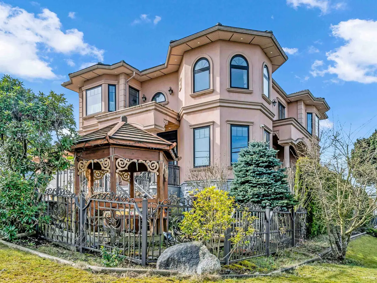 Stunning custom-built corner lot home in Garden Village with breathtaking mountain views, offers luxury, comfort, and unparalleled craftsmanship. Boasting 6 bedrooms and 6.5 bathrooms, with open and spacious layout and high-end finishes, including crown and floor molding, a gourmet kitchen with top-tier Thermador s/s appliances, a sweeping spiral staircase, HRV, A/C, 8-speaker music system and an 8-camera security system. Two bedroom ensuite in the basement with separated entrance/ kitchen/ laundry.The private low-maintenance backyard with custom-built gazebos creating the perfect retreat for summer. 2-car garage plus ample driveway parking. 5 mins walking to bus stops, 15 minutes to Patterson SkyTrain, Quick access to Highway 1. Catchment School: Chaffey-Burke Elementary & Moscrop High.