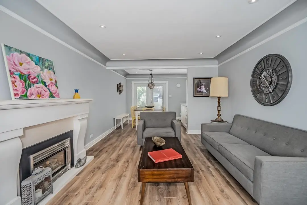 Welcome to this delightful 4-bedroom, 2-bathroom rancher, ideally situated just steps from a local elementary school and the prestigious St. Thomas More private school. Perfect for families, this home offers a traditional layout featuring a spacious living and dining area, and an updated white kitchen complete with a gas stove/oven and stainless steel appliances. The primary bedroom includes a generous walk in closet, while the home offers great flexibility with 2 bedrooms on the main floor and 2 additional bedrooms in the fully finished basement. Downstairs, you'll also find a large family room-perfect for movie nights or kids playtime. Additional highlights include laminate flooring throughout, stylish new light fixtures, backyard oasis. Detached single car garage w/ laneway access.