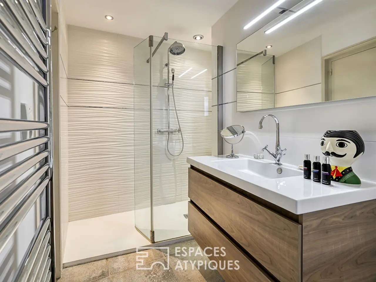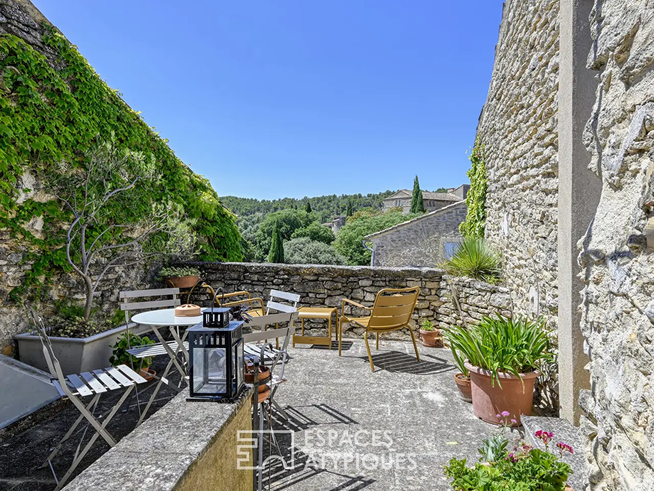 Entering through a discreet alleyway is like stepping into a true Provencal haven where every detail tells a story. This little gem, both authentic and carefully renovated, spreads its bright and welcoming spaces over several levels, for a fulfilling family life or an exceptional second home. The modern kitchen, bathed in natural light, invites conviviality and sharing. The living room, the heart of the house, seduces with its antique fireplace decorated with a wood-burning stove, offering a warm atmosphere in all seasons. Large French windows open onto an intimate and peaceful garden, where stone and vegetation blend harmoniously, ready to accommodate a pond according to your desires. A cozy winter dining room completes this level, ideal for cozy evenings or a quiet office. The upper floor houses two beautiful suites of over 20 sqm, bright and comfortable, true havens of peace. On the top floor, the exceptional experience continues with a rare and enchanting living space: a vast master suite with a spacious bedroom, a TV lounge opening onto a Tropezian terrace with panoramic views over the village rooftops and the surrounding countryside. A separate spiral staircase leads to an adjoining room, now a library, which can be converted into a bedroom with bathroom and toilet. The latter benefits from independent access via a magnificent stone staircase served by the entrance hall, offering perfect autonomy and a unique charm. A separate workshop in a former barn completes this property, which can be converted into a garage, artist's studio, games room or leisure space depending on your plans. Finally, the ground floor includes a technical room dedicated to the central heating boiler and a small wine cellar, meeting the practical and technical needs of the house. This rare residence elegantly combines Provencal authenticity and contemporary requirements, ideal for peaceful village life or a charming residence in Provence. ENERGY CLASS: E CLIMATE CLASS: E Estimated average amount of annual energy expenditure for standard use, based on energy prices for the year 2023: between 3250 and 4250 euros Information on the risks to which this property is exposed is available on the Georisques website: www.georisques.gouv.fr REF. 950EAA Additional information * 6 rooms * 4 bedrooms * 1 bathroom * 2 shower rooms * Floor : 2 * 2 floors in the building * Outdoor space : 248 SQM * Parking : 2 parking spaces * Property tax : 2 407 € Energy Performance Certificate Primary energy consumption e : 204 kWh/m2.year High performance housing