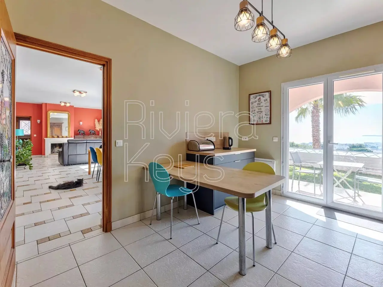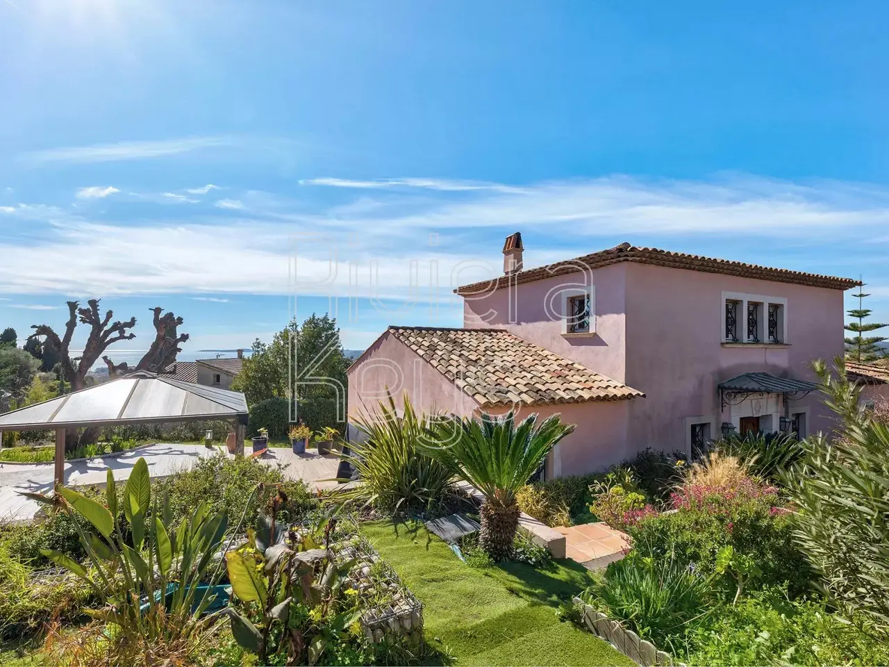 Located on the heights of Cagnes-sur-Mer, in the sought-after area of Les Colettes, this spacious villa offers breathtaking sea views. Nestled in a peaceful residential setting, it was built in 2005 and features: On the ground floor: a dining room with a living area, a bedroom, an office, a toilet, a bathroom with toilet, a pantry, a hall, a kitchen, a terrace, and a double garage. Upstairs: 3 bedrooms, a games room, a bathroom, a separate toilet, and a balcony. The property sits on a 1,020 m² plot with a landscaped garden and a jacuzzi.