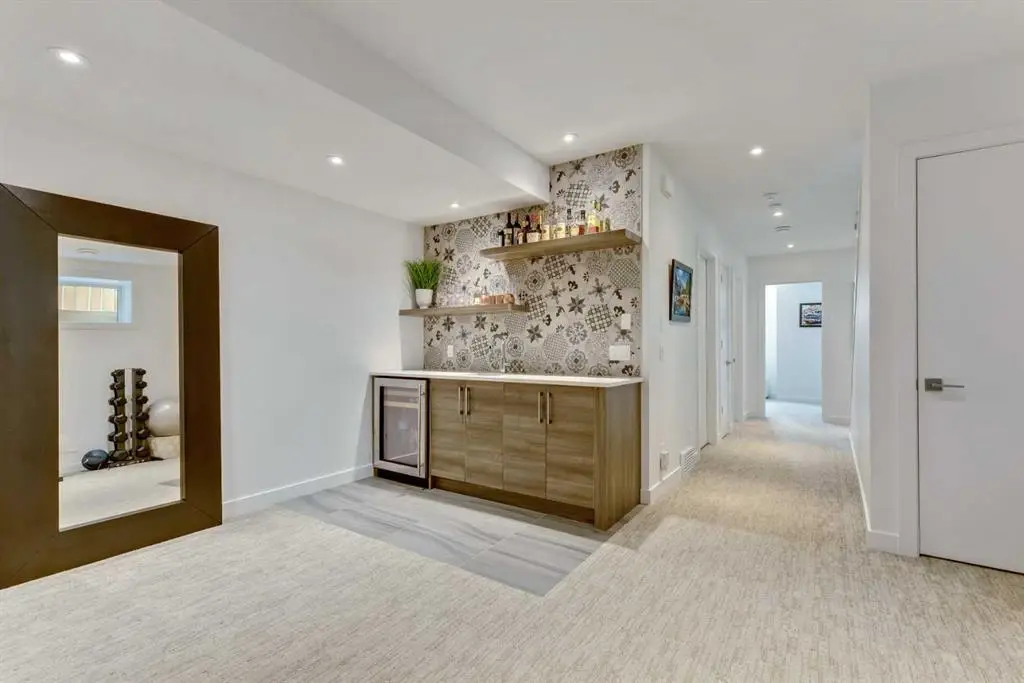 Welcome to 2136 53 Ave SW! This crisp and modern home is located in the quiet neighbourhood of North Glenmore Park. High quality materials, finishing and workmanship are evident in this home with an open plan concept and design. The main floor offers an open layout that is flooded with natural light throughout the day. The custom kitchen features a 13ft white quartz waterfall eating bar, a 6 burner dual fuel GE Monogram oven, a built in microwave, panelled Bosch Fridge, panelled Bar fridge and Bosch dishwasher. Lots of room to entertain a large group with the open flow. The custom wavy paralam open riser staircase is a unique and classy feature with the sophisticated stainless steel and glass railings adding a airness to the space The living room offers a modern gas fireplace, double patio doors, a mud room with a custom bench all leading to the low maintenance backyard, private deck and double detached garage. The upper floor features even more natural light with skylights, large windows, vaulted ceilings throughout, a large primary bedroom with custom built in's, a luxurious ensuite with heated tile floors, dual sinks, soaker tub, separate tiled shower, a generous custom walk in closet, truly a gorgeous place to relax at the end of the day. Two additional bedrooms, main bathroom with heated tiled floors and the upstairs laundry complete with a sink complete this level. The basement is fully developed with a large recreation room to entertain friends and family with a wet bar with fridge or have your personal gym at home. The large 4th bedroom and full bathroom is perfect for guest to be comfortable complete this level. Top this off with RI in floor heating, the double detached garage that is insulated & drywalled. The backyard is a tranquil peaceful low maintenance space to relax in, while the front landscaping is lush and welcoming with multiple established perennials, shrubs and trees. Come move in and put your feet up. Enjoy the quiet simple life with conveniences at your fingertips. Enjoy being able to walk to; The Glenmore Aquatic Center, the old and new Glenmore Athletic Park, River Park/Dog Park, Sandy Beach Park, Stu Peppard,(New Twin Areas Coming soon) Flames Community Arenas and Curling Club, Calgary Tennis Center, Lakeview Golf course, Bike downtown or to the Glenmore Reservoir with the Elbow River pathway, Highschool, or even Mount Royal University and great transit including the Max bus line. Easy access to Downtown, Crowchild, Glenmore and Stoney Trail.