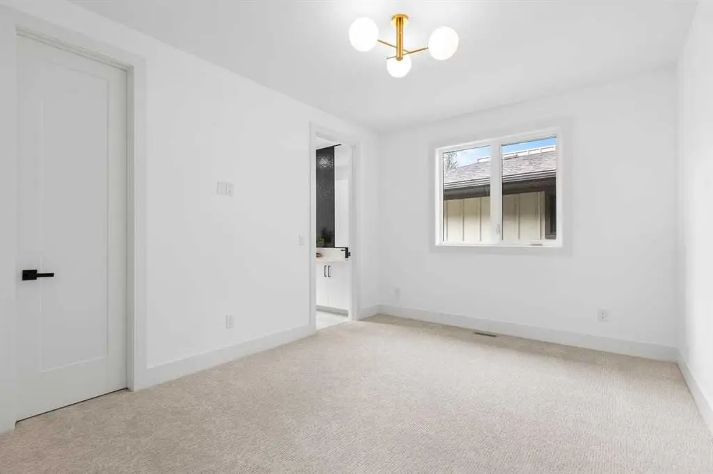 Extraordinary luxury residence in prestigious Patterson Heights -The Point- with over 4500 sq ft of living space, where thoughtful design and upscale finishes define every detail. As you enter, you're greeted by a grand entrance, boasting a floor to ceiling custom built closet. To your right is a beautifully appointed mudroom featuring a walk-in closet and impressive floor to ceiling wall unit, with direct access to the oversized double garage that's fully equipped with EV charging outlets, gas rough in for heater, hot and cold water taps. A full bathroom featuring quartz countertops and a floor-to-ceiling glass shower. Soaring 10 ft ceilings and wide vinyl plank flooring flow throughout, creating a seamless, elegant feel. The cozy living room is enhanced by a modern wall unit and ambient LED lighting, while the custom bar area complete with bar fridge, is perfect for entertaining. A private bright gym space with recessed lighting, sleek floating shelving and plenty of room for fitness equipment. The open riser staircase, paired with a PRIVATE ELEVATOR for ultimate convenience, leads to a show-stopping second floor. A light-filled home office overlooks a large window, and a modern half-bath. The stylish dining area is anchored by a built-in LED-lit beautiful wall unit, the glass sliding doors provide access to a balcony with breathtaking views of downtown Calgary. The coffered ceiling family room stuns with an art-block feature wall and gas fireplace. The sliding glass door gives access to a fully finished, landscaped backyard that backs onto serene green space, where wildlife sightings are frequent and peaceful. The kitchen is a true centerpiece with an elegant quartz waterfall island and hidden cabinetry, two-tone modern cabinets, high-end stainless appliances, and a fully equipped spice kitchen for hosting large gatherings. A modern kitchen nook with an exquisite light fixture completes this level. The top floor is an oasis of luxury, starting with a grand primary suite behind French doors. Enjoy a private balcony with views of the green space, a juice bar, in-floor heating in the en-suite, and a spa-style bath featuring a freestanding tub, floor-to-ceiling glass steam shower with rainfall head and granite seating. The second and third bedrooms share a beautiful Jack & Jill bathroom with quartz counters, and a fourth bedroom along with its own full bath and walk-in closet. Don't miss the thoughtfully finished laundry room. The bonus room is a standout, with downtown views, and another wall unit. This level boasts 9 ft ceilings, continuing the home’s spacious and airy feel. ADDITIONAL UPGRADES: Basement rough in under slab heating, 75 gallon hot water tank, 2 high-efficiency furnaces, 2 central A/C units, extensive built-ins. The exterior is fully landscaped, composite rear deck with a gas line.This is a true masterpiece offering luxury, comfort, and functionality across all three levels complete with elevator access. A rare offering in an exceptional location.