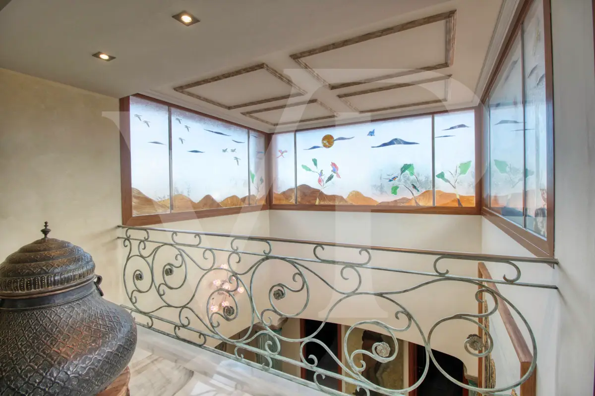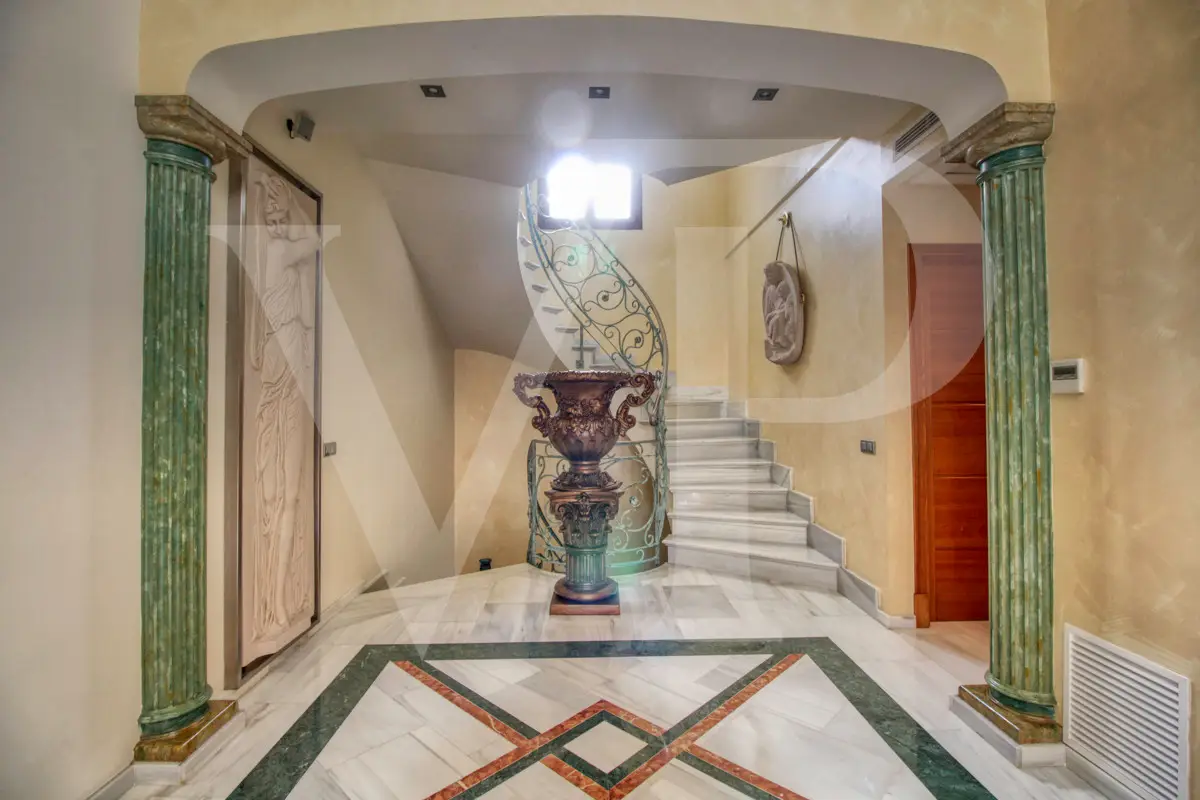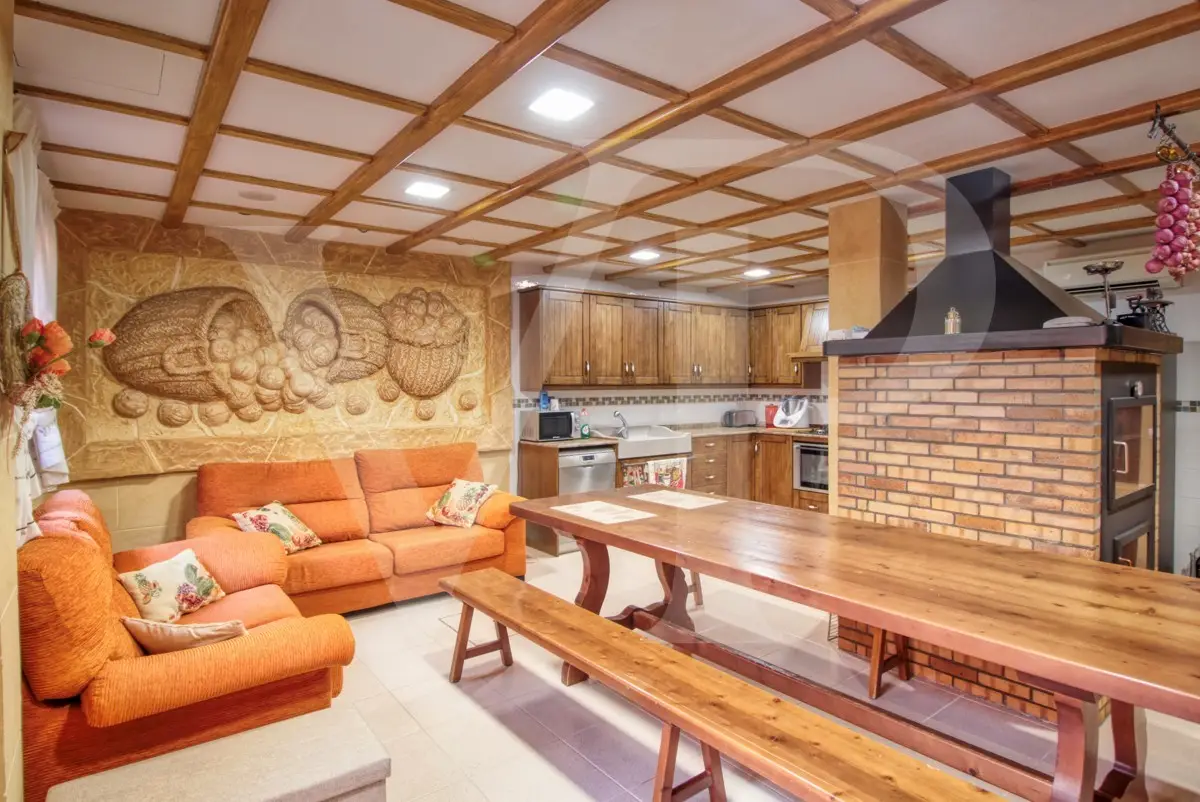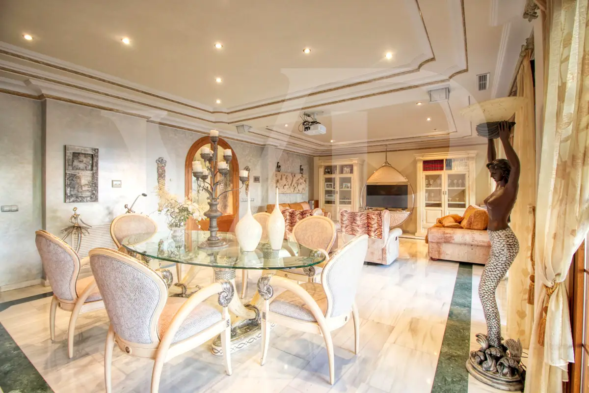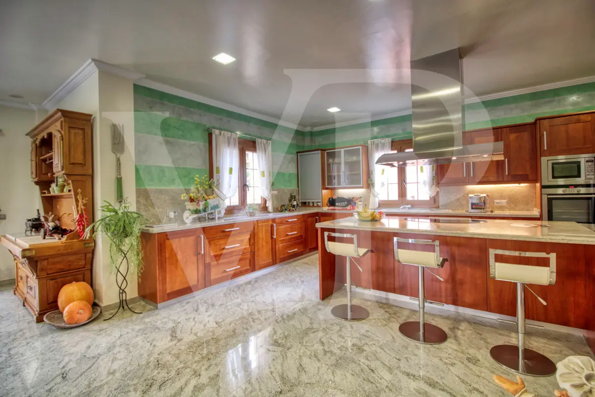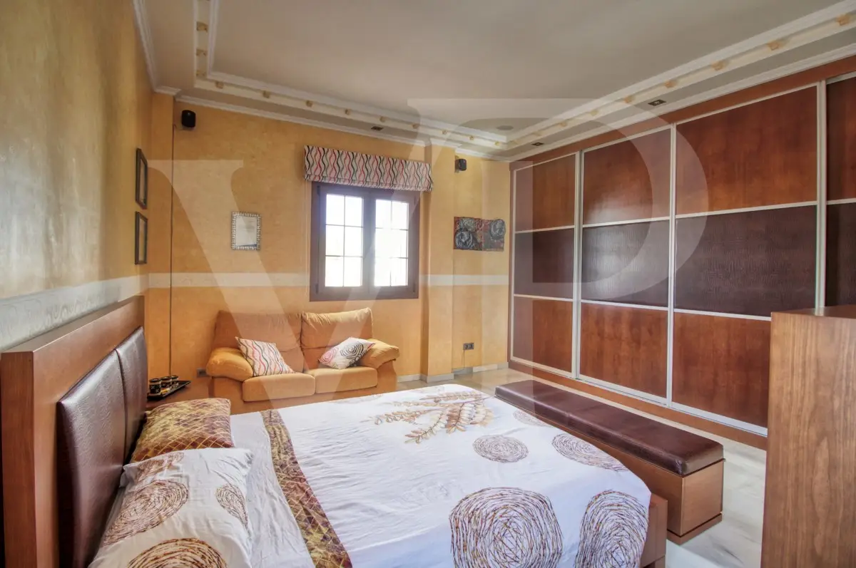 Spectacular villa with pool for sale in the Son Bauló urbanization in Can Picafort, 300 meters from the sea. The exterior of the property, in the style of a Mallorcan villa, has a fantastic heated saltwater pool of 26 square meters with roll-up structural cover, a covered barbecue and a large veranda of 100 square meters with outdoor lounge and dining room, many spaces and facilities for living to enjoy outdoors all year round. Garden area, a chicken coop and a large vegetable garden of 90 square meters, with the possibility of expanding the garden. Distributed over two floors, solarium tower and basement. The main entrance on the ground floor is accessed through the entrance hall, which connects the impressive living room and guest dining room, with a unique and personalized elegant decoration, equipped with beautiful leather sofas, high luxury furniture and exclusivity. Modern brand new kitchen, with solid oak furniture and wooden island, open to the dining room and east, with exit to the barbecue on the covered terrace as well as outdoor lounge and outdoor dining area. This floor has a double bedroom with dressing room and a beautiful bathroom, also has a laundry room. The beautiful spiral staircase leads to the first floor with 172 square meters. We arrive in the luxurious hall where one never tires of looking from all its angles and we find the master bedroom, from where we pass through the large dressing room of almost 24 square meters that connects the bedroom with designer furniture, as if in a constant dream and the spectacular bathroom with marble floors and walls, large shower and bathtub for true relaxation. A double bedroom and a bathroom like on the ground floor, as well as two further large bedrooms with large closets, a study and a living room. Distributed around the beautiful interior balcony. On the upper floor there is a beautiful tower with exclusive windows that provide the house with light throughout the day, custom-made with fused glass. There is also access to the 35 square meter terrace from which you can see the sea and the surrounding area. The basement of almost 270 square meters has a large garage for eight vehicles, hobby room, storage room, complete bathroom with shower and a fantastic kitchen with iron fireplace and oven, as well as dining area, living room, pantry, with access to a terrace and access also from the circular staircase . The property has a domotic installation with a system that automates the entire property, allowing you to control energy management, security, communication and well-being from inside, outside the house and from any country in the world using technology or mobile phone. The integration takes place via wired communication networks indoors and outdoors. It has numerous home automation installation elements such as PVC blinds on the veranda, security cameras, lighting, air conditioning, a music system with a network of speakers distributed throughout the house and the ability to control room by room. Cinema projector with motorized screen. Interior finishes in ash wood, white marble floors, stucco walls, installation of solar panels to support and save energy to use solar energy for hot water, underfloor heating and heating of the swimming pool. Air conditioning hot/cold via ducts. Very well preserved, thanks to the high quality of materials and good maintenance, this small palace is sold fully furnished and equipped with sublime taste. All the decoration has been carefully personalized by the owners, a great professional in this field. In addition, it offers many possibilities thanks to the large plot and the cellar.
