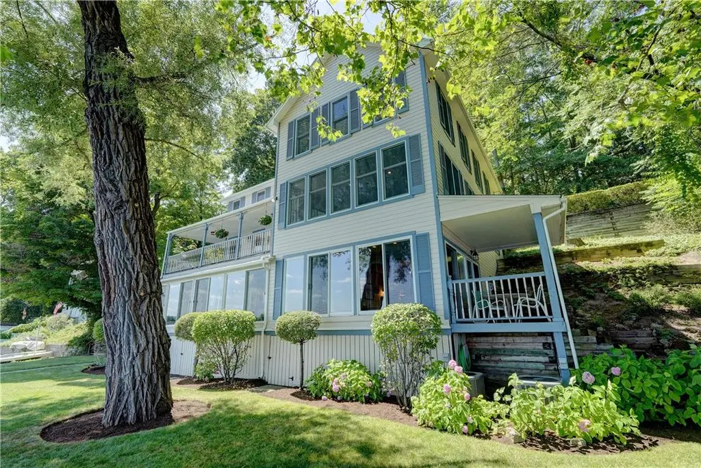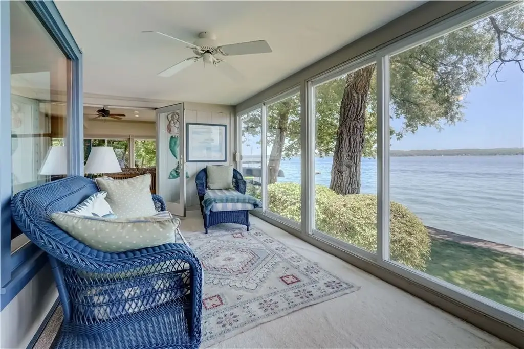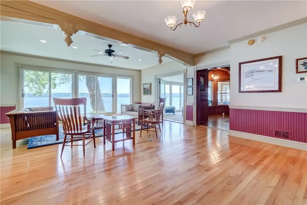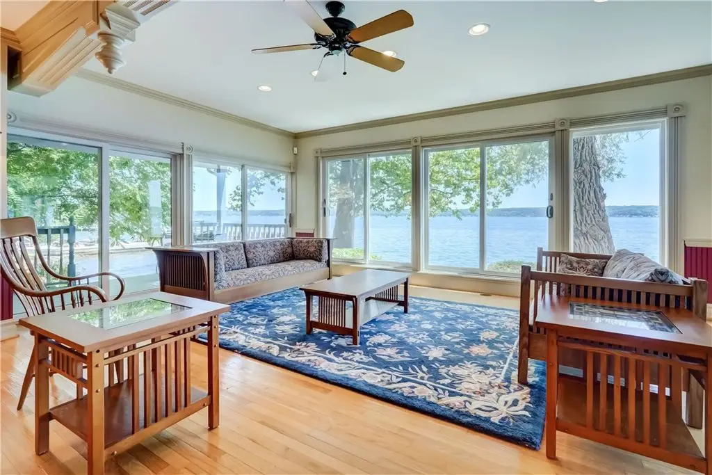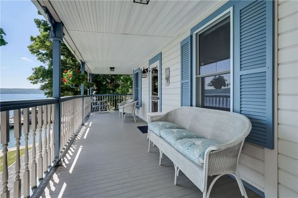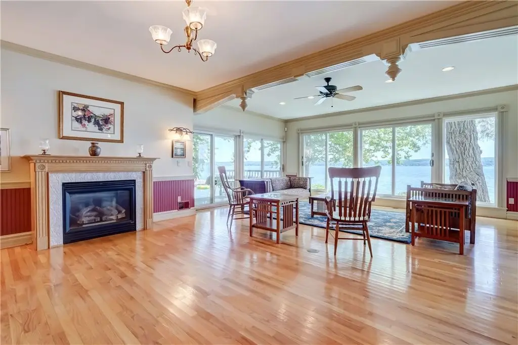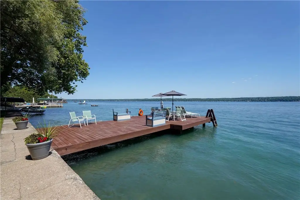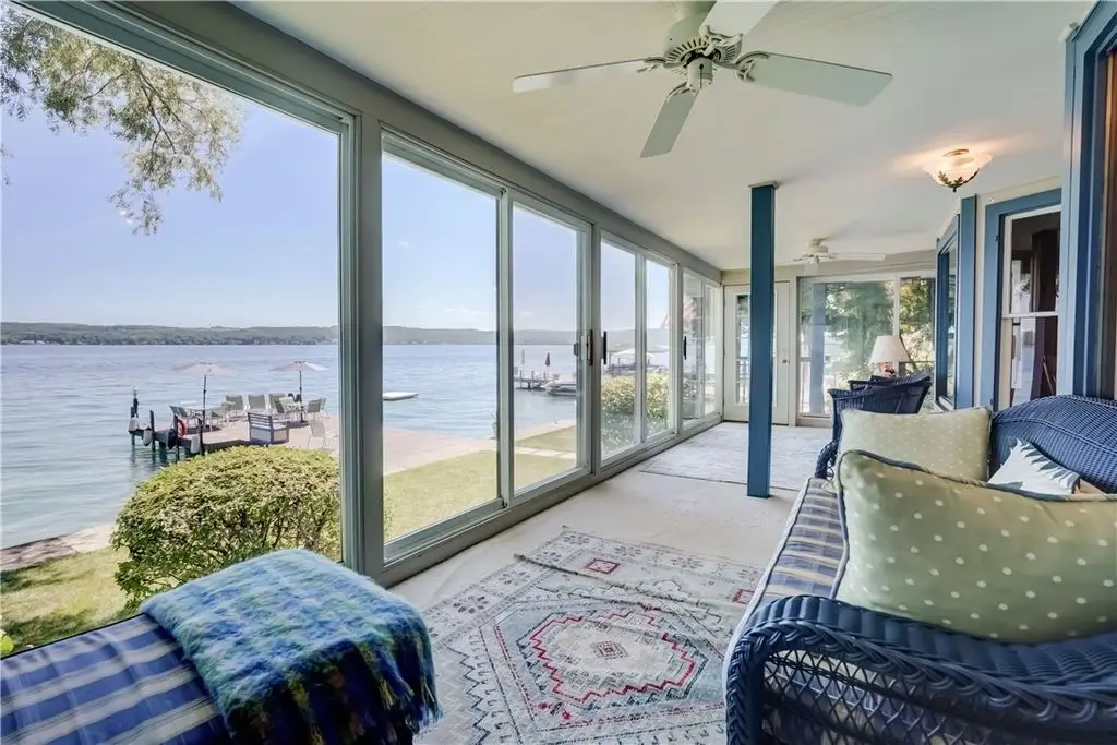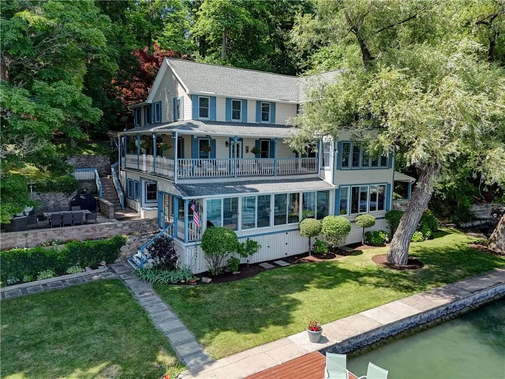 DON'T MISS THIS RARE OPPORTUNITY ON CANANDAIGUA LAKE!! This amazing offering features 140 feet of flat lake frontage with amazing waterfront views. This secluded 8 bedroom home off West Lake Rd. is located on private Davidsons Landing. This 4900 sq ft home has it all - with three full floors of living space. The first floor Great Room includes a wall of built-in bookshelves, a gas fireplace, and access to a large sunny enclosed porch. Beautiful woodwork encompasses two large eating areas, and a bright light-filled kitchen that has a large breakfast bar that has been updated with new SS appliances. On the second floor there is an oversized primary with a wall of windows framing exquisite lake views. A large walk-in closet, bathroom with shower, Jacuzzi tub, and a double vanity completes this spacious room. There is also a door that allows direct access to the open porch. The same floor has an additional bedroom, a full bath, as well as a convenient laundry room and adjacent utility room with loads of storage. The third floor has six bedrooms and two full baths with easy access to the outside. The exterior features an expansive stone patio off the kitchen for entertaining - as well as an open covered porch, large permanent dock, and boat hoist. This convenient location is only 4 miles from all the town of Canandaigua has to offer, including restaurants, shopping, marinas, and Wegmans! The property is serviced by public utilities for gas, water, sewer and high speed internet. Additional updates include; new driveway (2024) with large parking area, third floor carpeting (2020), two air conditioning units (2019), roof (2015), flooring (2018). Only permits on file with the town will be provided. Annual HOA approximately 2-3K per year. Please do not drive down the road without an appointment. Delayed showings begin July 26th at noon, and delayed negotiations beginning August 5th at 3p.m. Please allow 24 hours to respond to offers.