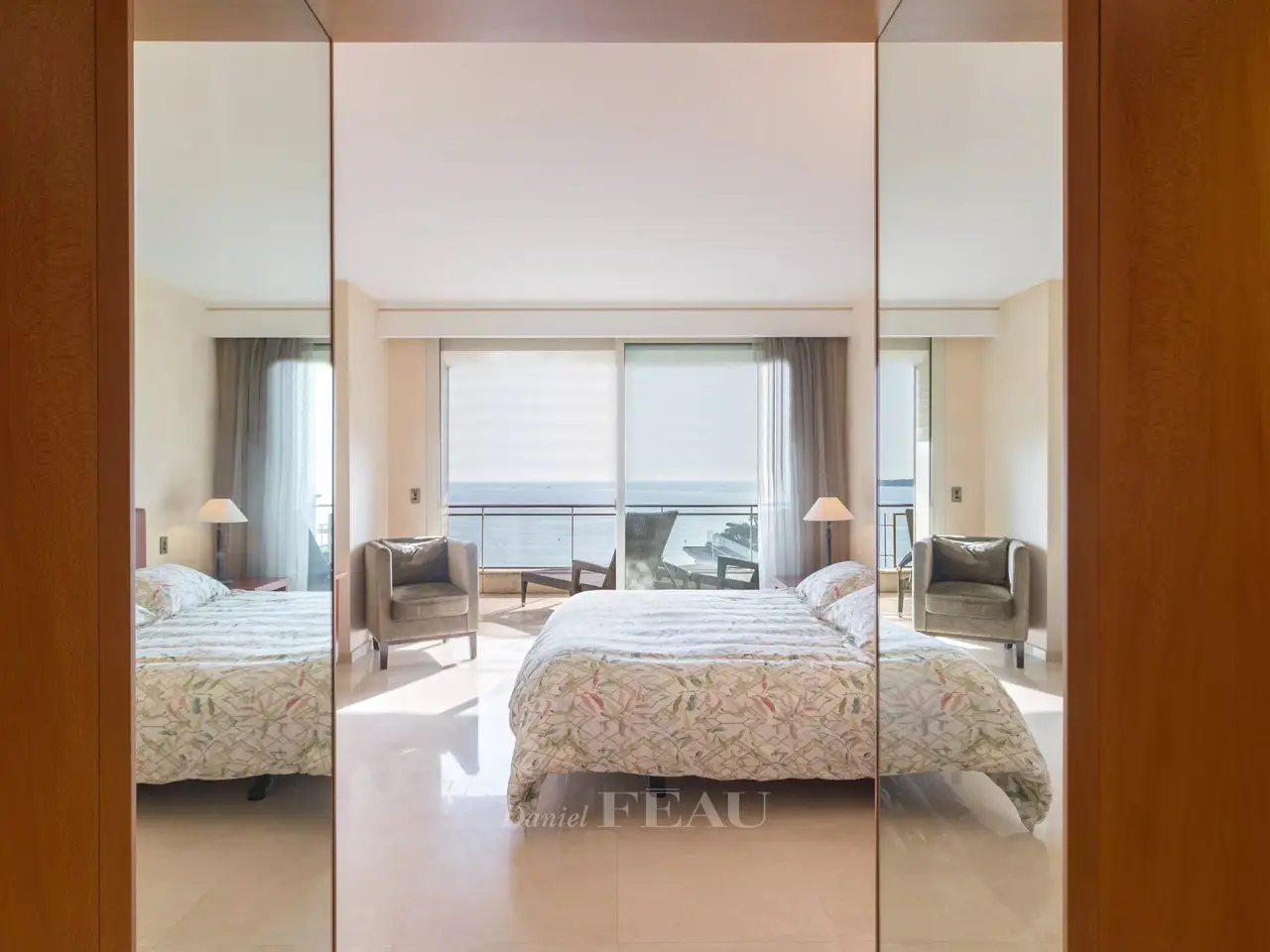 This magnificent apartment is on the 8th floor of a renowned residence located just a stone’s throw from the Palais des Festivals in the heart of the world-famous Croisette. South-facing, overlooking the renowned Grand Hotel’s leafy gardens and commanding a panoramic view of the Mediterranean, it offers 247.03 sqm of living space as defined by the Carrez Law and benefits from a 30 sqm terrace, a balcony, a 7 sqm maid’s bedroom and two garages. The apartment includes a near 90 sqm living/reception room, dining room and equipped kitchen, five suites (two facing the sea), and a studio apartment. With two 14 and 20 sqm garages, as well as a cellar. Units : 42