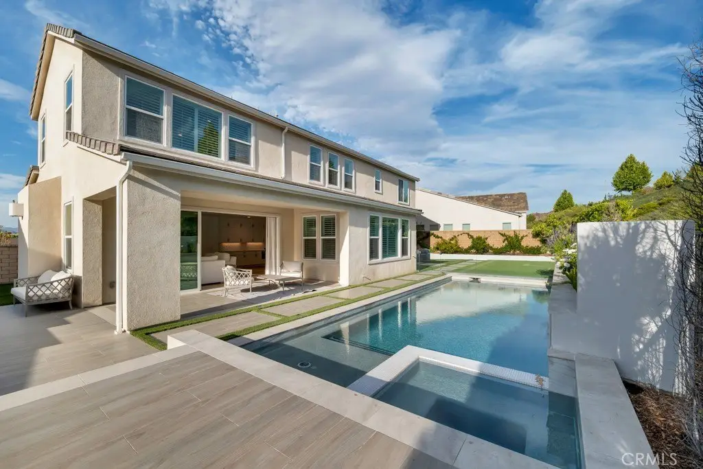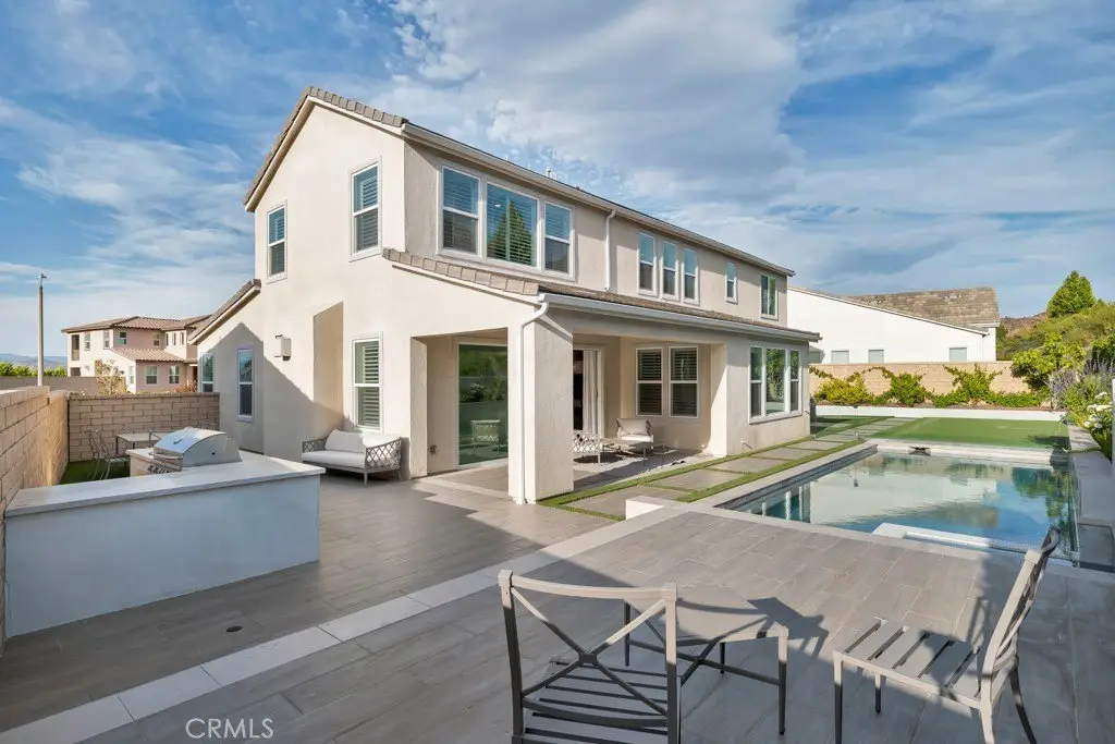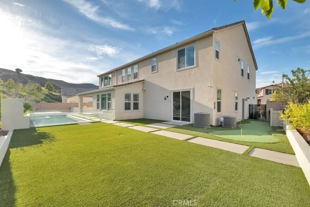 Absolutely stunning home located on a charming street within the highly desirable, gated Aliento community in Canyon Country. This expansive 4,023 square foot residence sits on a large lot and offers 5 bedrooms and 4.5 bathrooms. Recently, the owner invested over $300,000 in a stunning new pool and surrounding hardscape, creating a true backyard oasis. Brand new engineered wood floors were also installed throughout the home, both upgrades completed in 2025. The chef’s kitchen is a dream come true, featuring upgraded stainless steel appliances, a massive quartz island, and a spacious walk-in pantry — ideal for all your culinary endeavors. The first floor offers flexible living options, including a bedroom with an en-suite bathroom perfect for guests or multi-generational living, plus a dedicated office and a guest powder room. Upstairs, the luxurious primary suite boasts breathtaking mountain views, a generous walk-in closet with custom built-ins, and a spa-inspired bathroom complete with a soaking tub, frameless glass shower, and dual quartz vanities. The second floor also includes three additional bedrooms, a shared hallway bathroom, and a convenient laundry room. Additional highlights include a 220V outlet in the garage for electric vehicle charging and fully owned solar panels. Residents of Aliento enjoy resort-style amenities including a pool, hot tub, splash pad, BBQ area, wading pool, gym, clubhouse, bocce ball courts, cabana area, and green spaces — all with panoramic valley views. The community also features a dog park and scenic walking trails, with easy access to the 14 freeway, shops, and restaurants.