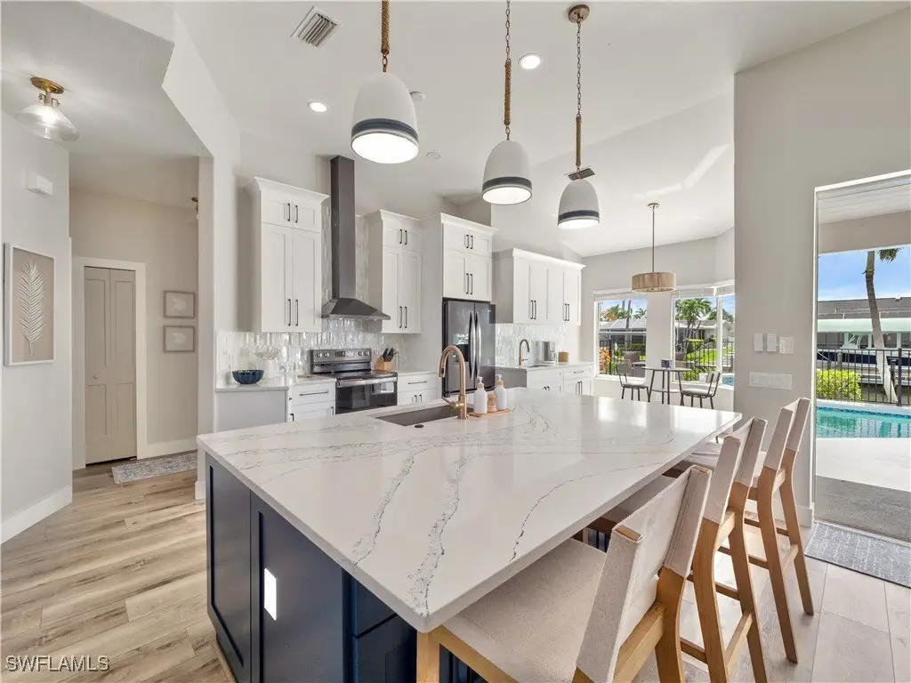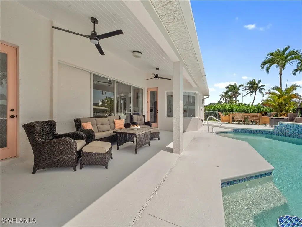 Here's your chance to own a piece of paradise in one of Cape Coral's top waterfront neighborhoods. This home is in a very residential area but at the same time, close to everything Cape Coral has to offer. This 4-bedroom, 3-bath home has just over 2,000 square feet of space and a layout that feels open, bright, and easy to live in. As you walk in, you'll notice the high ceilings and all the natural light pouring in. The kitchen has been fully updated with a big island and quartz countertops-perfect for cooking, entertaining, or just hanging out. Step out back and you've got your own private retreat. The pool was recently refinished and is ready for sunny days and relaxing evenings. If you love boating, you'll appreciate the direct Gulf access - no bridges, no hassle. The roof was replaced in 2021 and the home has been really well taken care of. You're close to everything! Tarpon Point Marina, TOP SWFL restaurants, and local shopping....but still tucked away in a quiet, waterfront setting. If you've been waiting for the right place that checks all the boxes, this might be it. Schedule your tour today.