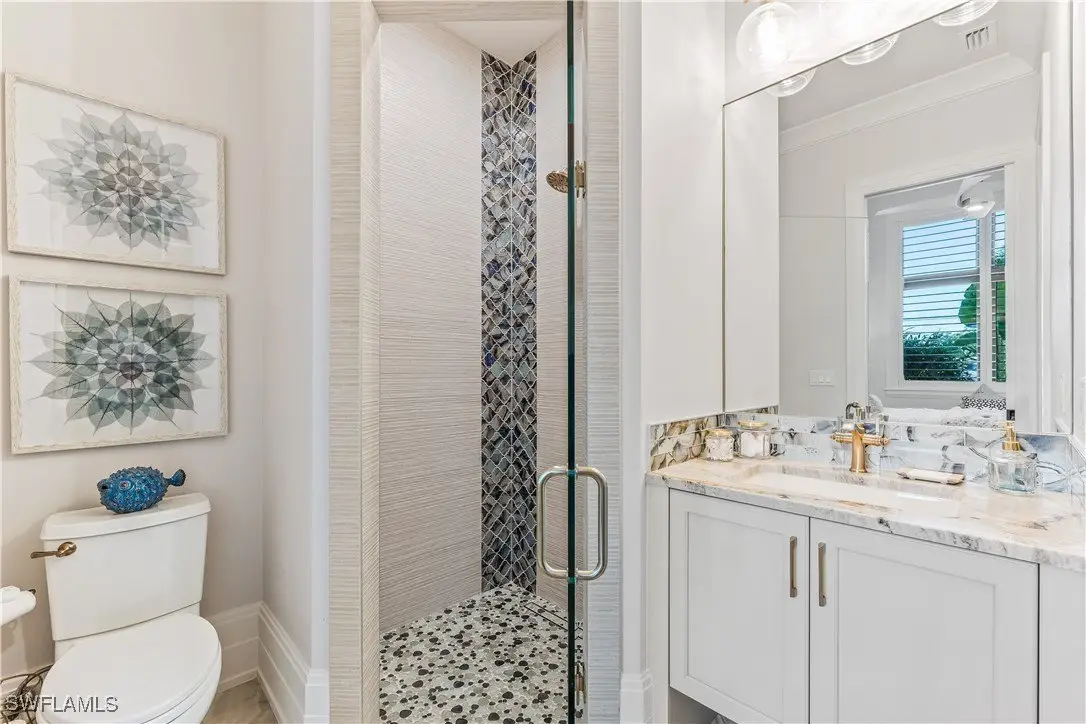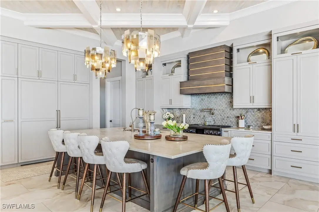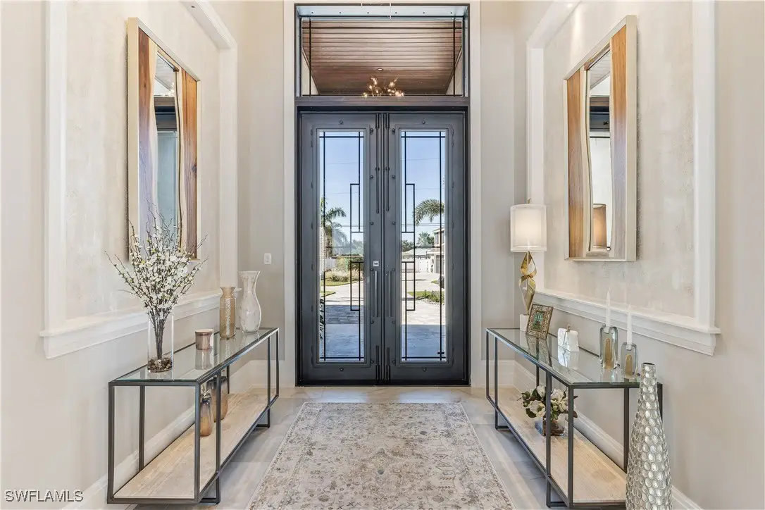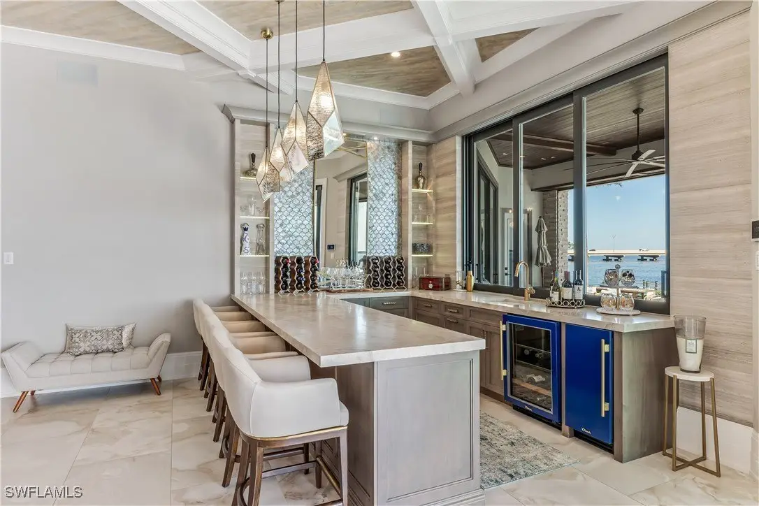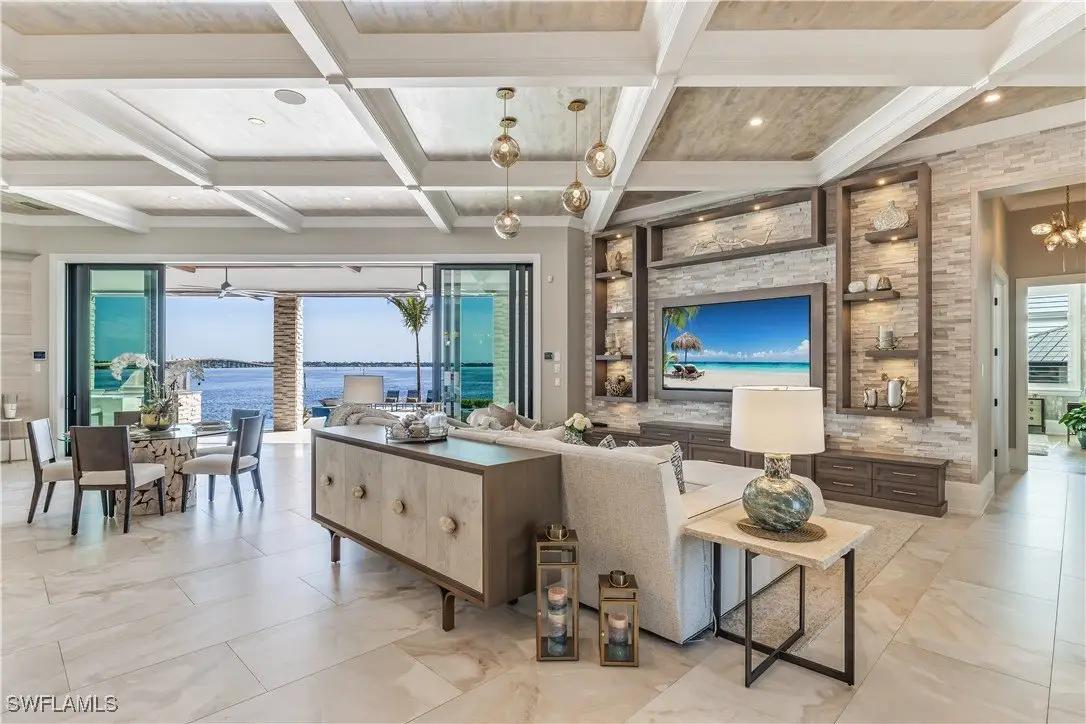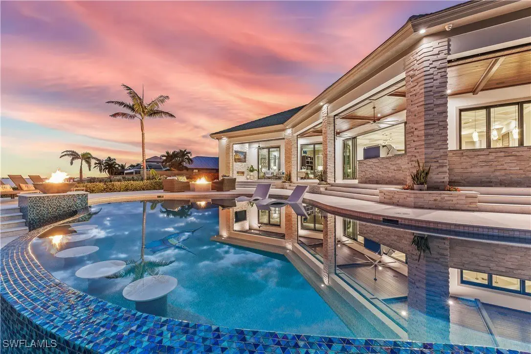Discover unparalleled sophistication in this breathtaking new construction (2023) by the renowned Koogler builder. Situated on nearly an acre of coveted riverfront property, this exceptional home boasts over 200 feet of pristine waterfrontage, offering stunning views of the picturesque bridge and serene waters. Upon entering, you’ll be welcomed by an impressive open floor plan, featuring soaring coffered ceilings and elegant tile flooring that set a warm and inviting tone. With 5 spacious bedrooms, each complete with its lavish en-suite bath, this residence perfectly balances style and comfort. The gourmet kitchen is a chef's dream, showcasing a generous island ideal for entertaining, a large walk-in butler’s pantry, a Dacor gas range with a convenient pot filler, a Ravati sink, and custom cabinetry. Two luxurious master suites provide breathtaking water views, while the primary suite is a true retreat, featuring expansive his and her closets and a spa-inspired bath with a grand walk-in steam shower and a jetted tub for two. Step outside to your outdoor paradise, where over 1,000 square feet of multi-level lanai space awaits. Relax on the shell stone paved sun deck beside the stunning saltwater heated infinity pool and spa, complete with underwater seating and a sun shelf. Host gatherings around the built-in firepit or entertain with ease using the Heston gas grill and waterfront bar sheltered under the truss. For boating enthusiasts, the expansive dock is equipped with composite decking, custom lighting, a 10,000 lb and a 25,000 lb boat lift, and a guest slip—a true haven for water lovers! Additional highlights include an oversized 4-car garage, advanced home automation, custom plantation shutters, and hurricane-impact windows and doors, ensuring luxury and peace of mind. This residence exemplifies the height of luxury living, showcasing exquisite craftsmanship and thoughtful design at every corner. Don’t miss this rare chance to claim your piece of paradise – this is the dream home you’ve been waiting for!