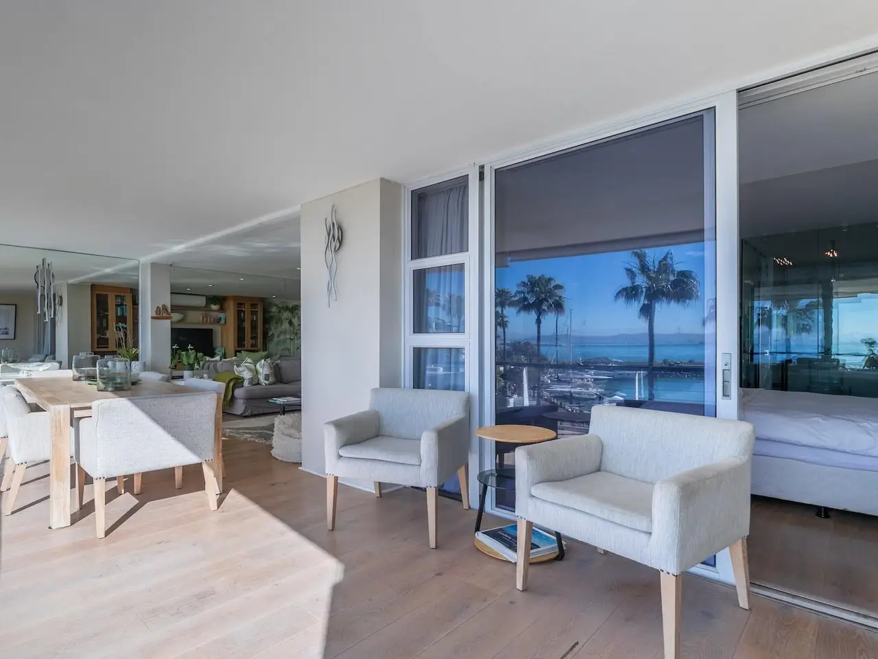 Luxurious Living Overlooking a Private Marina Welcome to The Water Club, where executive living meets unparalleled luxury. This stylish three-bedroom apartment, nestled within a prestigious security estate, offers a refined lifestyle with breathtaking ocean and private yacht marina views. Step into a spacious living space adorned with high-end finishes, showcasing meticulous attention to detail. The main bedroom is a sanctuary of comfort, featuring an en-suite bathroom for ultimate privacy. The additional two bedrooms, share a well-appointed bathroom. Residents of The Water Club enjoy access to exclusive amenities including a pristine communal pool, manicured gardens perfect for leisurely strolls, and the peace of mind provided by 24-hour security. Your convenience is further ensured with a secure undercover parking bay. Experience the epitome of luxury living with the serene backdrop of the marina and the ocean, making every day feel like a sophisticated retreat.