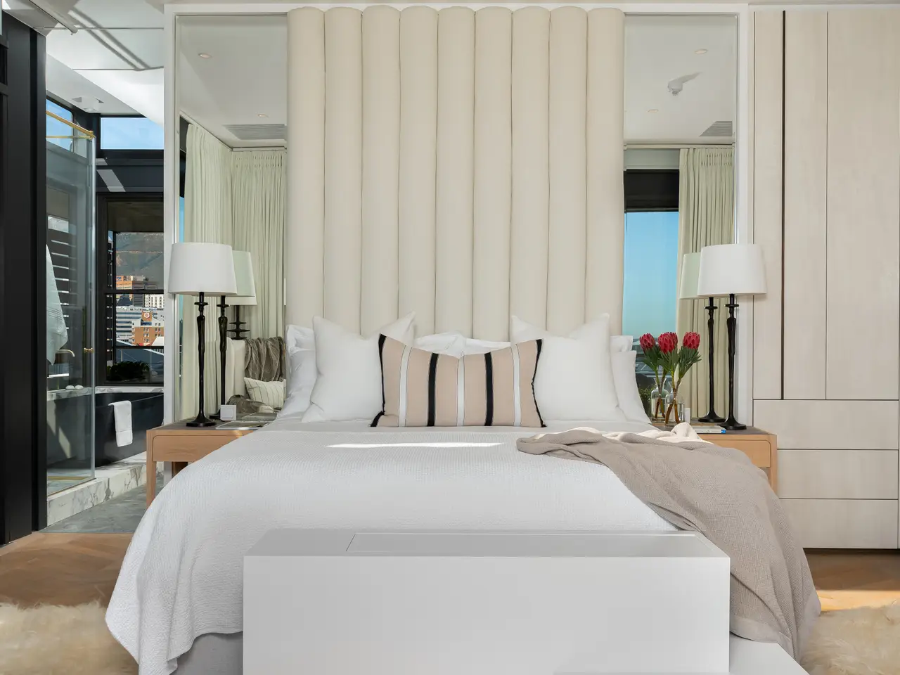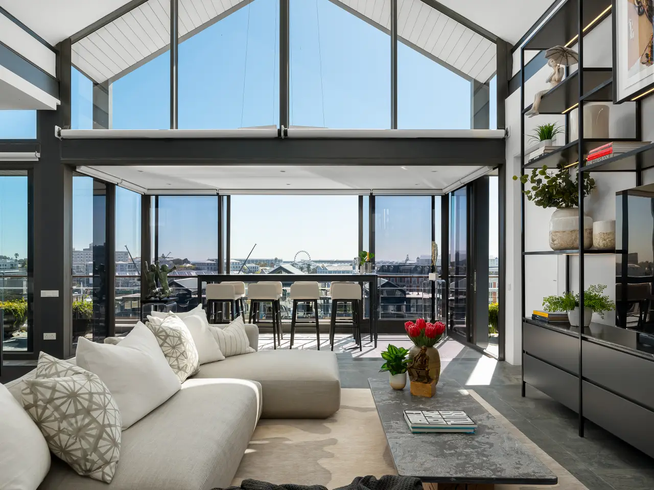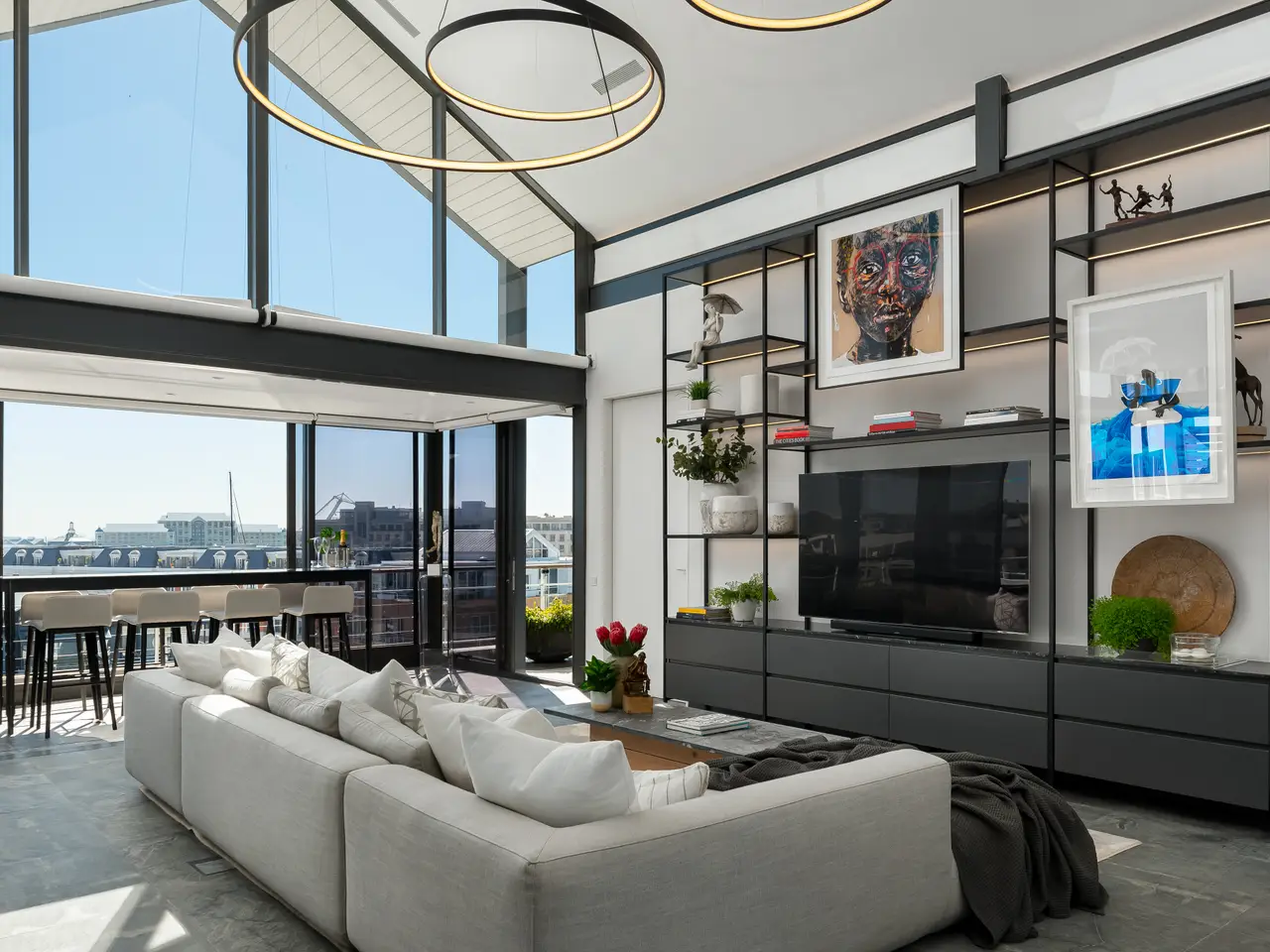 This one of a kind full floor penthouse residence is both luxurious and personal. It’s 360-degree views, exquisite detailing and double volume lend a modern feeling that balances intimacy and grandeur. The penthouse offers unparalleled views of the glittering Waterfront Marina and the city skyline including it’s most celebrated landmark, Table Mountain. Direct lift access into this magnificent home with open plan living areas centred around a designer kitchen, fully integrated with the highest quality appliances including unique gas hob, fridge / freezer, wine cooler and dish washer. Three luxurious bedrooms all en suite and each with it’s own outdoor area to relax and enjoy the endless views. Separate guest toilet. Main bedroom is north facing with solid wooden floors, mood lighting, marble vanities and shower as well as dressing area. Outdoor entertainment area with kitchenette. Extra features: Central air conditioning and heating throughout Underfloor heating Electronic blinds Study alcove Separate laundry area 3 parking bays Large storeroom Residents of the Marina Residential Estate have access to five swimming pools and a world class state-of-the-art gym. The Marina enjoys 24 hour security as well as the convenience of being within walking distance to the V & A Waterfront shopping centre, Cape Grace Hotel, One and Only and Silo district