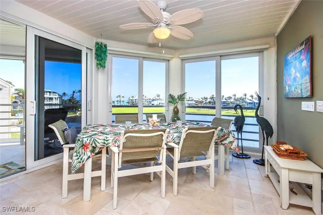 - PRICE DROP ALERT! YOUR FAVORITE-NOW FOR LESS! Indulge in breathtaking sunrise views from this luxurious 3-bed, 3-bath condominium nestled in Land's End Village at the Northern tip of Captiva. Overlooking a serene lake, golf course, and Pine Island Sound, this 2-story masterpiece boasts a penthouse primary suite offering unmatched 180-degree vistas. Relax in the expanded living area featuring a glassed-in lanai, open lanai, and a private sundeck off the primary suite. Enjoy added conveniences like an upstairs laundry room, expanded primary walk-in closet, and a jetted tub for ultimate pampering. Elevate your experience with a private elevator, two dining areas, a breakfast bar, and opulent quartz and granite countertops. Sold furnished with exceptions, this haven awaits your personal touch to transform it into your island dream home. Minor storm damage has been expertly repaired, and with no rental history, rental options are open for consideration. Don't miss out on this unparalleled opportunity!