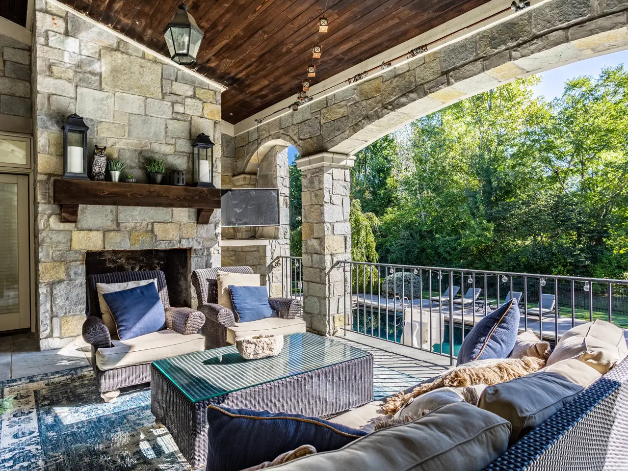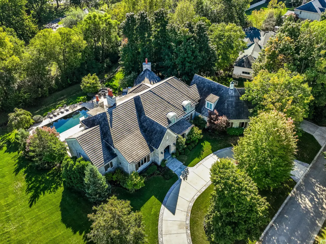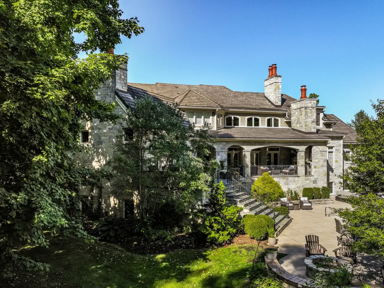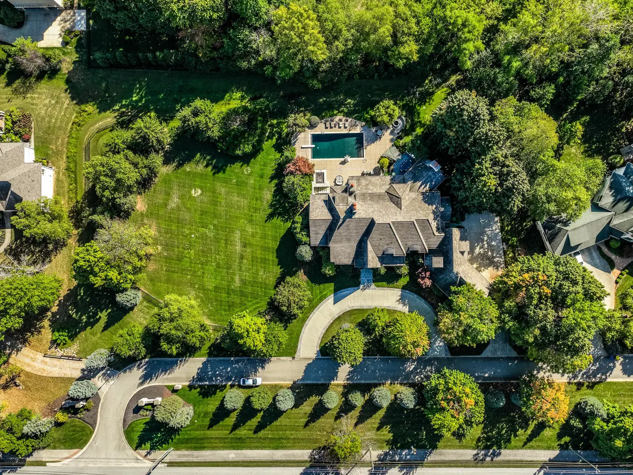 Beautifully situated on a private, lush, 2-acre fenced lot, this stunning estate offers an unparalleled lifestyle. Outdoor living is a true retreat with a 40x20 gunite pool, hot tub, and expansive veranda with fireplace and grilling center, perfect for entertaining or relaxing in privacy. Yard has ample room for tennis court or pickleball court! Inside, guests are greeted by a soaring great room with 20-foot ceiling and a stone fireplace flanked by built-ins. The world-class chef's kitchen is a true centerpiece, featuring Wolf and Sub-Zero appliances, a pizza oven, a Miele coffee center, and an office nook conveniently tucked away behind the kitchen. The adjoining family room showcases an exposed truss ceiling and beautiful stone fireplace, as well as direct access to the outdoor living spaces. The main-floor primary suite is an elegant retreat with a spa-inspired bathroom and veranda access, creating a luxurious and serene sanctuary. Upstairs hosts five spacious bedrooms with four beautifully remodeled bathrooms. The walk-out lower level is an entertainer's paradise offering every amenity imaginable including a theatre area, 24x20 built-in bar with beverage cooler and beer tap, billiard area, wine cellar, double-sided fireplace, exercise room, and home office. Completing this impressive residence is a generous 4-car garage with raised ceiling for half-court basketball.