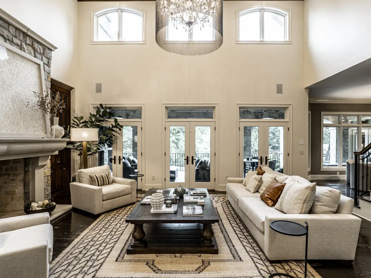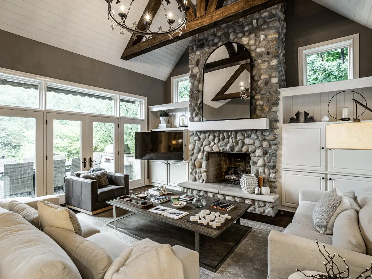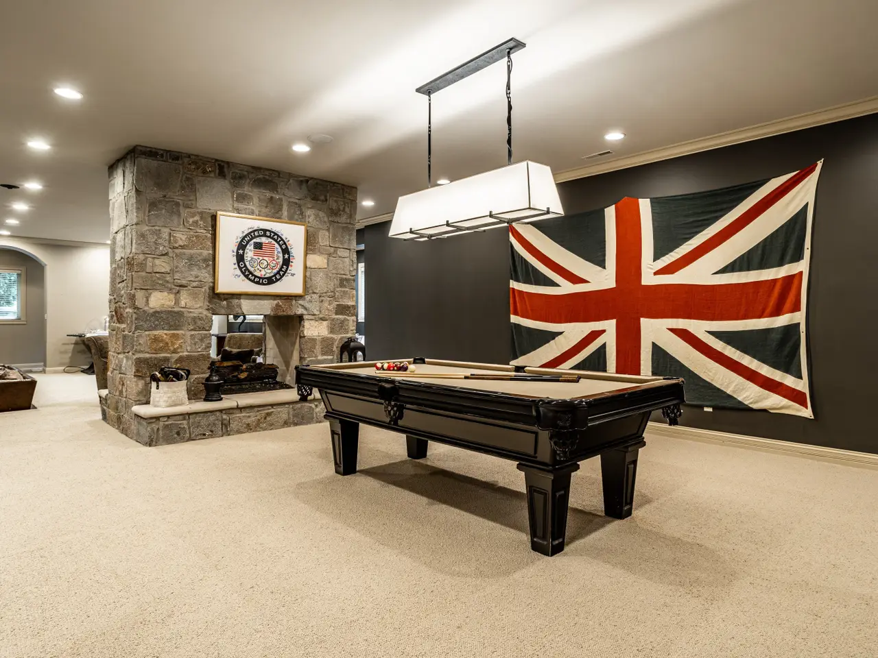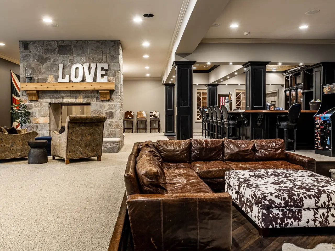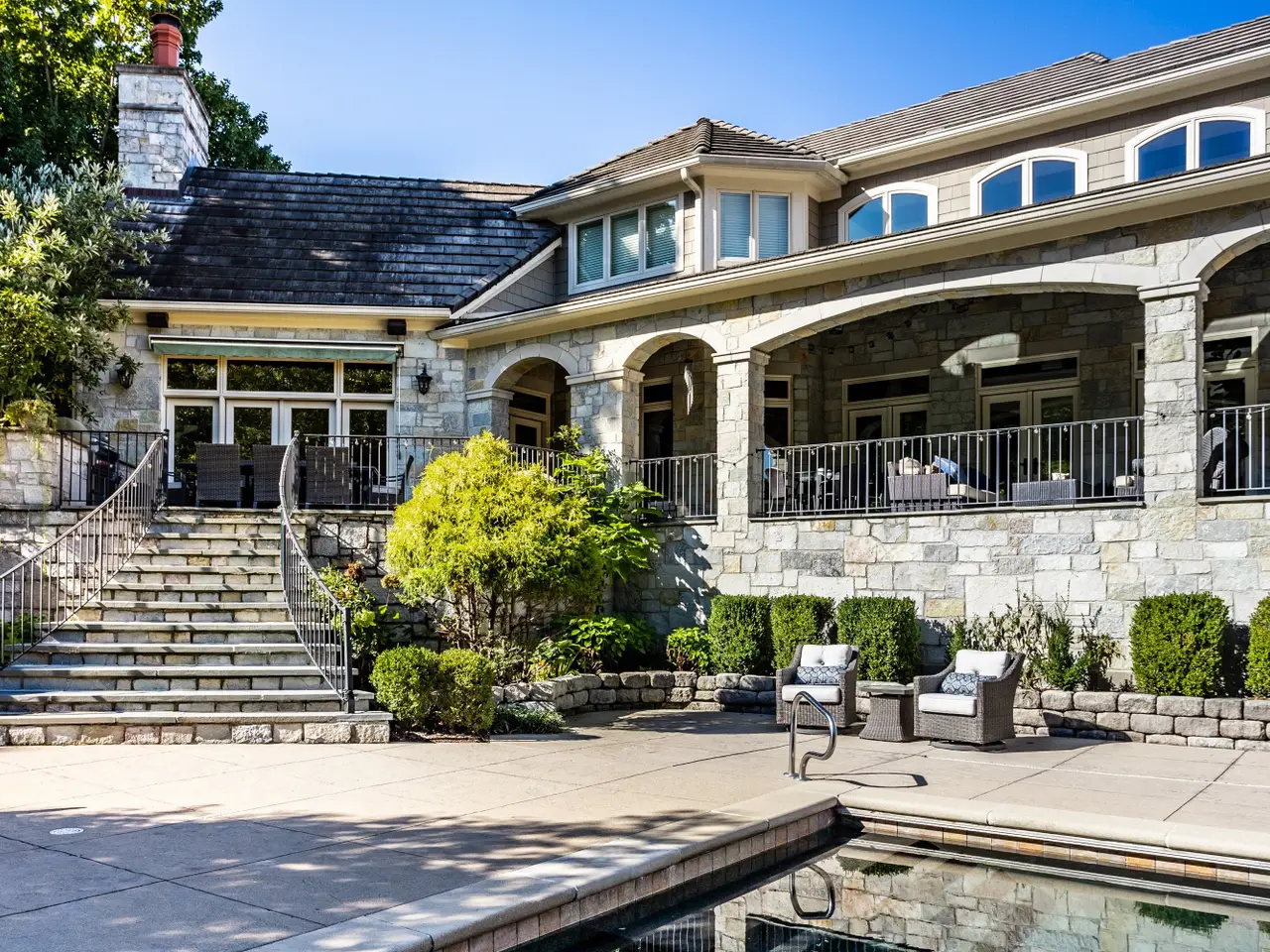 Beautifully situated on a private, lush, 2-acre fenced lot, this stunning estate offers an unparalleled lifestyle. Outdoor living is a true retreat with a 40x20 gunite pool, hot tub, and expansive veranda with fireplace and grilling center, perfect for entertaining or relaxing in privacy. Yard has ample room for tennis court or pickleball court! Inside, guests are greeted by a soaring great room with 20-foot ceiling and a stone fireplace flanked by built-ins. The world-class chef's kitchen is a true centerpiece, featuring Wolf and Sub-Zero appliances, a pizza oven, a Miele coffee center, and an office nook conveniently tucked away behind the kitchen. The adjoining family room showcases an exposed truss ceiling and beautiful stone fireplace, as well as direct access to the outdoor living spaces. The main-floor primary suite is an elegant retreat with a spa-inspired bathroom and veranda access, creating a luxurious and serene sanctuary. Upstairs hosts five spacious bedrooms with four beautifully remodeled bathrooms. The walk-out lower level is an entertainer's paradise offering every amenity imaginable including a theatre area, 24x20 built-in bar with beverage cooler and beer tap, billiard area, wine cellar, double-sided fireplace, exercise room, and home office. Completing this impressive residence is a generous 4-car garage with raised ceiling for half-court basketball.
