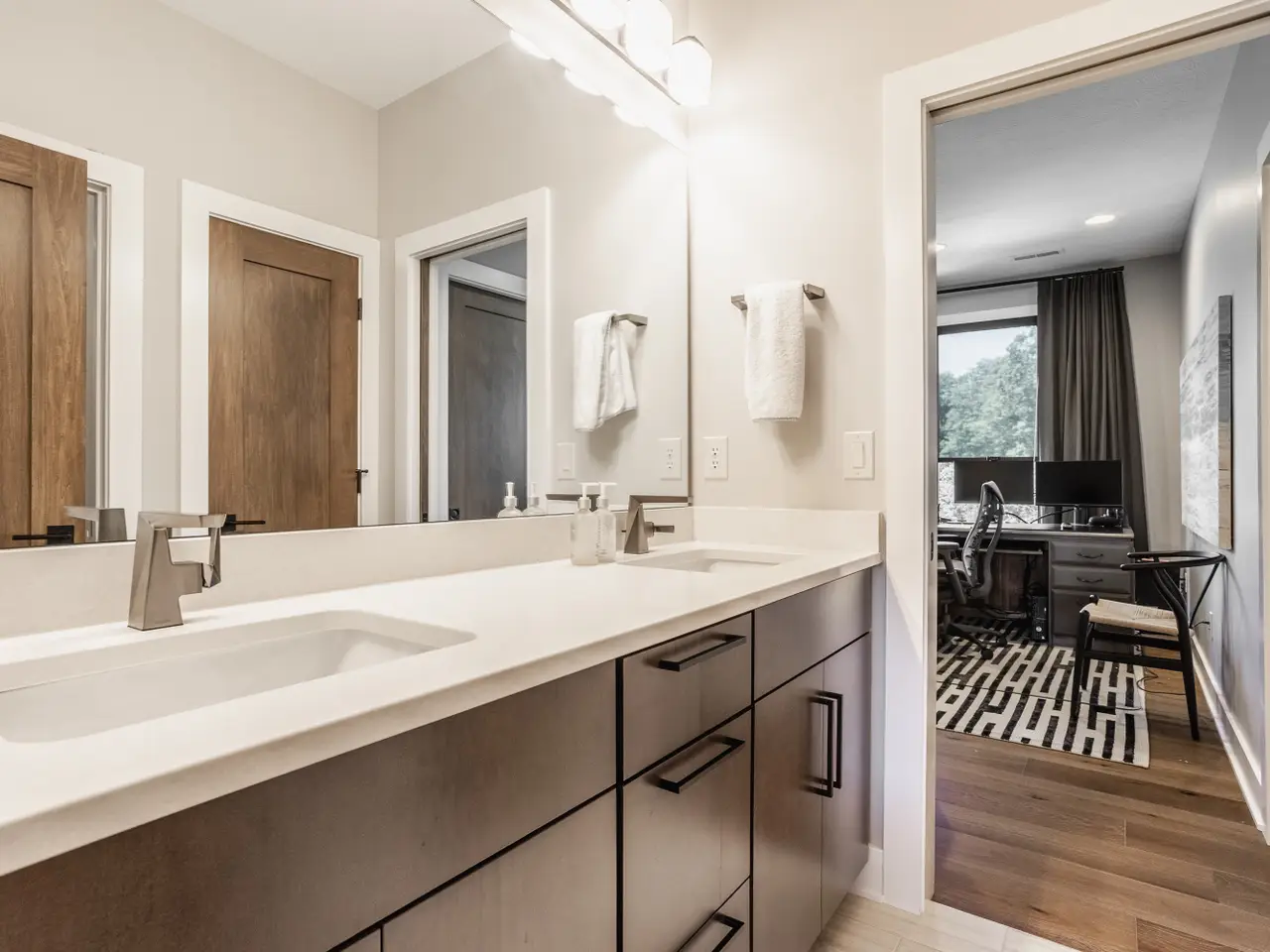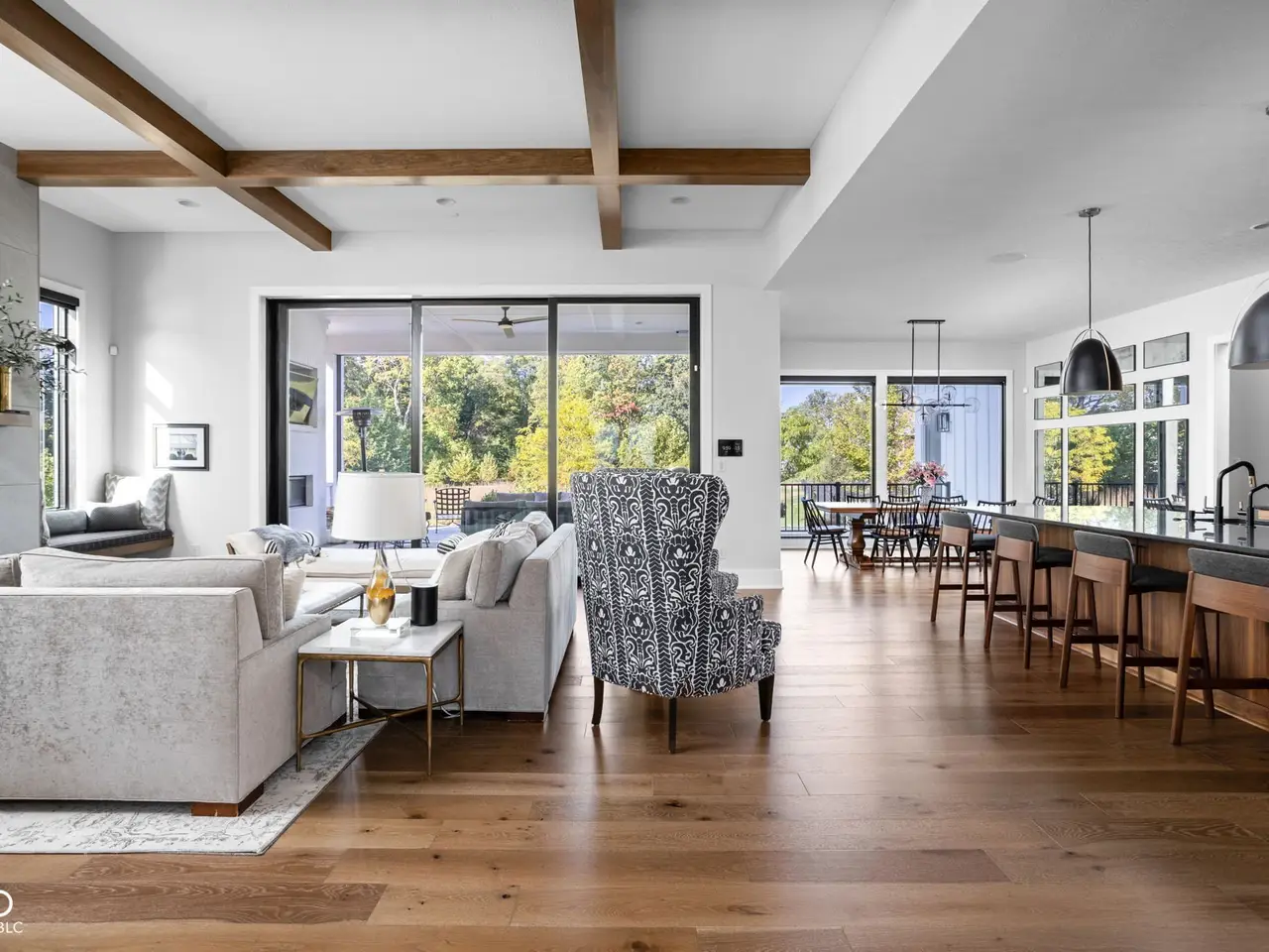 Welcome to this beautifully crafted home nestled in the prestigious Jackson's Grant neighborhood in Carmel. Known for its scenic trails, rolling landscapes, and timeless architecture. Sits on a double lot that is low-maintenance yet offers a year-round private setting with a gorgeous nature reserve as its backdrop. This meticulously maintained, like-new residence is a showstopper, featuring high-end finishes, expansive living spaces, and thoughtfully designed interiors that blend sophistication with warmth. The gourmet kitchen is equipped with a 36" Thermador four-burner gas range, Decora walnut cabinets, gorgeous ceramic tile backsplash, sleek Vermont granite countertops, Miele dishwasher, and a high-capacity RO system. Spacious main-level owner's suite with a spa-like bathroom, heated floors, coffered beam ceiling, and a custom California closet. The expansive lower level feels like main-level living, with an abundance of natural light, an entertaining space, a climate-controlled 600+ bottle wine cellar, a billiards bar, and a theater area. Professionally landscaped by Rocky Mountain, outdoor entertaining is easy with a built-in gas grill, a sunken limestone paver patio, an enclosed limestone paver porch with an auto-retractable screen, a Mezzo gas fireplace, and TV. Community amenities include resort-style pools, a clubhouse, a fitness center, tennis and pickleball courts, as well as miles of walking trails. Minutes from upscale shopping, schools, and major thoroughfares - A perfect location. Expoxy-painted 3-car garage - heated and cooled, expansive workout room with rubber flooring, TV, and Bravas speaker system. Six professional-grade WAPs for enhanced Wi-Fi, security camera and alarm system by Mulhaupts, HD remote-controlled blinds, main & upper level laundry... NO detail has been overlooked!