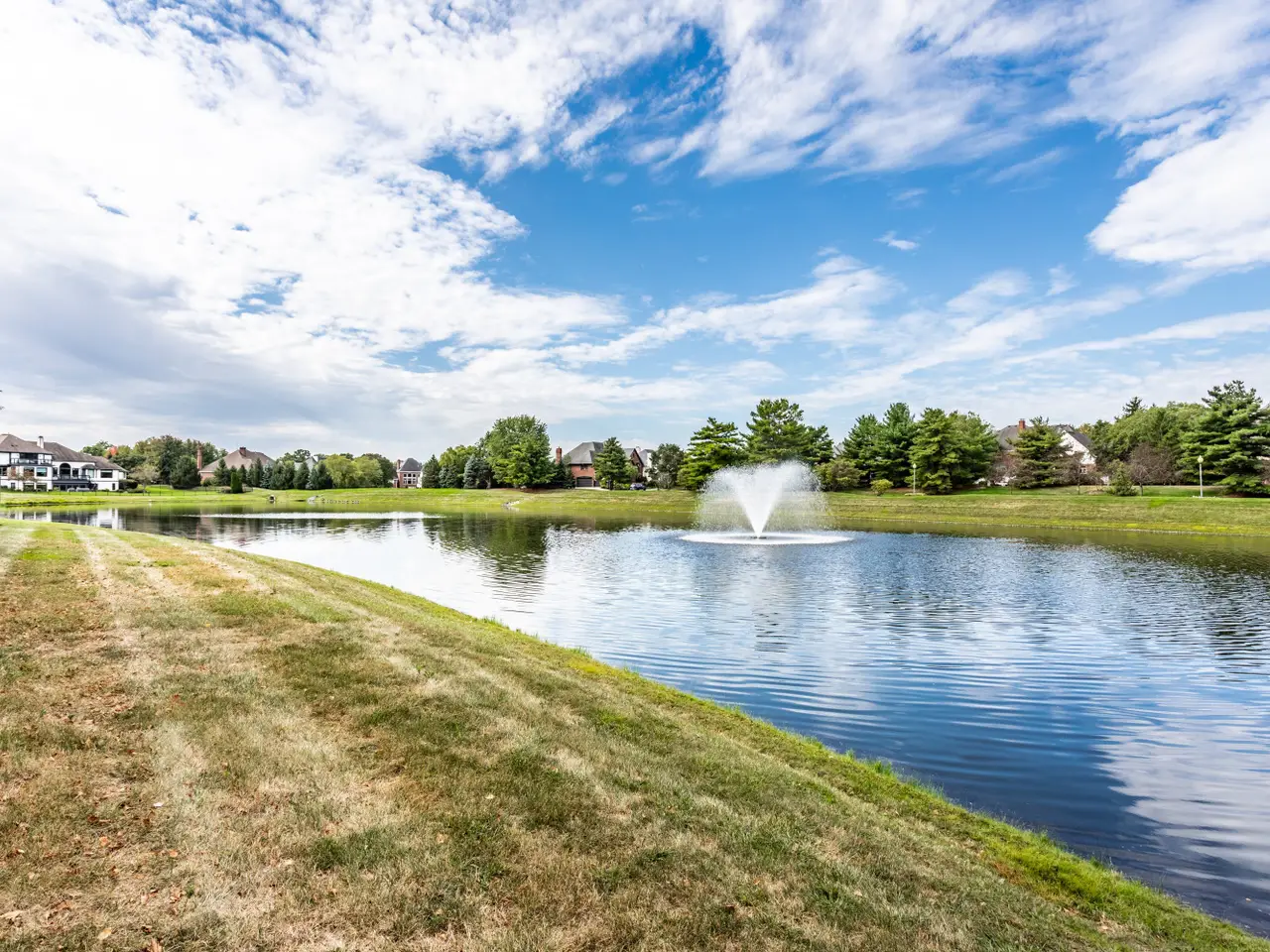Situated on a premier water-view lot overlooking the pond and fountain inside the gates of prestigious Windermere in Carmel, this expansive custom home offers both luxury and versatility. From the moment you enter, you'll notice the attention to detail and fine finishes, from gleaming hardwood floors to beautiful crown moldings. The two-story great room is filled with natural light from a wall of windows and warmed by a two-sided gas fireplace, shared with the cozy hearth room. The kitchen is well equipped for any chef, featuring a center island, ample counter and cabinet space, and a breakfast room overlooking the pond and fountain, with access to the deck and screened porch. A formal dining room provides additional entertaining space. The main-floor primary suite is a serene retreat with vaulted ceilings, a relaxing ensuite bath, and a custom walk-in closet. Upstairs, three spacious bedrooms each include an ensuite bath and a walk-in closet. The walk-out lower level is designed for both fun and function, featuring a large family room with a wood-burning fireplace, a rec room equipped with a billiards table and a wet bar, guest quarters, an exercise room, a bonus/storage room, and an additional full bath that serves the pool. Accessibility is a highlight. The home offers elevator access and handicap-friendly features, including garage and pool area ramps. Outside, the fully fenced rear yard is complete with green space and a pool featuring a new liner and cover. This one-of-a-kind home blends timeless craftsmanship with thoughtful updates, all in an exclusive gated community on one of Windermere's most desirable water-view lots overlooking the pond and fountain.