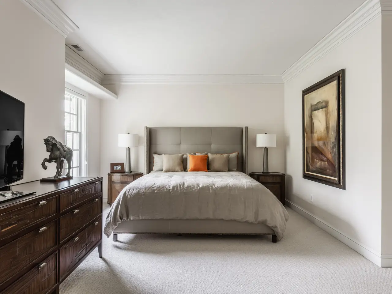 Exquisite custom-built estate on 1.84 acres of lushly landscaped grounds in the prestigious gated community of Springwood, overlooking the serene Nature Conservancy. This breathtaking home features both a 3-car attached garage and a 3-car detached garage. Inside, the grand great room welcomes you with a limestone fireplace and soaring windows that frame the park-like backyard. The formal dining room impresses with elaborate custom moldings and a hand-painted mural, while the main-level den offers a carved marble fireplace, custom built-ins, and TV niche. The main-floor primary suite is a private retreat, complete with a spa-inspired bath featuring a soaking tub, dual vanities, expansive walk-in shower, and an exceptional two-sided walk-in closet. The chef's kitchen, completely remodeled just two years ago, is a culinary masterpiece, boasting a butler's pantry, quartzite countertops, coffee bar, Wolf appliances, 6-burner gas range, built-in fridge/freezer, dual dishwashers, and additional refrigerator drawers. It flows seamlessly into the family room, featuring a limestone fireplace, custom seating, exposed truss ceiling, and stunning views of the backyard. The home also offers two washers and dryers, adding convenience to everyday living. Upstairs, discover four ensuite bedrooms, an office, and a playroom. The finished lower level offers a rec/theatre room, wine cellar, exercise room, and abundant storage. Additional highlights include an elevator and unmatched craftsmanship throughout. This one-of-a-kind estate is the epitome of sophisticated Carmel living, combining luxury, functionality, and timeless elegance.