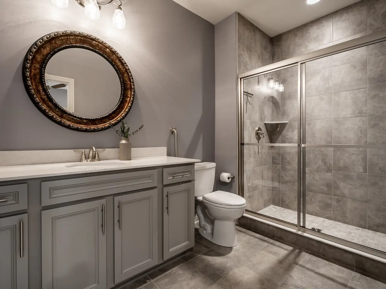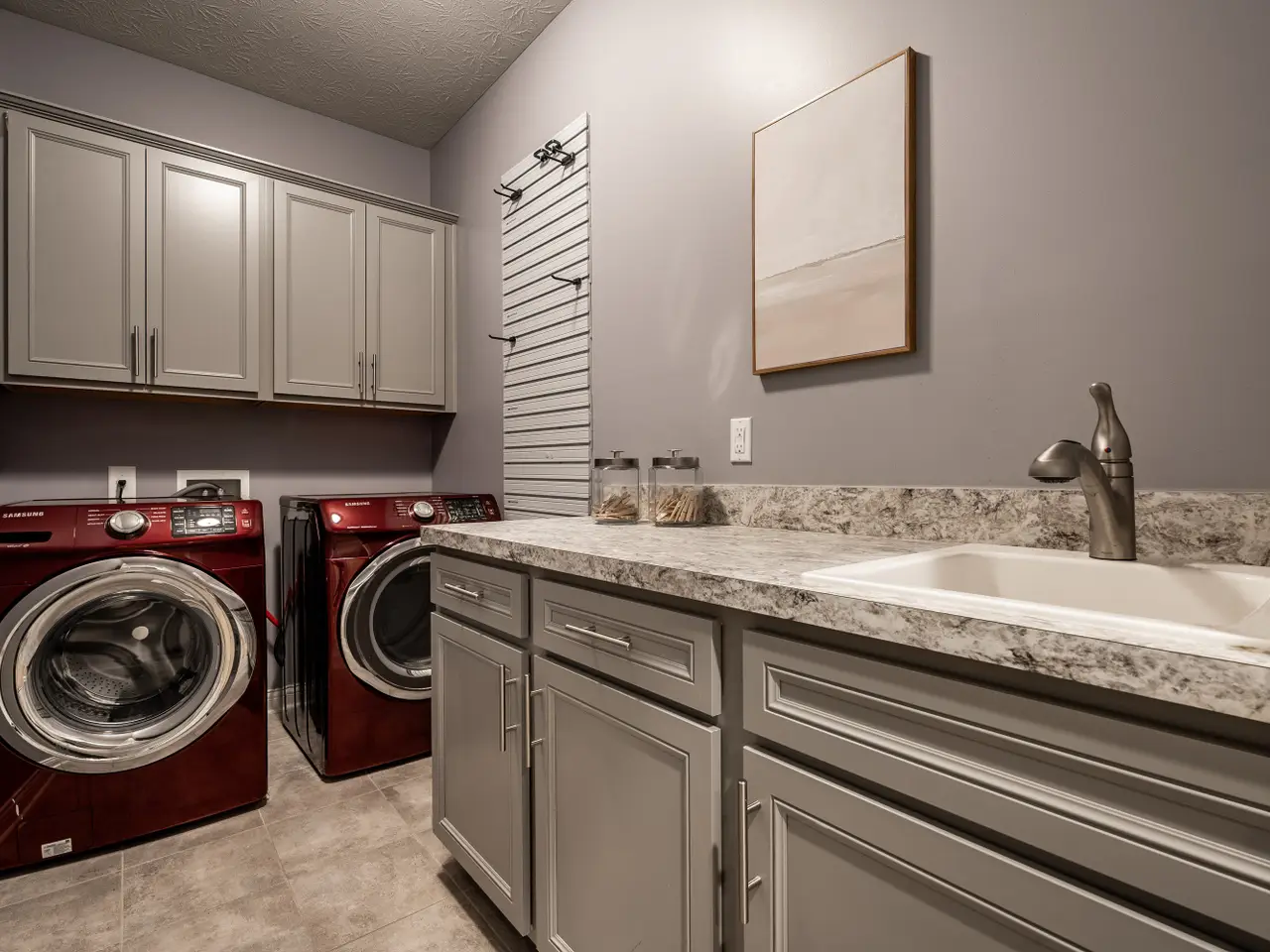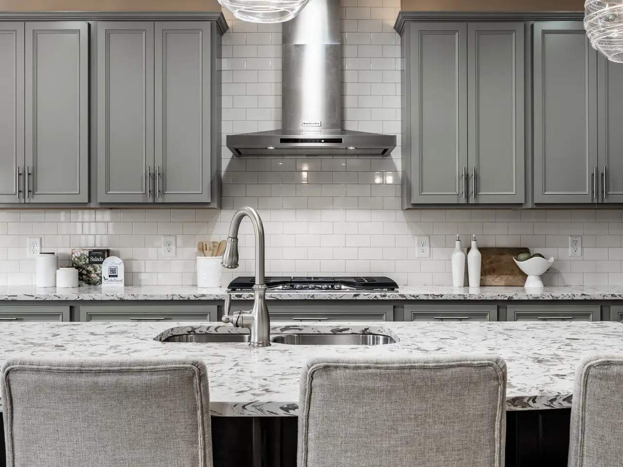 - Gleaming quartz counters & tile backsplash