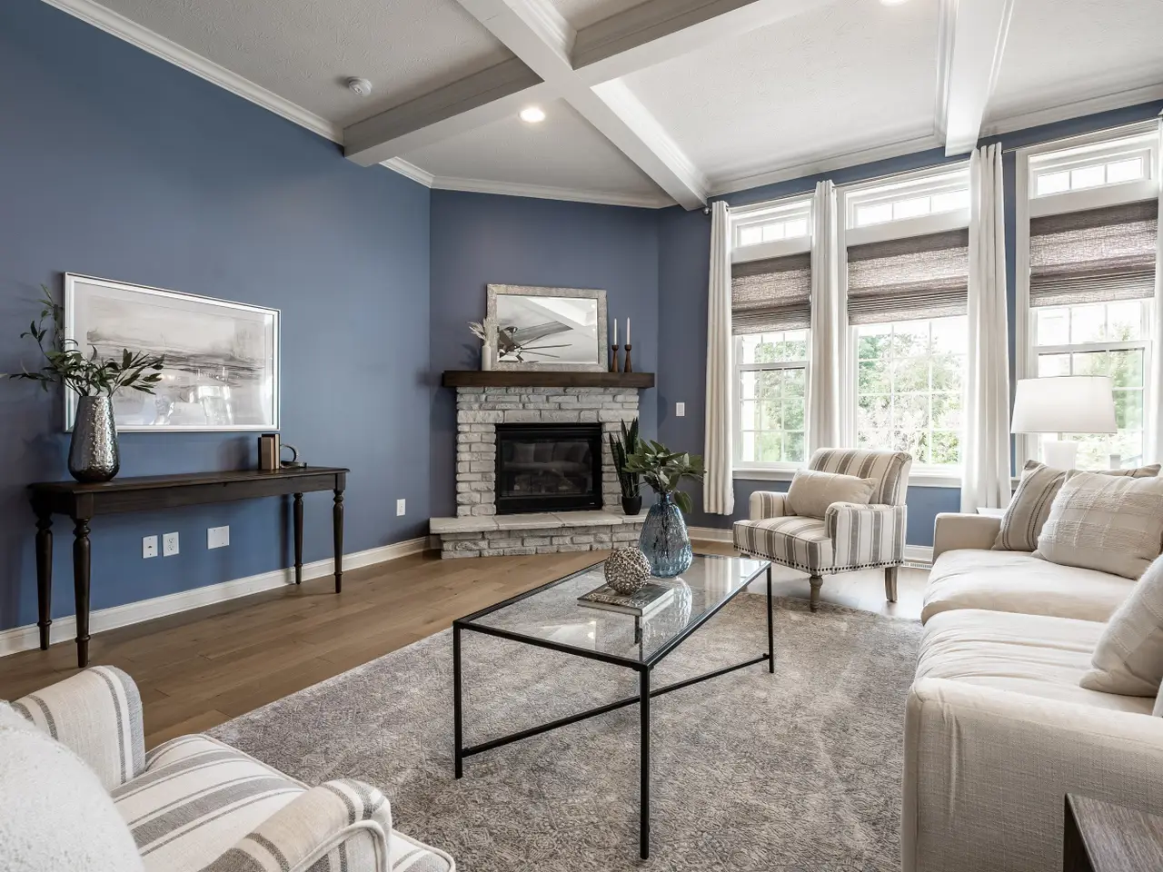 - Cozy stone gas log fireplace
