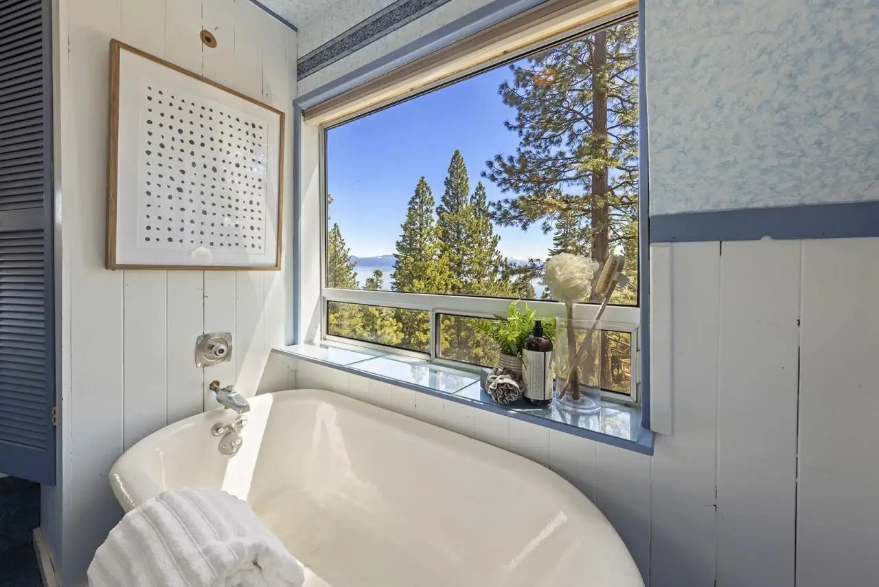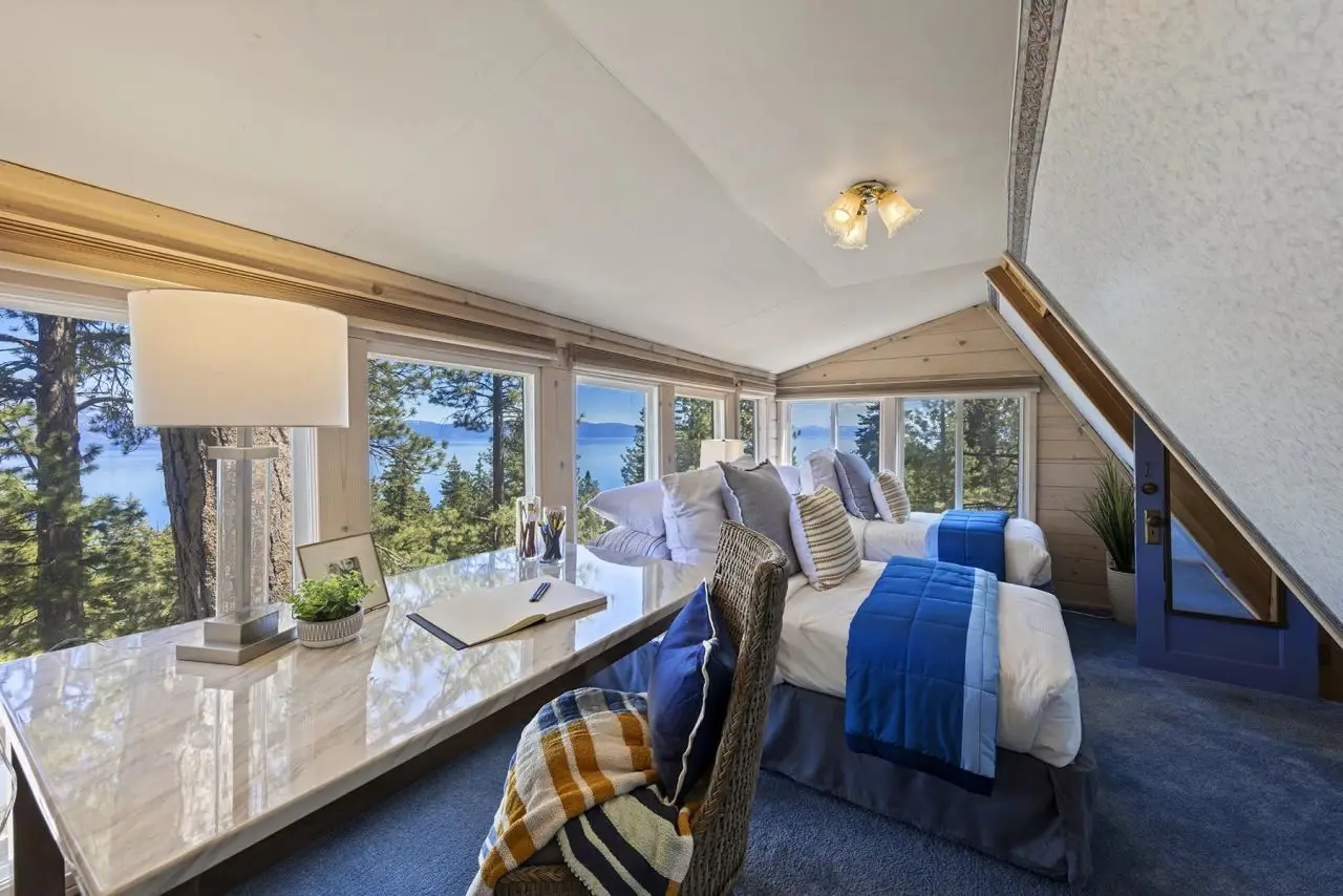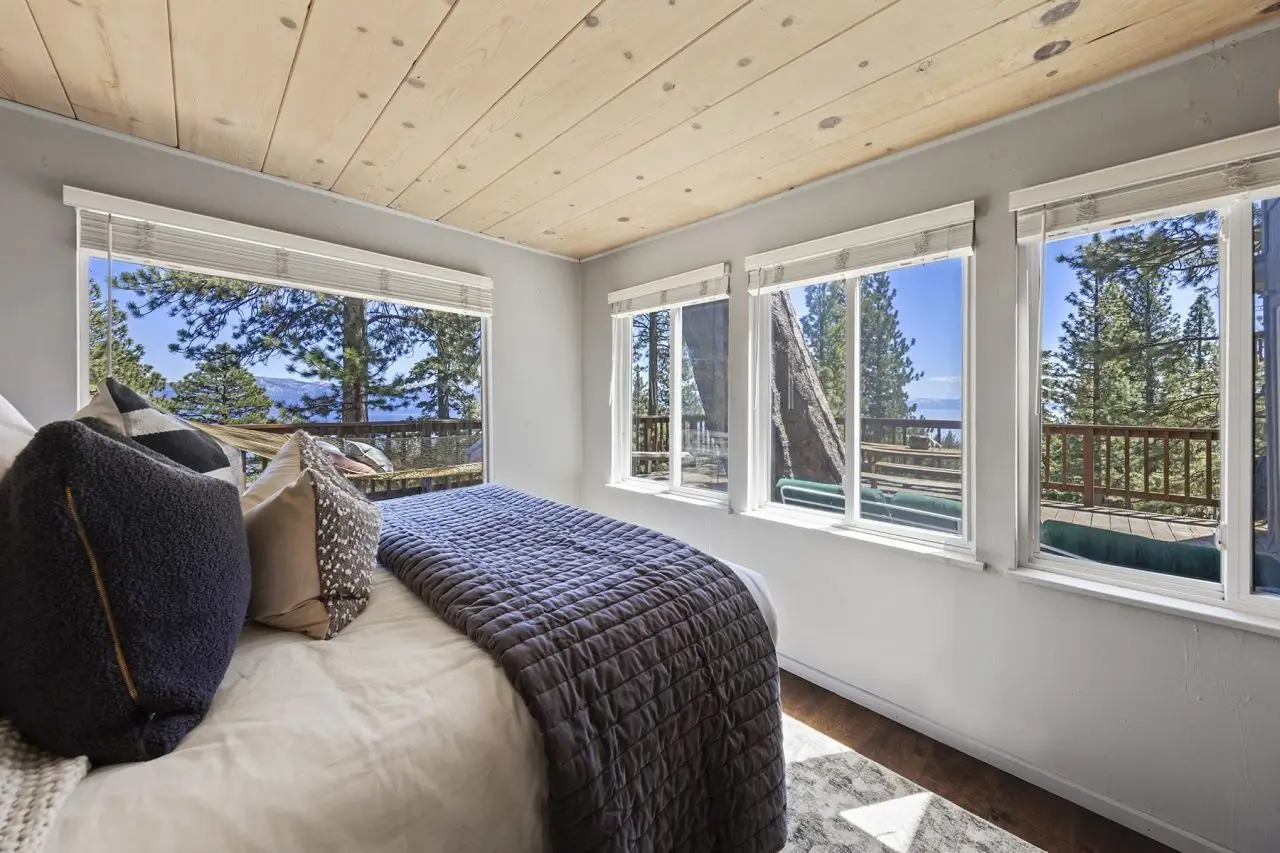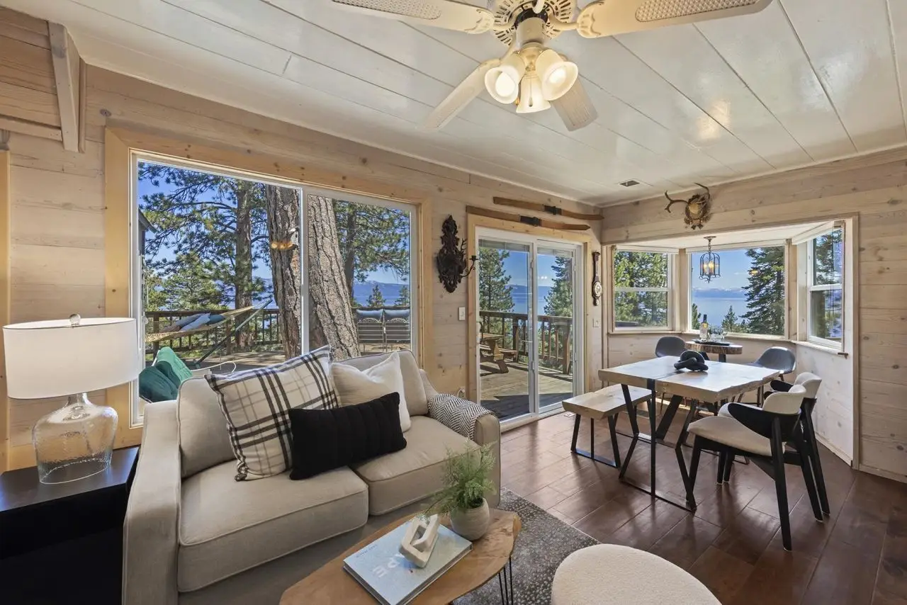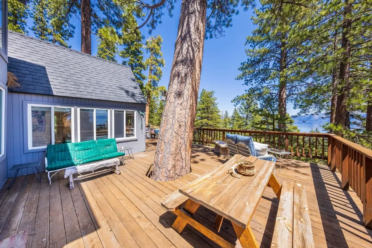 Charming 'Old Tahoe' Style Cabin with Unmatched Lake Views. Perched above the lake in the desirable Cedar Flat neighborhood, this 2-bed, 2-bath cabin is the ultimate Tahoe getaway. With stunning lake views from every room, you'll never lose sight of what brought you here. This 1,037 sq ft home is full of character, featuring a beautiful stone chimney, cozy wood-paneled interiors, and a large deck perfect for soaking in the views. Whether you're curled up by the stone fireplace or sipping your morning coffee outdoors, this cabin delivers the quintessential Tahoe experience. Upstairs, there's a bonus nook - a cozy space perfect for extra sleeping quarters, reading, or a play area. Just a quarter mile away, enjoy access to a well-maintained trail system that connects you to the Tahoe Rim Trail, Dollar Creek multi-use path, Tahoe City, Truckee, and beyond - perfect for hiking, biking, or cross-country skiing. Located in a peaceful, wooded setting with access to the Cedar Flat HOA gated private beach, pier, and buoy field, this is the perfect home base for your mountain lifestyle. Ready to make Tahoe your retreat? This is the one.