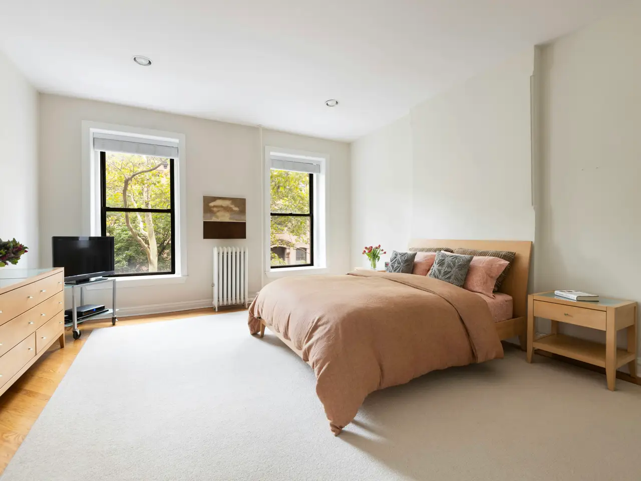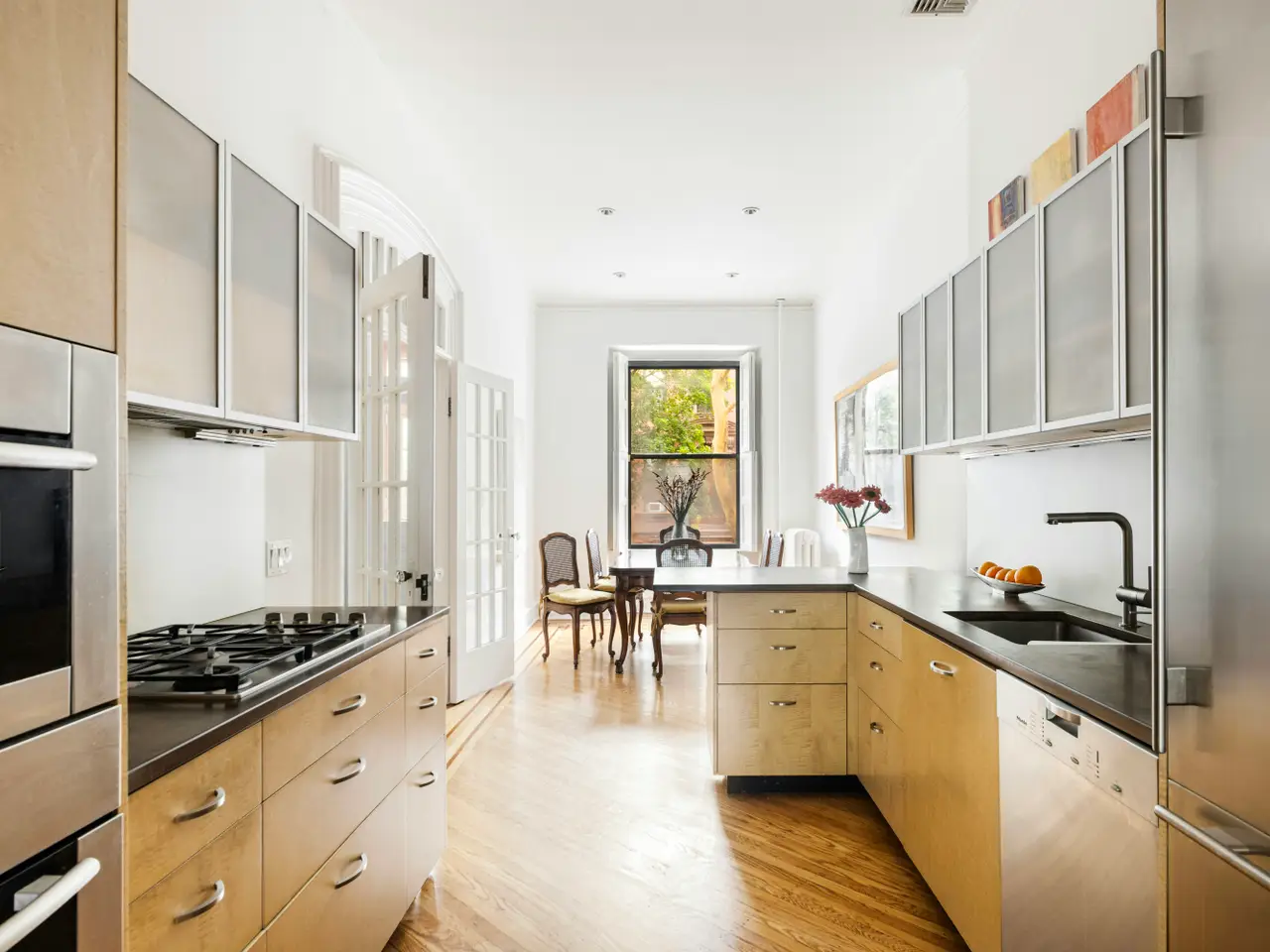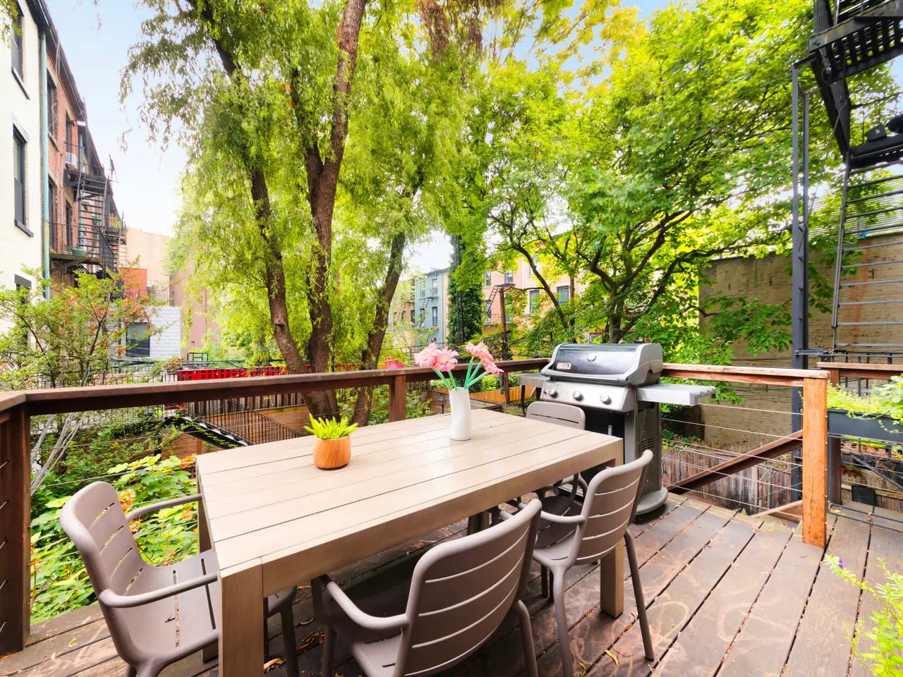 Fantastic Carroll Gardens Triplex Rental Enjoy Brooklyn townhouse living at its best in a beautiful brownstone nestled in charming Carroll Gardens. This gorgeous flex 4-5 bedroom, 2.5 bath apartment occupying the building's parlor, third, and fourth floors is available on February 1st, but you'll want to move in the moment you see it. The handsome 1899-built house exudes elegance with stunning architectural details gracing the exterior, and rests on a lovely tree-lined street near neighborhood conveniences and picturesque Carroll Park. A stately front stoop ascends to the expansive parlor level that's perfect for entertaining with an easy flow between rooms. Gleaming hardwood floors, soaring 11-foot ceilings, tasteful moldings and trim, and other stunning prewar details enhance the ambiance throughout. The gracious foyer with a handsome staircase opens at left to the sunny formal dining area and modern chef's kitchen through glass-paneled French doors. The cook can create gourmet meals in style with premium stainless steel appliances, extensive counter space, a breakfast bar, and abundant wood cabinetry with frosted glass sliding upper doors. Beyond a second arched doorway sits the large parlor/living room with a fireplace, and door to the private outdoor deck with stairs to the lower shared garden. Each level of the 2,550 +/- square foot triplex is quite generous in size and receives wonderful natural light. The third floor, with airy ceilings of nearly 10 feet, presents a spacious king-size primary bedroom accompanied by a huge walk-in closet and spa-like en-suite bath. In the rear is a powder room, and den/bedroom with a fireplace and garden views. The top/fourth floor boasts ceiling heights of up to 9'10" and offers 3 bedrooms, with lots of versatility for a home office. There's additionally a full laundry room with a sink, and a full half bath with a tub/shower. Closet space is excellent throughout the triplex. So is the location. Nearby you'll find Mazzola Bakery on Union Street as well as coffee shops, restaurants, Cobble Hill Cinemas, and the F/G subway lines. Fees: Standard Rental Application Fee: $20 First Month's Rent Security Deposit