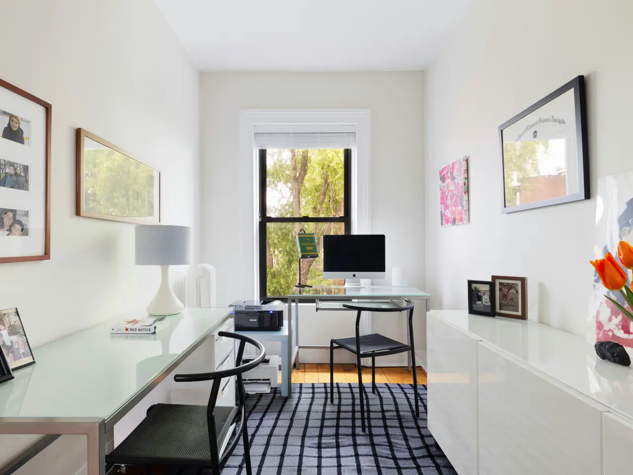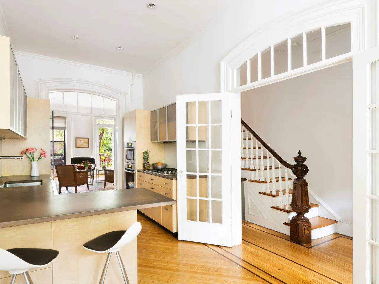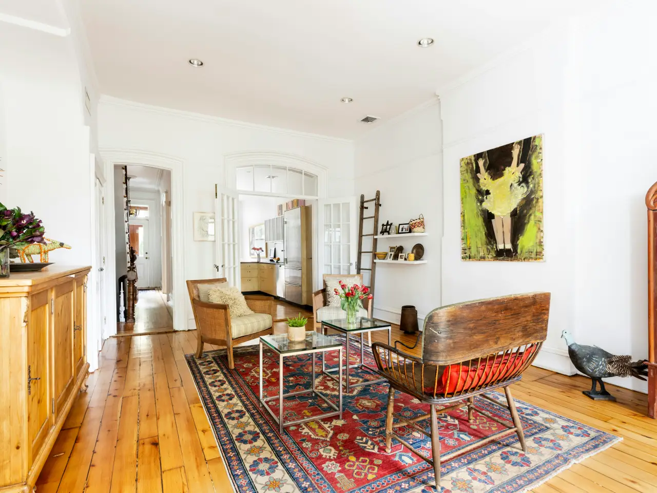 Fantastic Carroll Gardens Triplex Rental Enjoy Brooklyn townhouse living at its best in a beautiful brownstone nestled in charming Carroll Gardens. This gorgeous flex 4-5 bedroom, 2.5 bath apartment occupying the building's parlor, third, and fourth floors is available on February 1st, but you'll want to move in the moment you see it. The handsome 1899-built house exudes elegance with stunning architectural details gracing the exterior, and rests on a lovely tree-lined street near neighborhood conveniences and picturesque Carroll Park. A stately front stoop ascends to the expansive parlor level that's perfect for entertaining with an easy flow between rooms. Gleaming hardwood floors, soaring 11-foot ceilings, tasteful moldings and trim, and other stunning prewar details enhance the ambiance throughout. The gracious foyer with a handsome staircase opens at left to the sunny formal dining area and modern chef's kitchen through glass-paneled French doors. The cook can create gourmet meals in style with premium stainless steel appliances, extensive counter space, a breakfast bar, and abundant wood cabinetry with frosted glass sliding upper doors. Beyond a second arched doorway sits the large parlor/living room with a fireplace, and door to the private outdoor deck with stairs to the lower shared garden. Each level of the 2,550 +/- square foot triplex is quite generous in size and receives wonderful natural light. The third floor, with airy ceilings of nearly 10 feet, presents a spacious king-size primary bedroom accompanied by a huge walk-in closet and spa-like en-suite bath. In the rear is a powder room, and den/bedroom with a fireplace and garden views. The top/fourth floor boasts ceiling heights of up to 9'10" and offers 3 bedrooms, with lots of versatility for a home office. There's additionally a full laundry room with a sink, and a full half bath with a tub/shower. Closet space is excellent throughout the triplex. So is the location. Nearby you'll find Mazzola Bakery on Union Street as well as coffee shops, restaurants, Cobble Hill Cinemas, and the F/G subway lines. Fees: Standard Rental Application Fee: $20 First Month's Rent Security Deposit