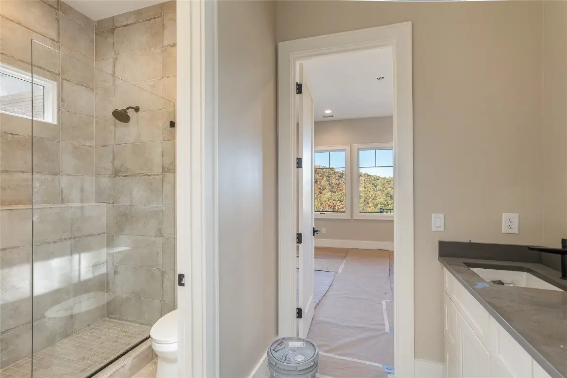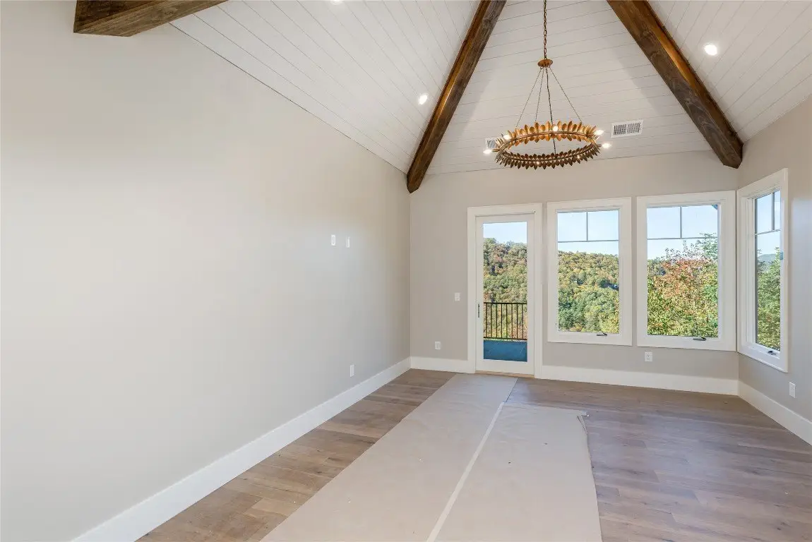 This newly constructed, custom designed residence is nearing completion in Cedar Hill, one of the Highlands Cashiers Plateau’s most desirable gated communities. Perfectly situated just minutes from both Cashiers and Sapphire, this thoughtfully crafted home offers a fresh architectural approach and a seamless floor plan designed for luxurious yet comfortable mountain living. As you arrive, curated landscaping, clean architectural lines, and a welcoming presence set the tone. Expansive windows and glass doors fill the interior with natural light and frame sweeping views across the valley, with Big Sheepcliff mountain rising as a dramatic backdrop. The main level features an open living area with soaring vaulted ceilings and a striking stone fireplace, seamlessly connected to the chef’s kitchen and adjacent gathering spaces—ideal for both entertaining and everyday living. Two distinct outdoor living areas extend the main level. A screened covered porch with a wood burning fireplace allows for year round enjoyment, while a separate covered veranda deck offers a serene space to relax and take in the cool mountain breeze. The primary suite on the main level is spacious and elegantly appointed, offering privacy, comfort, and convenience. On the lower level, a generous family room with a wet bar opens to two additional covered decks—one featuring another wood burning fireplace—creating the perfect setting for guests to gather and unwind. This level also includes three guest bedrooms and a dedicated bunk room, providing ample accommodations for extended family and friends. A two car garage adds architectural character and everyday functionality. For those seeking a brand new mountain retreat in a well established and private community, this home offers timeless design, panoramic views, and the best of life on the Highlands Cashiers Plateau.