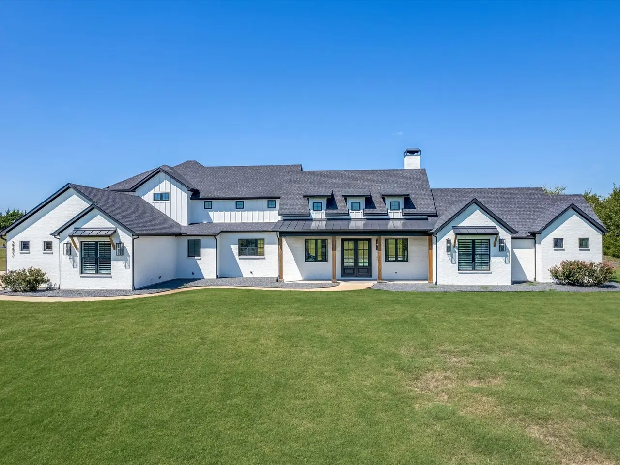 Enjoy the serenity and privacy of your own slice of a Texas ranch, all while maintaining a strong sense of community. This beautiful five-bedroom, four and a half-bath home is ideally situated on 2.2 acres. Upon entering through the double doors, you'll be greeted by a light-filled Great Room where attention to detail and design is immediately evident. The modern aesthetic of white counters and walls contrasts beautifully with black cupboards and woodwork, while warm wood floors and beams provide a traditional touch. This spacious room, large enough to accommodate additional dining, features a cozy fireplace and a wall of windows overlooking the tranquil, oasis-like backyard. The kitchen, open to the Great Room, is a chef's dream with a six-burner Wolf Range, double ovens, a built-in refrigerator and a farmhouse sink. Ample kitchen storage is further enhanced by an extra-large pantry. An attached Breakfast Room and Breakfast Bar offers plenty of space for casual dining. The first floor Primary Bedroom boasts panoramic views of and direct access to the pool area, complete with a convenient coffee bar and drink refrigerator. The Primary Bath is a luxurious retreat, featuring a free-standing tub and a double shower. Remarkably, a discreet safe room is tucked away within the Primary Suite. A dedicated study is located adjacent to the Primary Bedroom, and another first floor bedroom with an en-suite bath provides privacy for guests. The first floor is completed by a Media Room, a separate office space, and a utility room. Upstairs, you'll find a light and airy space offering three additional bedrooms, two baths, and a spacious Game Room. Step outside to discover an inviting outdoor living space with a covered patio & a built-in grill. Your private resort is complete with a tanning deck in the pool, a relaxing spa, & an elegant water feature. Finally, a three-car attached garage with additional storage provides easy access. This exceptional home is also zoned for award-winning Celina schools. Welcome to the Hills of Lone Star.