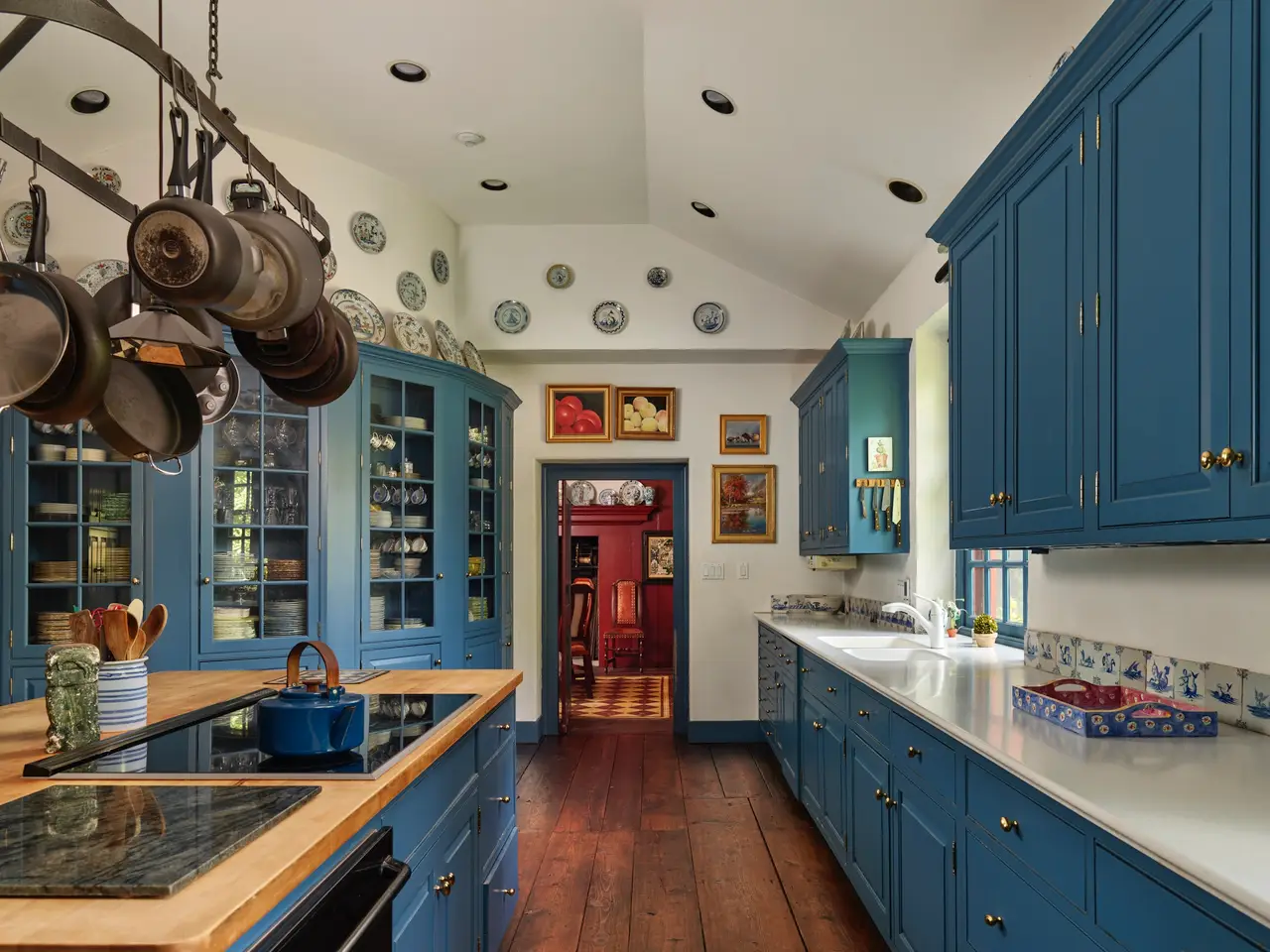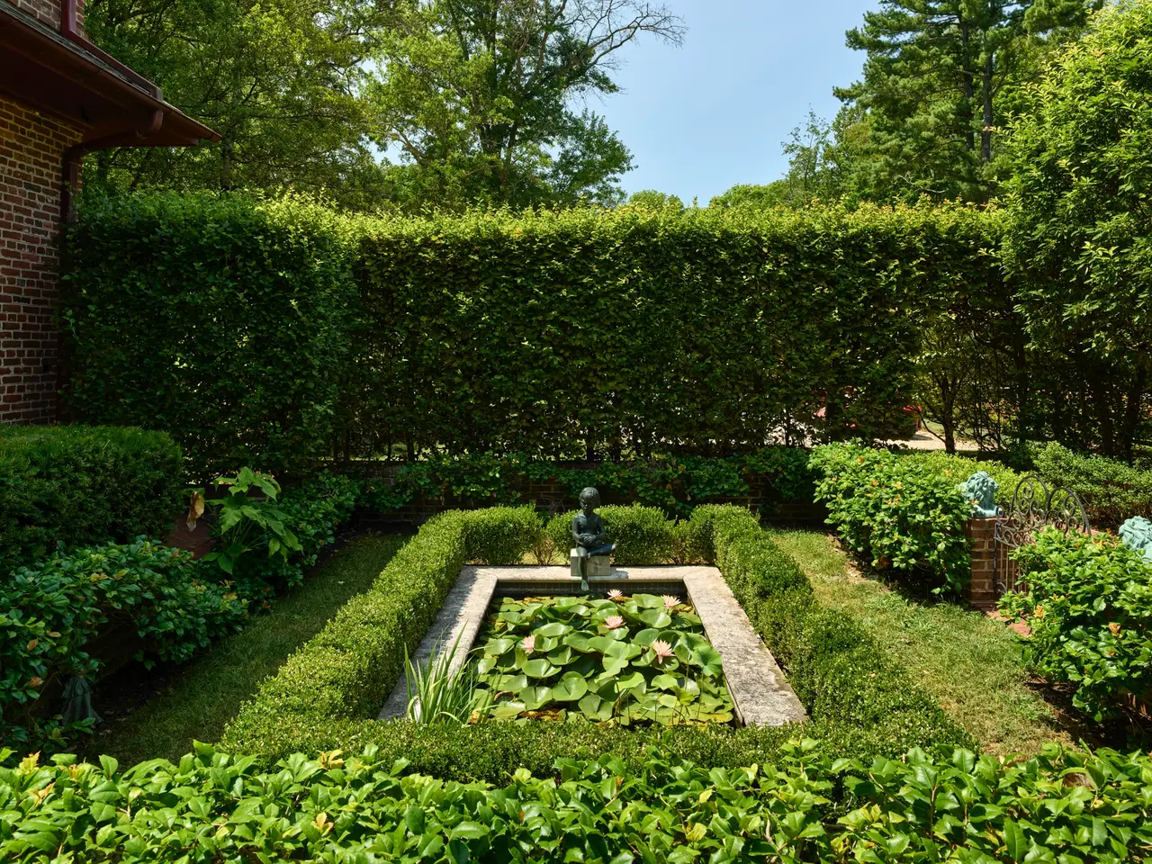 Located on 22 bucolic acres in Chester County, the William Peters House offers authentic 18th-century features with cleverly camouflaged 21st-century amenities. Originally constructed in 1750 and now on the market for the first time in 60 years, this prestigious Georgian-style home awaits the next stewards in its long and storied history. At 6,046 square feet, the three-story home offers six bedrooms and four and a half baths, a cozy library with built-in bookcases, a formal dining and living room, and an original 18th-century kitchen with a large, walk-in fireplace. A total of nine wood-burning fireplaces have been meticulously restored, and the more modern amenities, such as the multi-zoned heating and cooling systems and a full house generator, are all invisible under the house's historic interior. Original wood paneling throughout includes unusual recessed panels, restored mantels, and multiple built-in display cupboards, while the windows contain wavy, handmade glass. Outlets and registers are hidden in baseboards and light switches concealed below chair rails for an authentic 18th-century experience. In 1963, the Georgian-style house was relocated and lovingly reconstructed to exact replication by Judith and John Herdeg. John, who served on the board of Winterthur for 50 years, and Judith worked with local historical architect Albert Kruse. Listed on the National Register of Historic Places, the property includes period-appropriate gardens of native plants, planned in coordination with world-renowned Belgian landscape architect Francois Goffinet. In 1994, an orangerie was added with soaring ceilings, heated terracotta floors, a large fireplace, and 10-foot tall glass-paneled doors that allow in great swells of natural light. An ideal space for entertaining, the orangerie contains an intimate bar, French doors that open into a sunken lawn, and a brick patio with a screened-in porch overlooking alighted allee of maple trees to the north. More recent additions to the house include an expansive, renovated chef's kitchen with a large island and curved bank of cabinets offering amenities to accommodate modern living, including abundant storage. A room-sized cedar closet and an elevator with basement, first and second floor access additional modern conveniences. Despite its august provenance, the Herdegs' raised an active family who thrived in the secluded setting. Homeowners and visitors enter the property via a large, floral iron entrance gate, then proceed down the long, curved drive. An eight-foot-tall deer fence protects the native gardens and encircles some forest and a back stream. Within the fencing there is ample space for a horse barn and livestock grazing.