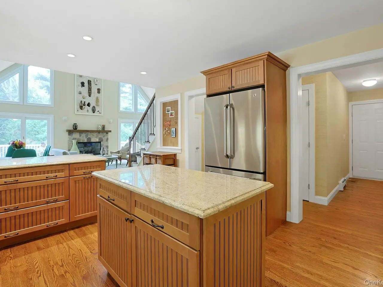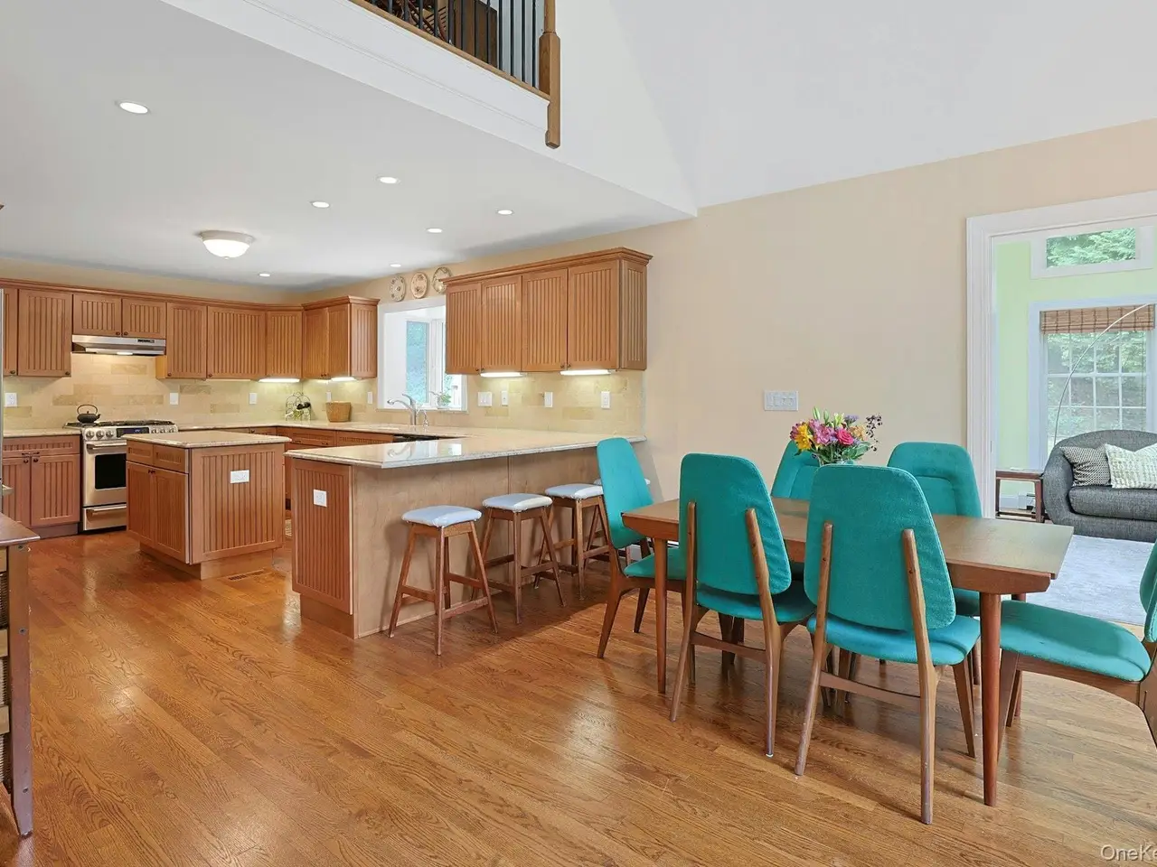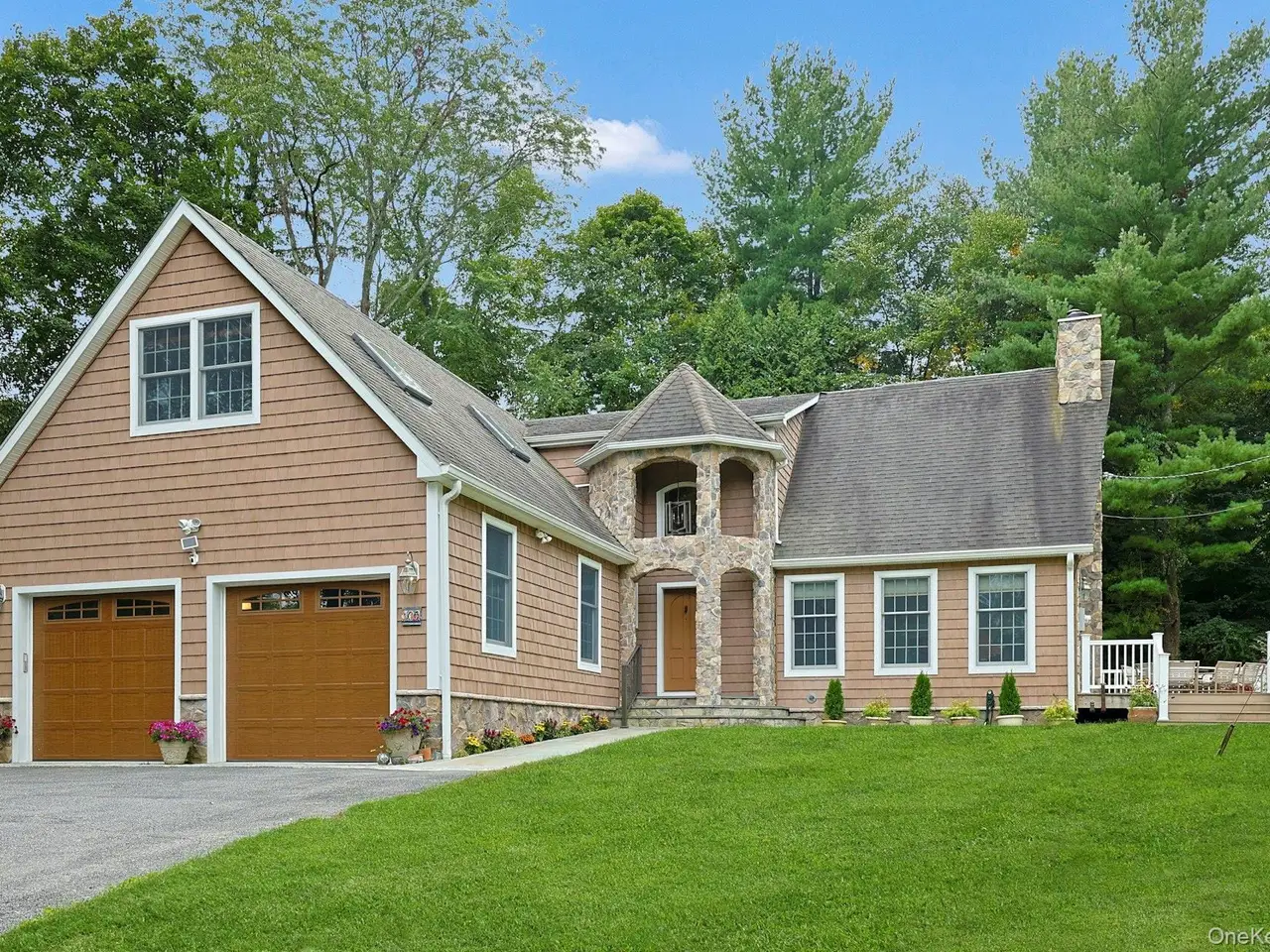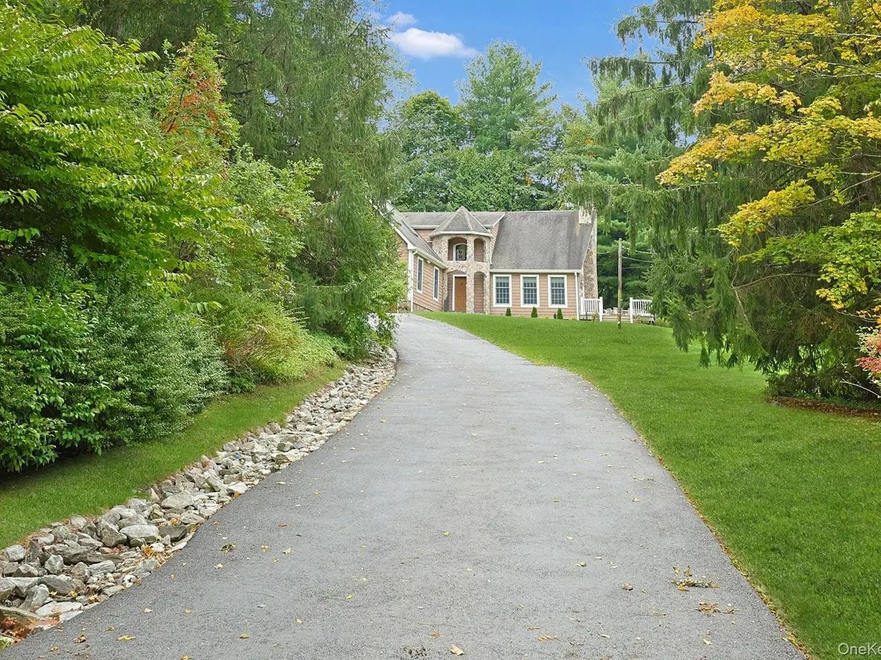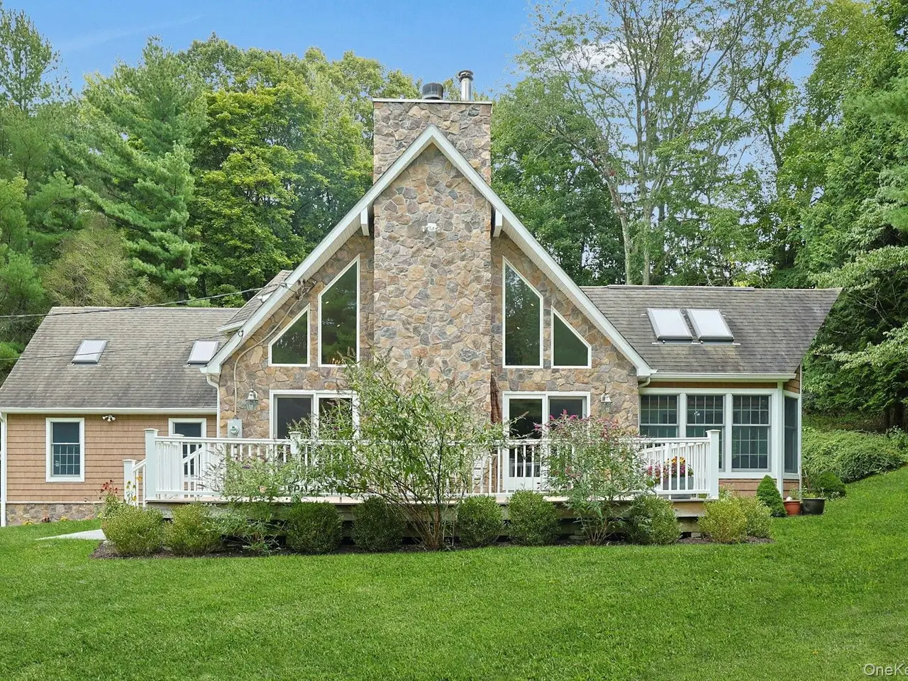 Chappaqua Schools! This immaculately maintained 3-bedroom stone and shingle Colonial is gracefully sited on nearly an acre of professionally landscaped grounds, offering exceptional privacy and tranquility.A charming stone portico welcomes you at the front entry, setting the tone for the elegant interiors that follow. Sun-drenched spaces and an open-concept layout create an inviting and seamless flow throughout. The spacious first-floor primary suite features doors leading to a large, private deckperfect for morning coffee or evening relaxation.The beautifully renovated kitchen boasts stainless steel appliances, a center island, and breakfast bar, opening to a light-filled dining area and an all-season sunroom with direct access to the deck. The dramatic living room impresses with soaring ceilings, a striking stone fireplace, and ample space for a grand pianotruly a showstopper. Ideal for effortless entertaining.Upstairs, a generous sitting area offers flexible use as a home office, playroom, or media space, along with two well-appointed bedrooms and a stylish hall bath with double vanity and stall shower.The expansive, full unfinished basement provides endless possibilities for additional living space, gym, or recreation room.A rare opportunity to enjoy refined living in a peaceful settingminutes to town, train, and award-winning Chappaqua schools.