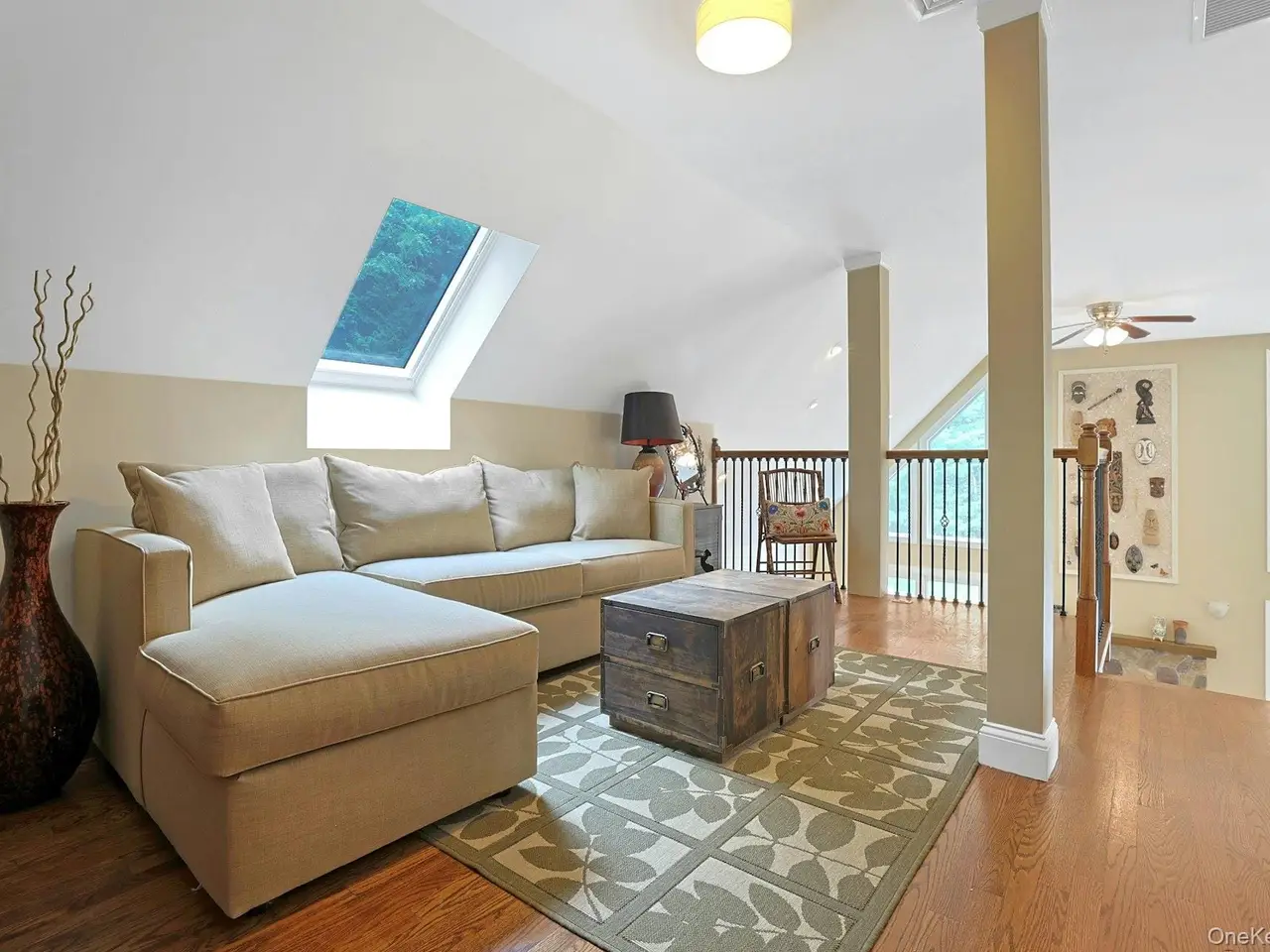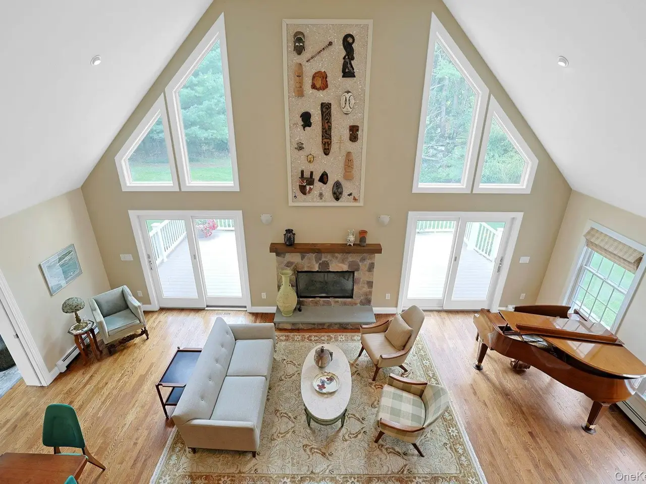 Soaring ceilings with stone fireplace