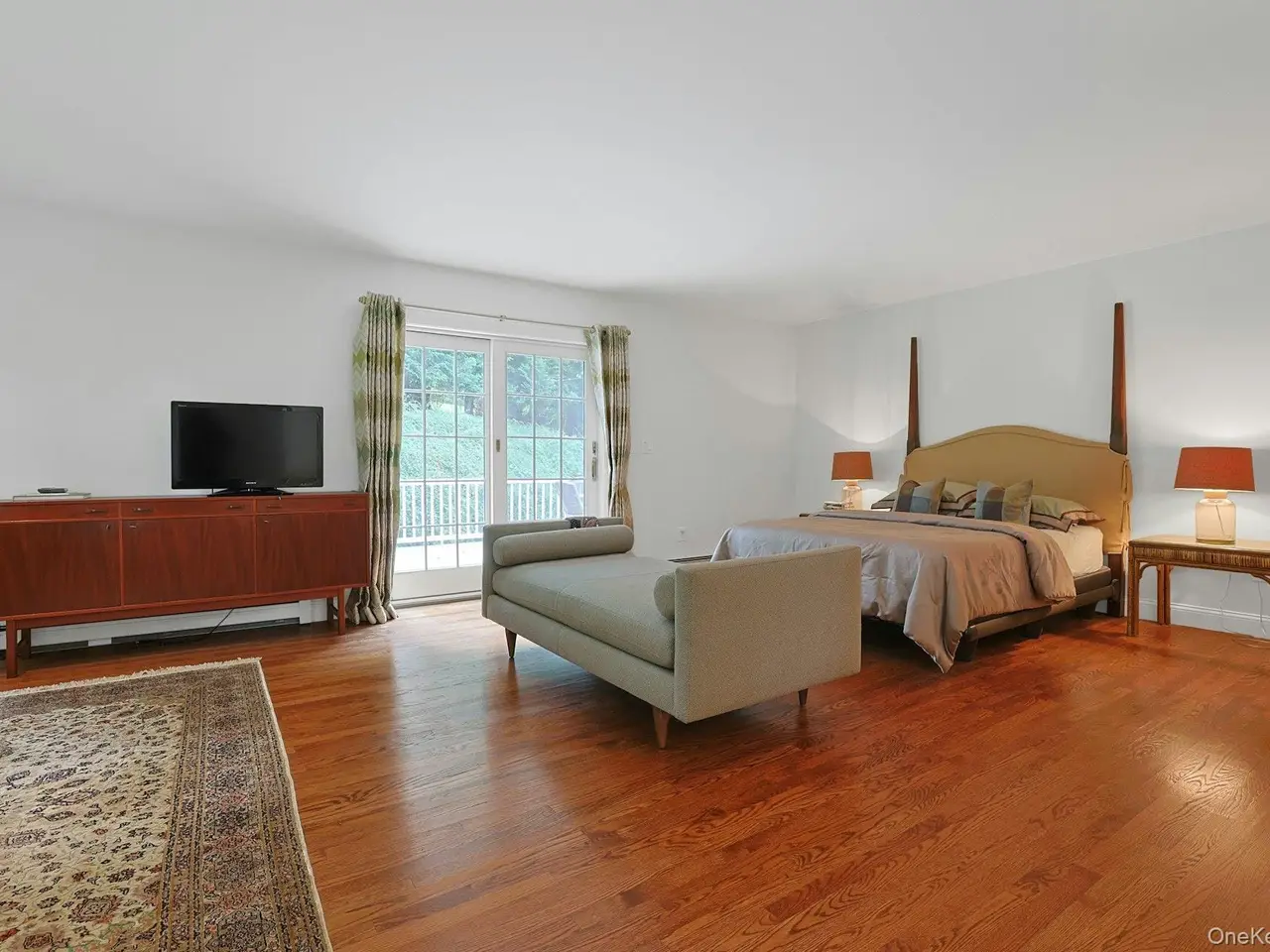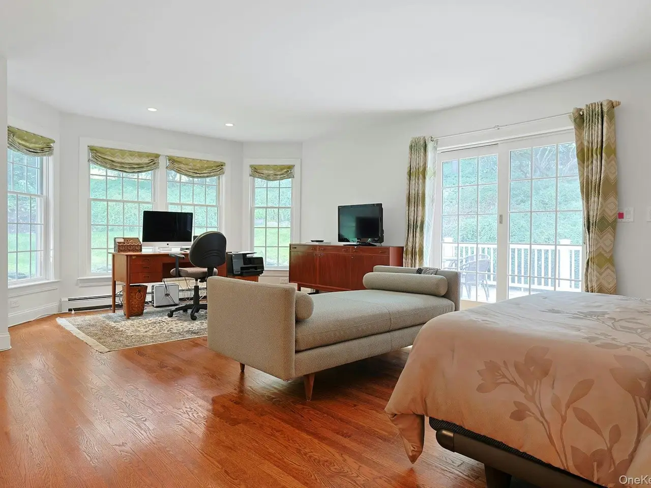 Spacious first-floor primary suite with private deck