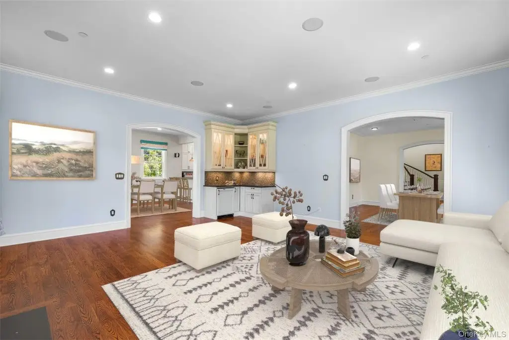 Privately gated and masterfully crafted, this exceptional custom brick estate is a showcase of timeless elegance and grand-scale living, nestled on over two acres in the heart of Chappaqua. Beyond the cobblestone apron and curbing, a sweeping driveway leads to a residence designed for both luxury and comfort, boasting soaring 10-foot ceilings, four stately fireplaces, exquisite architectural detail, and refined finishes throughout. Enter through a breathtaking grand foyer, where gleaming hardwood floors with intricate wood inlay medallion set the tone, and a dramatic three-story suspended spiral staircase anchors the home in architectural splendor. The main level is ideal for entertaining, offering a formal living room, formal dining room, an expansive family room with a custom bar, and seamless access to a private bluestone patio, perfect for indoor-outdoor gatherings. The chef's kitchen is a culinary masterpiece, featuring high-end appliances, breakfast area, butler's pantry, and dual access points to the patio. A main-floor guest/au pair suite, private office or den, and powder room complete the level. Upstairs, the serene Master Suite is a retreat unto itself, complete with a sitting area, dual walk-in closets, and a spa-like marble bath with heated towel racks, dual vanities, clawfoot soaking tub, and an oversized glass shower. Three additional generously-sized bedrooms, one with an ensuite, and a full hall bath, along with a dedicated laundry room, offer both comfort and convenience. The third floor adds a spacious game and media room, while the walk-out lower level features a gym, mudroom, recreation space, sitting area, and access to the beautifully landscaped backyard. Outside, enjoy artisan stonework, multiple patios, a gazebo, hot tub, built-in BBQ station, and lush, level grounds ideal for entertaining and play. Three heated garages, including an electric vehicle charging station, complete this extraordinary masterpiece with modern convenience and sophistication. Located just minutes from Chappaqua's charming village center, award-winning schools, fine dining, shopping, Mt. Kisco Country Club, Metro North, and major highways. This is a a rare opportunity to own one of Chappaqua's most distinguished estates, an architectural triumph of timeless sophistication and commanding presence, set within one of Westchester's most coveted communities.