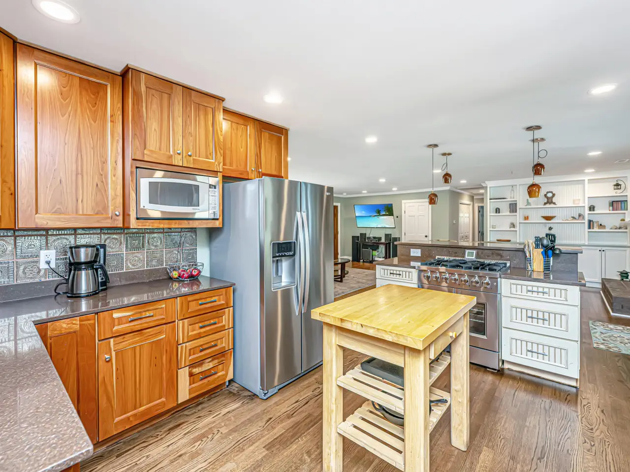 Welcome to 762 Swanson Avenue -- a beautifully renovated 5-bedroom, 4-bathroom home nestled in the highly desirable Eastwood neighborhood on James Island. This turnkey ranch-style home offers 2,705 sqft of thoughtfully updated living space on nearly half an acre. Renovated in 2023, the home features a new architectural roof, refinished hardwood floors, tile flooring, new appliances, three HVAC units, a tankless Rinnai water heater with recirculation, Encapsulated Crawlspace with dehumidifier, and a gas fireplace. Smooth vaulted ceilings and stylish fixtures create a modern yet welcoming aesthetic. The spacious layout includes a luxurious primary suite with a walk-in closet, spa-inspired bathroom featuring a soaking tub and dual shower heads, and a separate laundry area.A second ensuite bedroom offers ideal guest or in-law accommodations. Two additional bedrooms share a full bath, while a converted garage adds a large fifth bedroom with private full bath and separate entrance, perfect for a guest suite or media room. The home is completed by a detached 2.5-car garage, a newly fenced backyard with remote gate access for convenience, and a charming front porch. Take a walk to the James Island Yacht Club, South Carolina DNR, and Melton Peter Demetre Park for view of the Charleston Harbor. Located minutes from Downtown Charleston and Folly Beach, this home combines privacy, convenience, and elegant upgrades throughout. You don't want to miss this rare opportunity!! **Agent is married to homeowner**