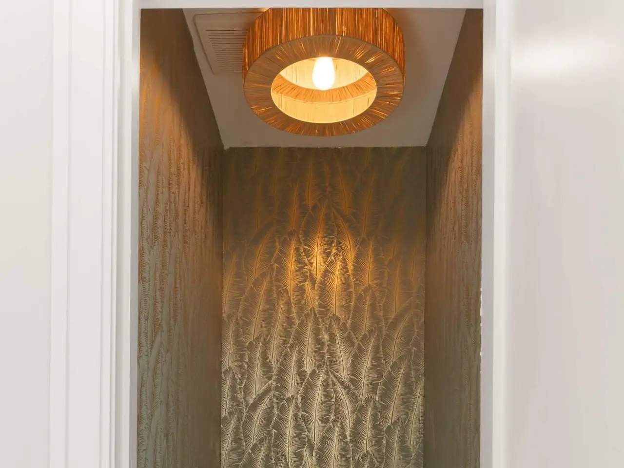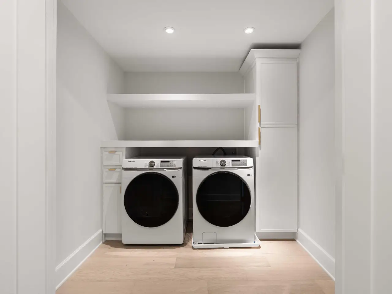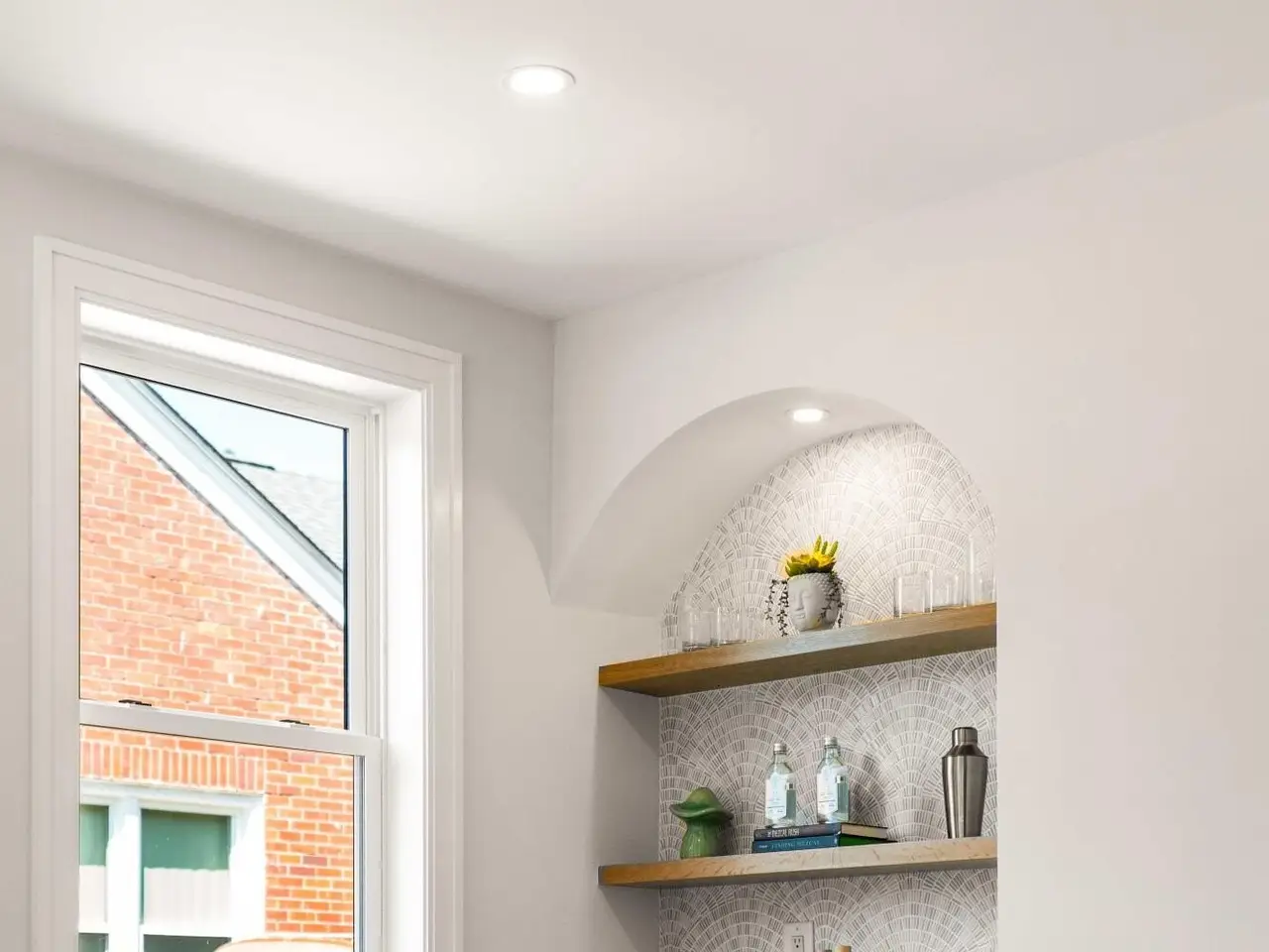 Built-in dry bar with wooden shelves