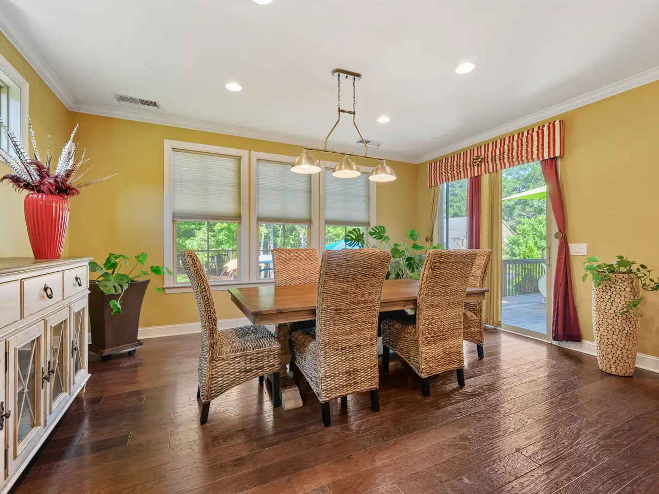 Eye-catching two-story brick with stone accent home in the gated community of Bear Creek, in the amenity-rich Palisades neighborhood, is sure to delight. A rocking chair on the front porch provides a welcoming entry. Formal dining sits just off the foyer. Hardwood floors unite the open floor plan. Gourmet kitchen features oversized prep island, extensive granite countertops, gas cooktop and two wall ovens. The extended breakfast area is perfect for casual meals. The great room has lots of natural light, a gas fireplace and opens onto the outdoor living space with expansive deck overlooking patio and serene backyard. The primary suite is nestled in the rear of the home and provides dual closets, dual vanities, a soaking tub and a glass-enclosed shower. Upstairs, 3 spacious bedrooms w/walk in closets share a hall bath and a bonus room. Plenty of walk-in attic storage space. Resort-style amenities include a private residence club, outdoor pool, walking trails and optional country club membership.