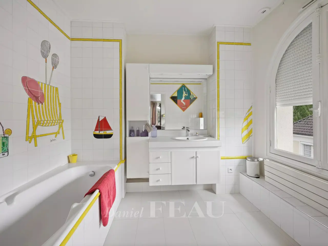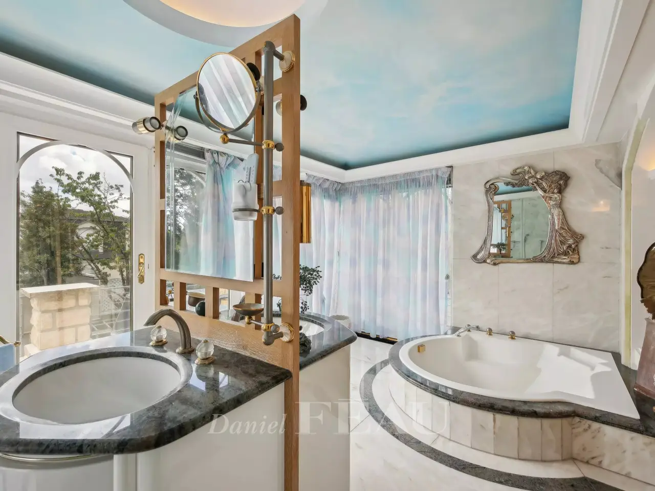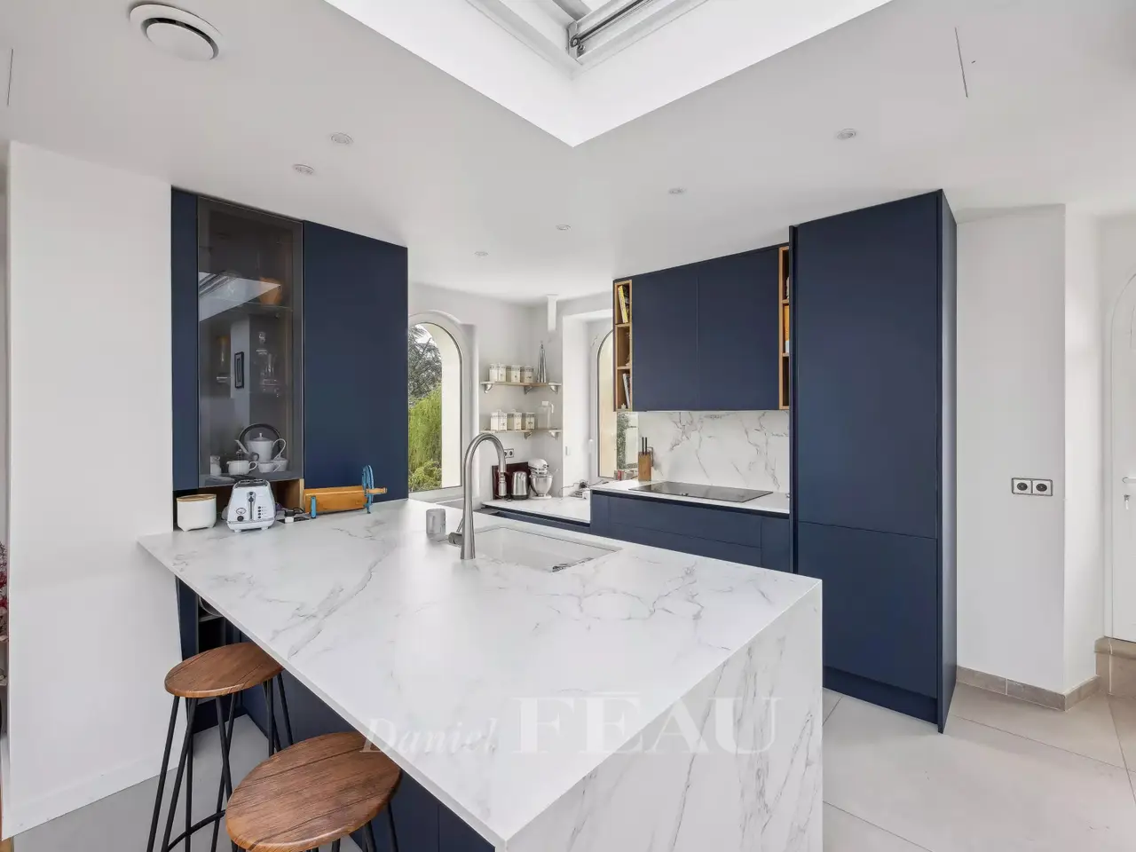This exceptional 614 sqm mid 20th century property nestled in a cocoon of leafy greenery and benefiting from a landscaped garden is located in the sought-after Domaine de la Prairie d'Aulnay residence on the edge of the Parc de Sceaux and a few minutes from the station. 437 sqm of living space includes a spacious living/reception room with a dining room in a veranda bathed in sunshine, a kitchen with dining facilities, a spacious study and a bathroom. The 1st floor comprises two spacious suites with bath/shower rooms and a south-facing terrace. An entirely renovated split-level and self-contained loft-style apartment includes a spacious living/reception room, a dining room and open-plan kitchen opening onto a terrace, three bedrooms including a master suite with a bathroom and dressing room, and a second bathroom. Ample fitted storage space. The garden-level comprises a self-contained studio apartment. With an indoor swimming pool partially opening onto the exterior, a terrace, a caretaker’s lodge, a sauna with a shower, a utility room, a boiler room and four parking spaces. With easy access to the trunk roads and Orly Airport.