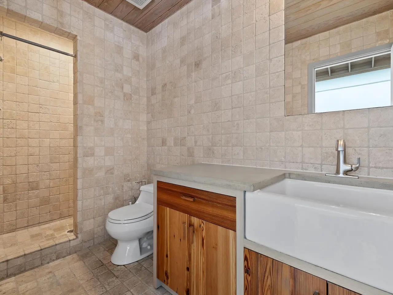 An intimate, European-inspired courtyard connects the front building with the rear studio. This courtyard features beautiful stonework as well as a mosaic mural covering the entire south wall. These mosaics, and others interspersed throughout the property, are originals created by the owners. This central space is perfect for quiet reflection or big parties (but the adjoining catering kitchen encourages entertaining)