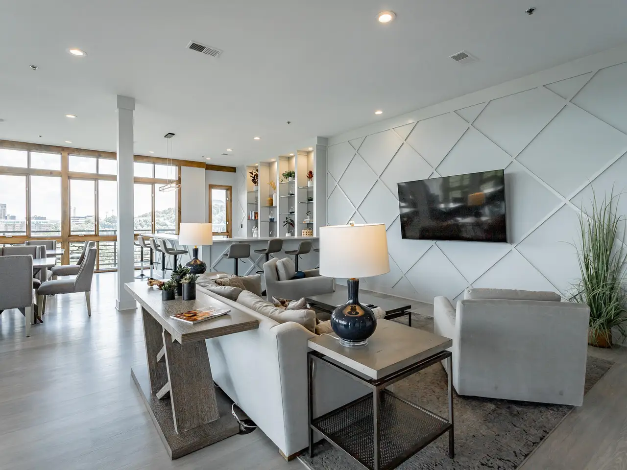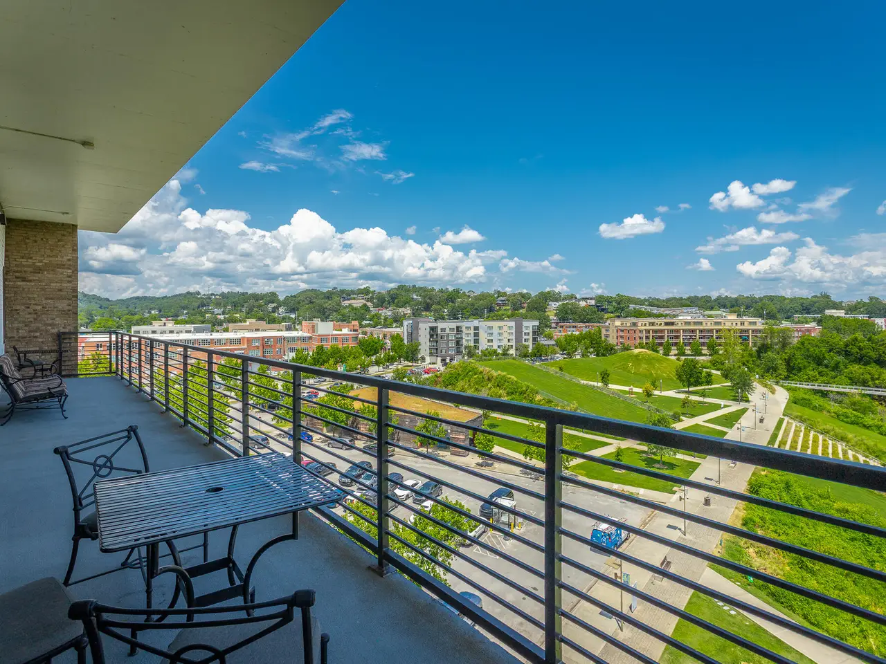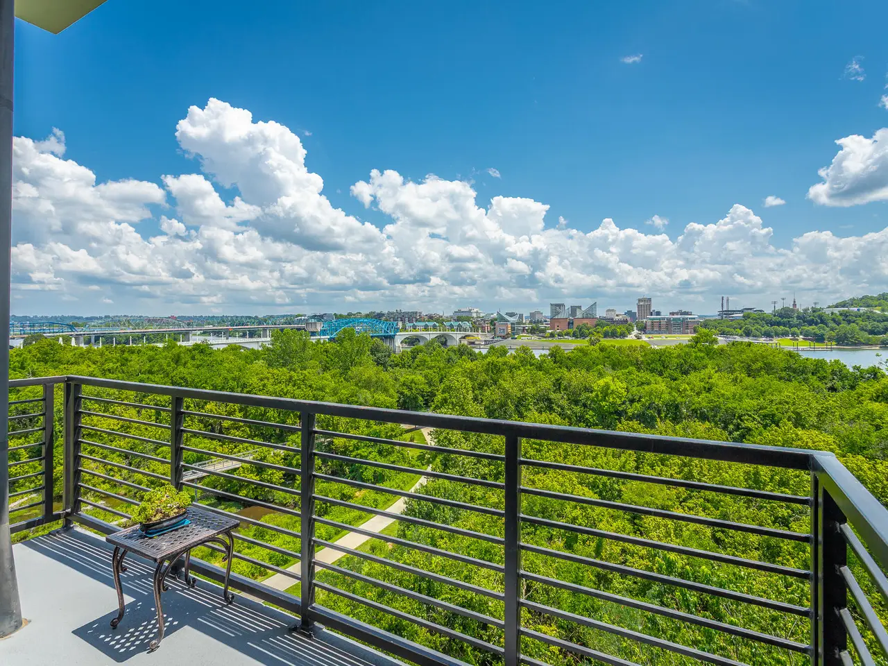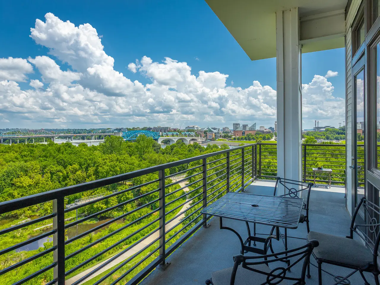 Enjoy sensational downtown and river views from this updated 2BR/2BA + bonus room condo at popular One North Shore. The unit has open floorplan and extra large covered balcony with electric sun shades for relaxing and taking in the amazing views. The balcony is easily accessed from both the main living area and the master bedroom. Owner has thoughtfully updated the home with custom cabinetry, quartz countertops, Bosch and Maytag stainless appliances, and a built in pantry in the kitchen, handsome porcelain floors throughout, and a totally new master bath with custom shower and vanity. The guest bath was also renovated, and the HVAC was replaced in 2023. The unit has 2 side by side assigned parking spaces in the main level of the gated garage. Additional 10X13 deeded storage space (located down the hall from the unit) is available for separate purchase. Ask listing agent for details. One North Shore amenities include on-site property management, very spacious Penthouse Clubroom boasting some of the best views in the city, resort style pool and cabana, outdoor fireplace gathering area, fitness room, and dog walking area. One North Shore is adjacent to Renaissance Park on Chattanooga's North Shore and affords great walkability and bikeability to Whole Foods, shopping, restaurants, entertainment venues, and all riverfront activities. This turn-key unit won't last long!!