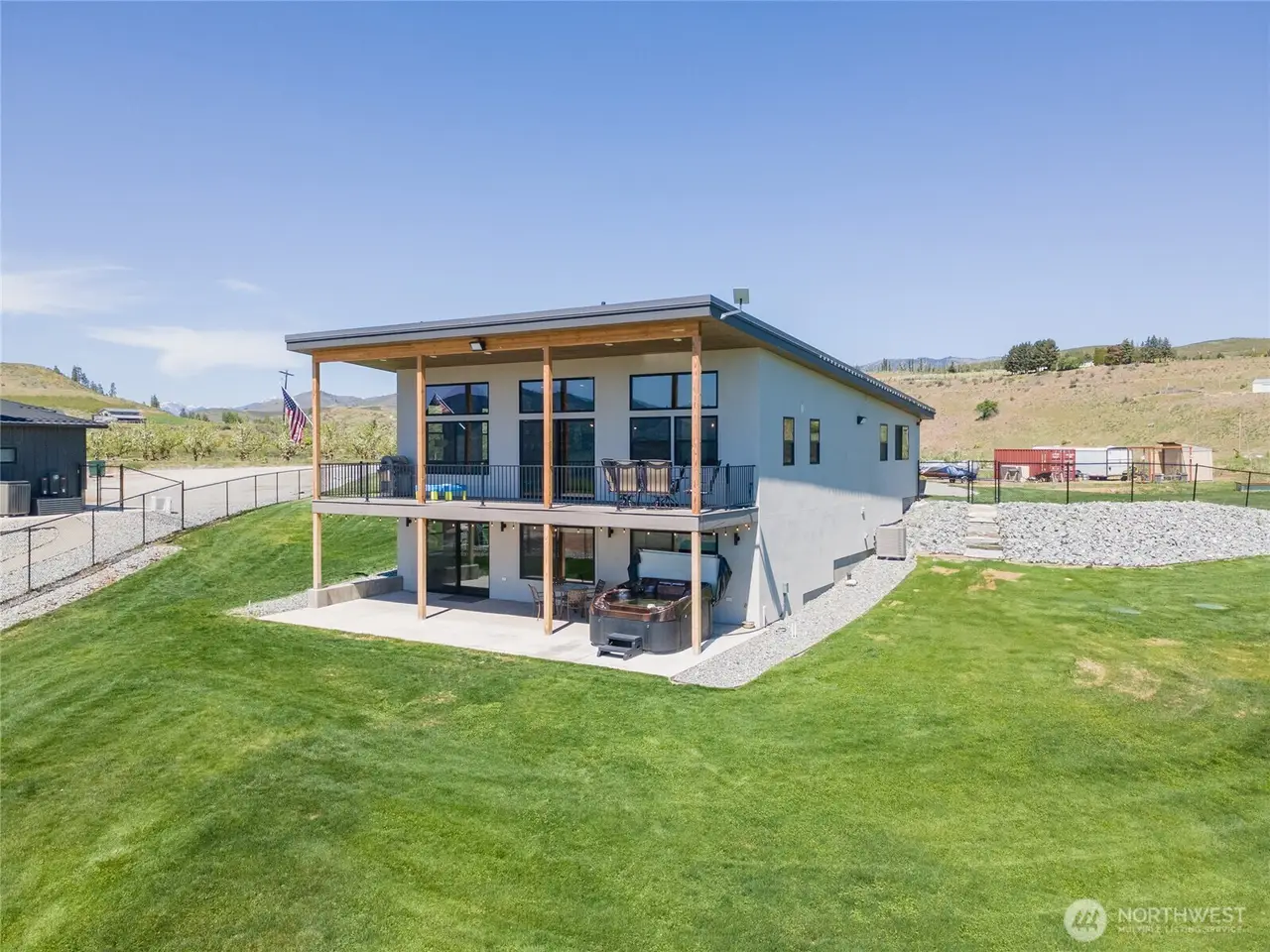 INCREDIBLE MOUNTAIN, TERRITORIAL AND LAKE VIEWS! This beautifully crafted home has luxury throughout, features 5 bedrooms and 3 full bathrooms on a large piece of property. Custom cabinetry with high-end appliances in the kitchen and beautiful white oak engineered hardwood upstairs with finished concrete downstairs. Built in closet systems in all the closets and pantry. No CCRs and No HOA. Property has sprinkler system with a large, grassed area and fenced back yard. Home is prewired with a 400-amp service and panel for pool equipment. Hot tub and chicken coop stays. A short drive to Echo Ridge Valley recreational area and conveniently located between Chelan and Manson. 1% buyer credit through Generations Home Loans!