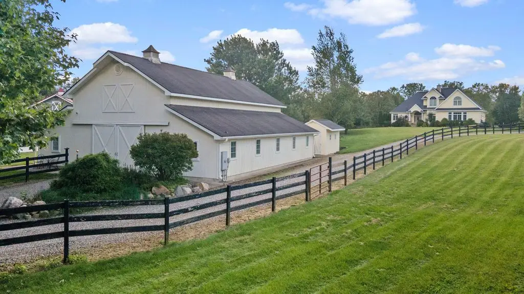 Beautiful country home on 55 acres for sale near historic Chelsea, MI. Custom built in 2007, this stunning house is situated atop a hill overlooking a 1/4 acre spring fed pond and hundreds of acres of high quality nature preserves. Scenic views throughout the home advertise the true beauty of this incredible property. With peaceful areas of woodland, pastures, marsh, fen and field, this is a nature lover's paradise! Step inside this small country estate and you will be enamored by the craftsmanship and attention to detail. Complete with 4 bedrooms and 3 full baths, this home boasts nearly 3,400sq/ft of finished living space. Walking through the front entry, there is a tiled foyer with storage closet, as well as a small family room/den with gas fireplace. The spacious primary level master suite offers comfort and convenience, with 2 walk in closets and a master bath complete with bubble tub and walk-in shower. The living room has cathedral ceilings, large bay windows, a marble-tiled wood burning fireplace, and an open floor plan that flows seamlessly into the kitchen and dining area. The charming kitchen has granite counter tops, cherry stained wood cabinets, stainless steel appliances and double French doors leading out to the 1,200sqft composite deck. Just around the corner is an elegant "butler style" room with utility sink, laundry closet, and full bathroom. This leads out to the 2-1/2 car garage that is fully insulated and heated/cooled. The cherry wood staircase takes you up to the second floor complete with the remaining 3 bedrooms and full bath. The walkout basement with french doors offers another whole living area. This finished space has 9' ceilings, a large family room, library, office space, and 2 storage closets. The utility room houses a 3 zone furnace, large hot water heater, full house vacuum, and is plumbed for additional bathroom. The property also comes with a large tobacco style pole barn that features a workshop, horse stalls, and a partially finished studio apartment with full kitchenette, bathroom, stacked laundry and pantry. Additionally, there is a garden shed and chicken coop with fenced in run. Conveniently located just 4 miles from downtown Chelsea, 16 miles from Ann Arbor, and just minutes away from the Waterloo Recreational area, this unique property offers the perfect blend of country living and accessibility. Exceptional location and incomparable views truly make this home one of a kind. Property sale includes 2 parcels. F-06-28-100-027 & F-06-28-100-028. 50 acre parcel is under conservation easement with the Washtenaw County Parks and Recreation Department.
